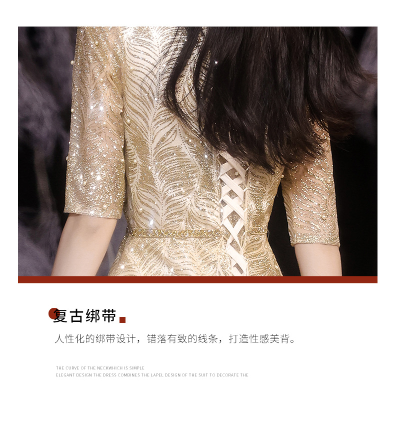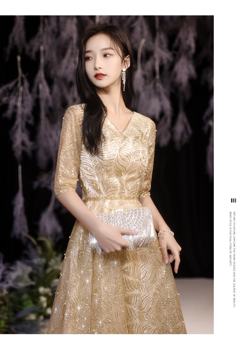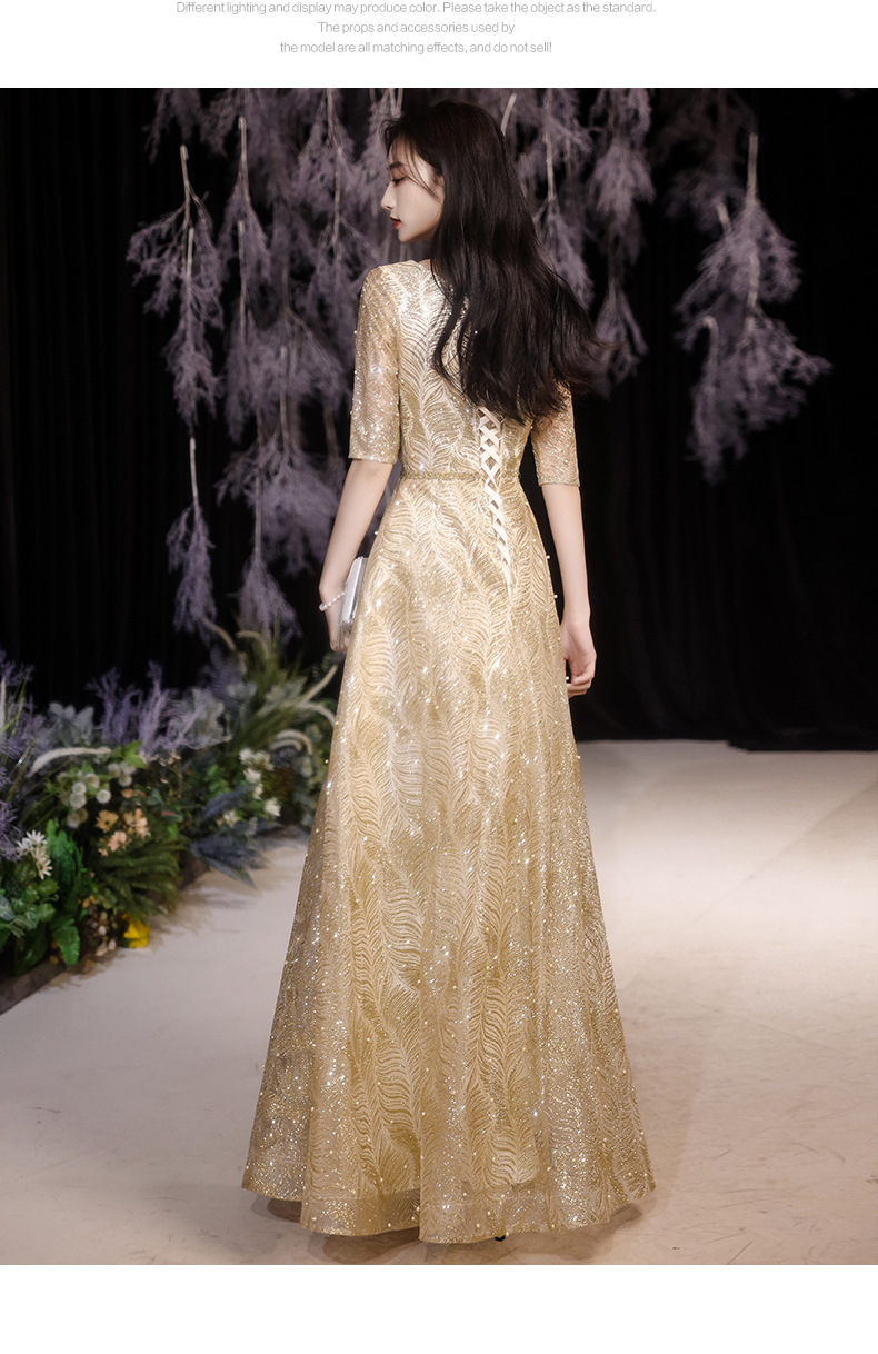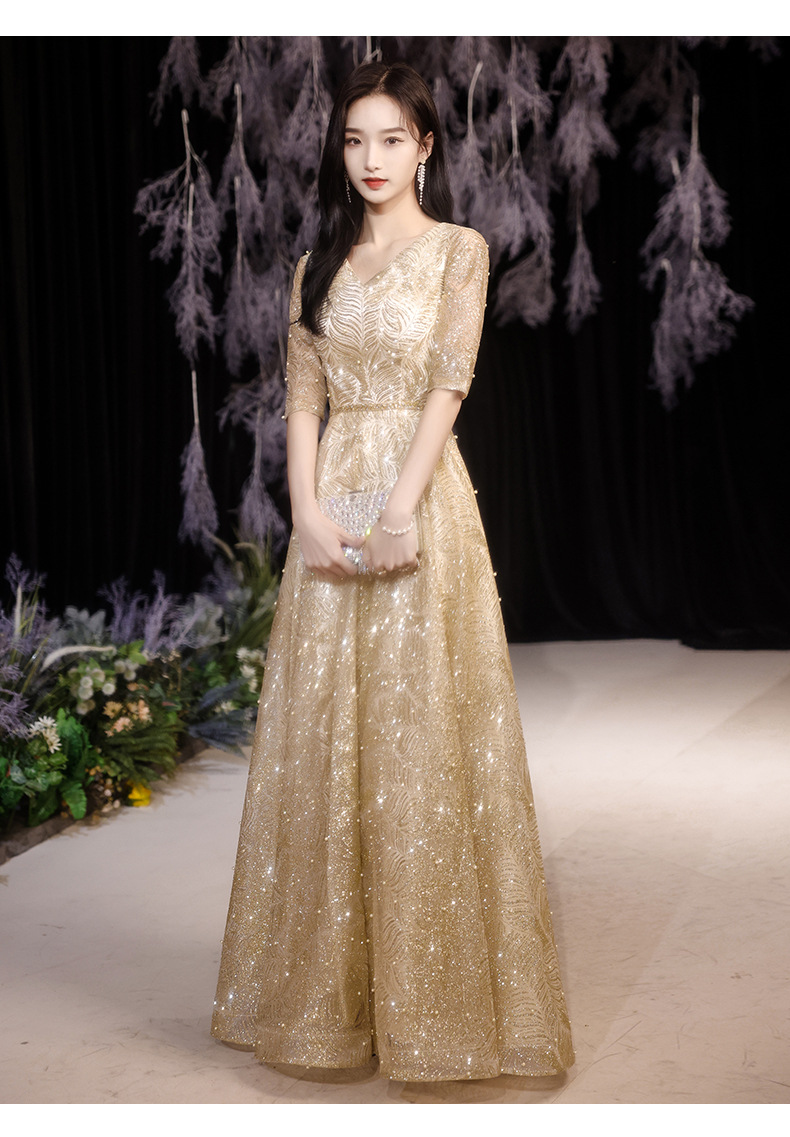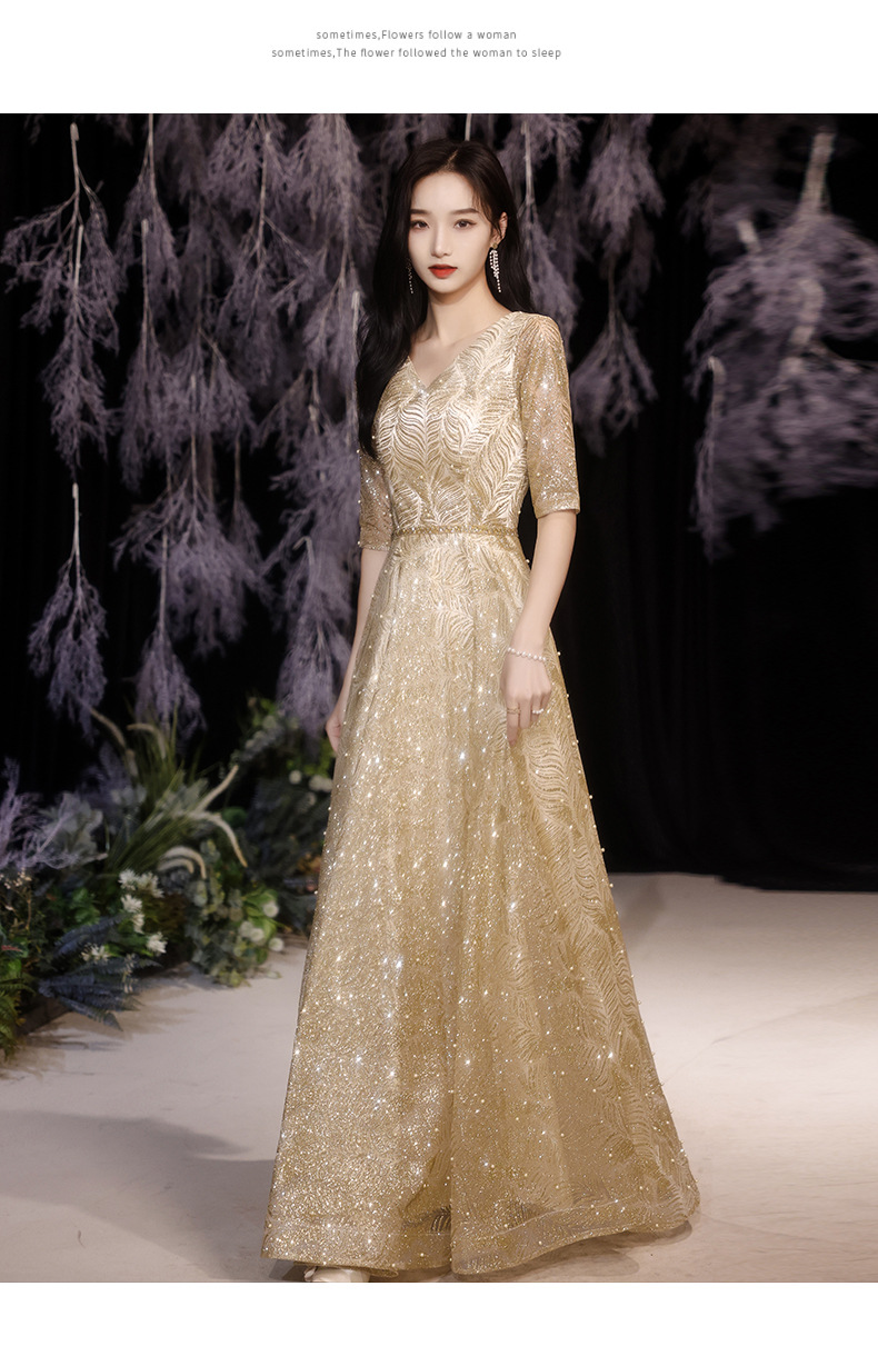 金色演出礼服连衣裙女宴会星空年会主持人大合唱团表演出晚礼服裙