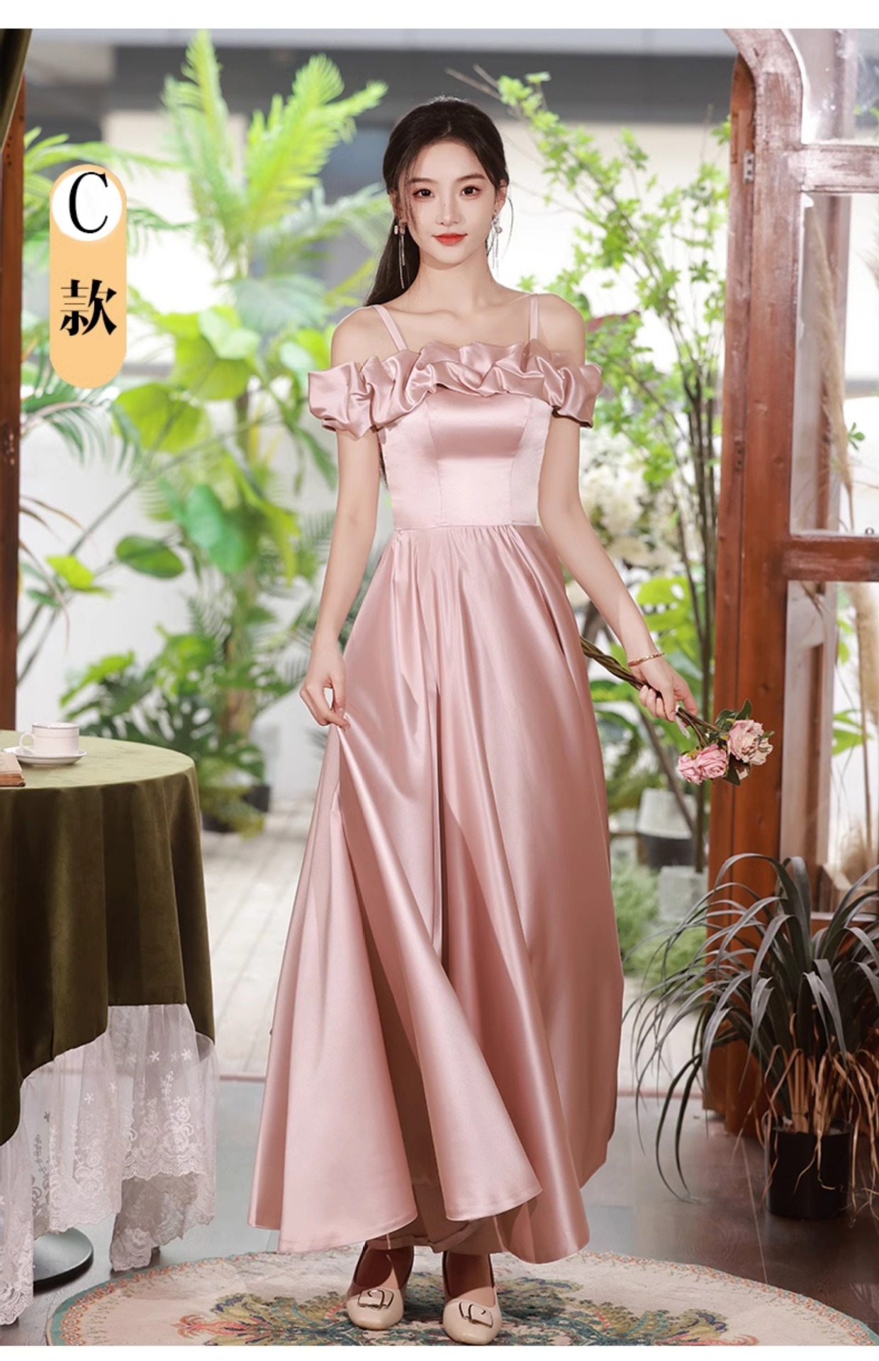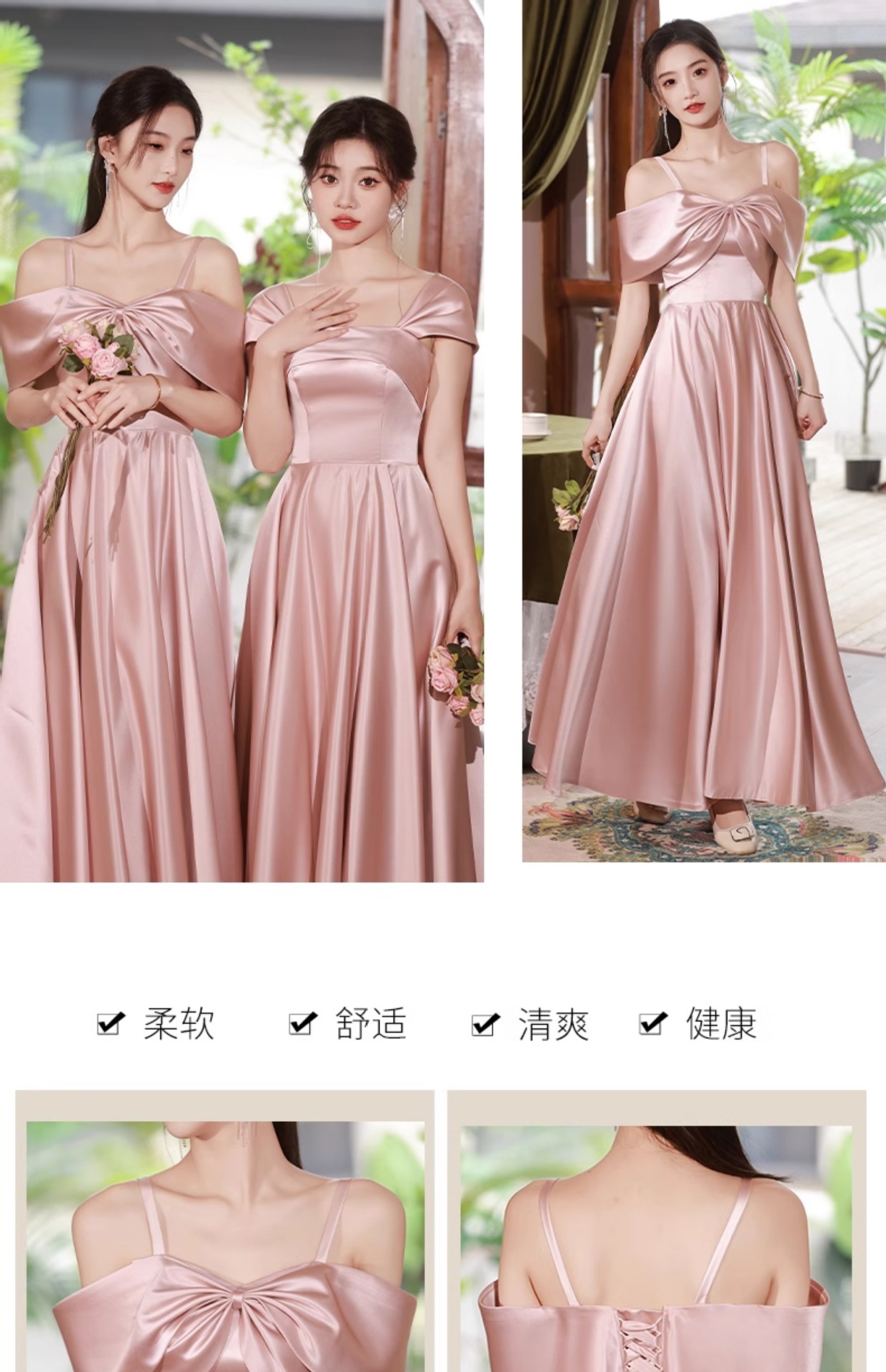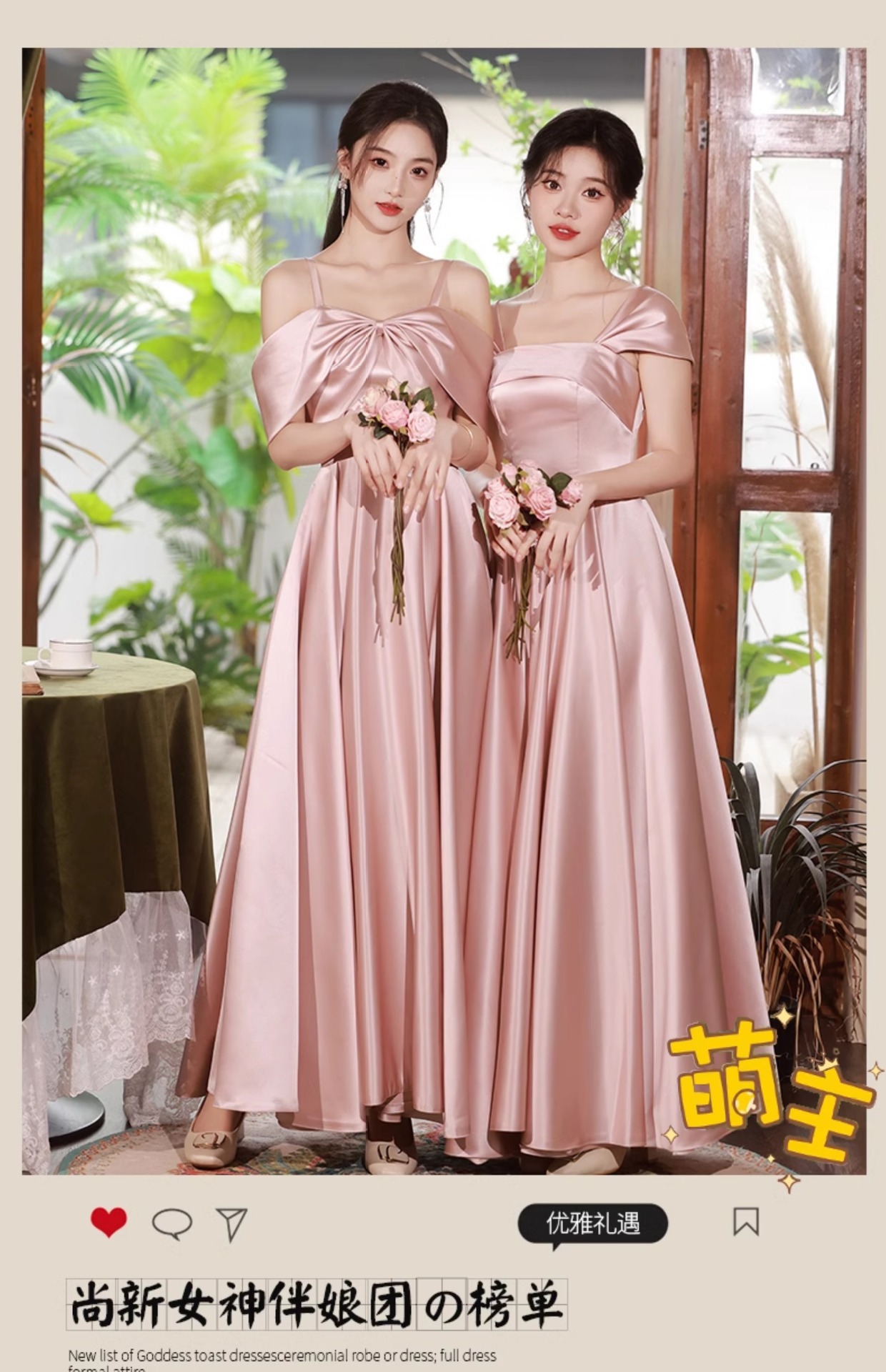 Gaun pengiring pengantin merah muda 2025 satin pernikahan musim semi baru dapat dikenakan di waktu biasa gaun malam kelompok saudara perempuan gaun panjang