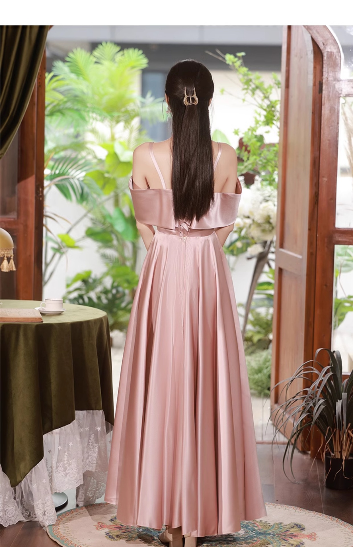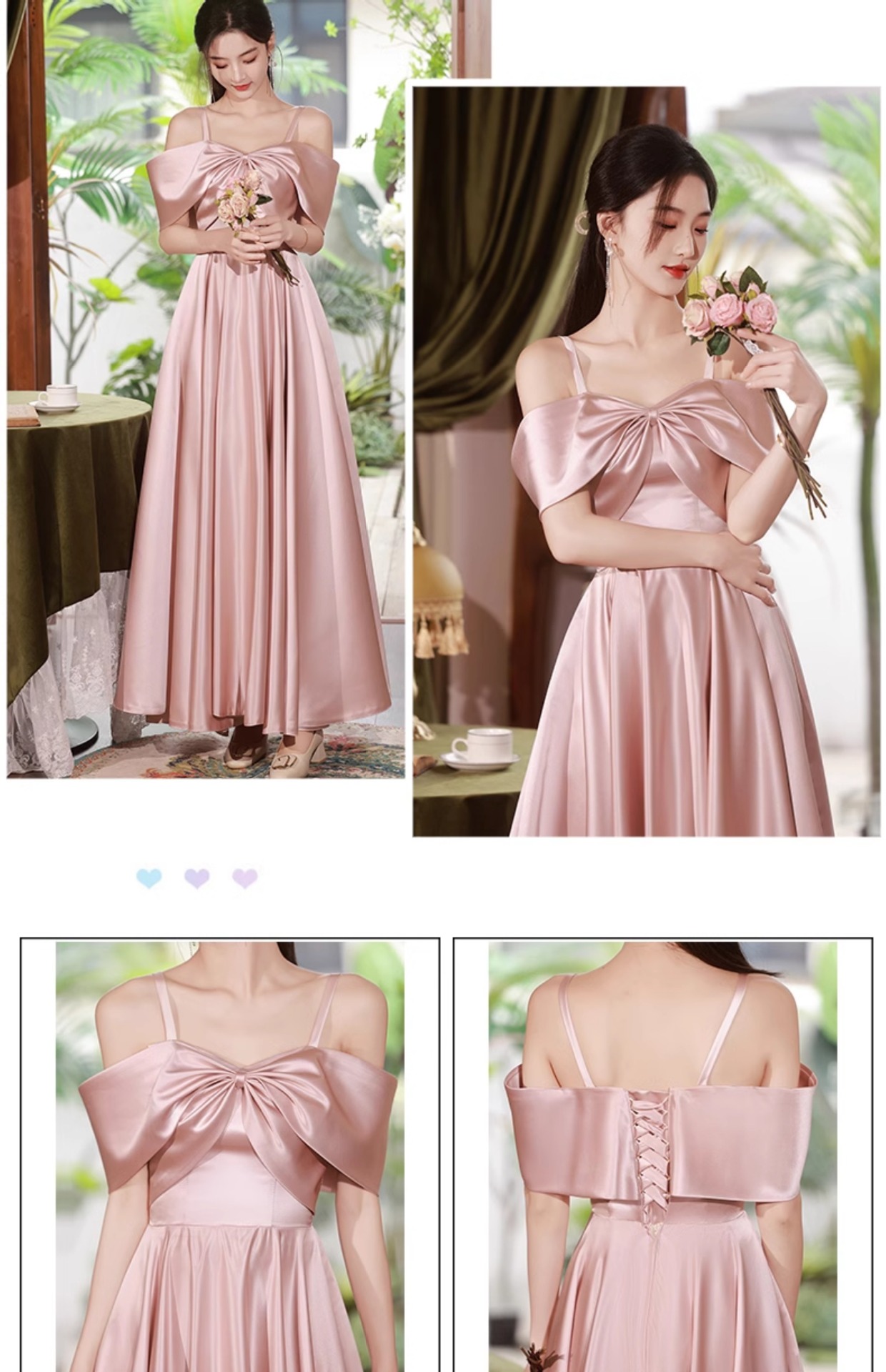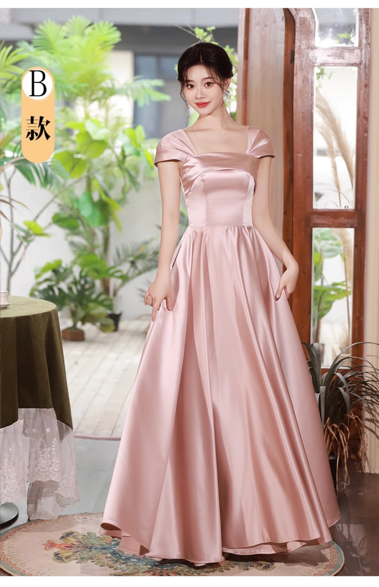 Gaun pengiring pengantin merah muda 2025 satin pernikahan musim semi baru dapat dikenakan di waktu biasa gaun malam kelompok saudara perempuan gaun panjang