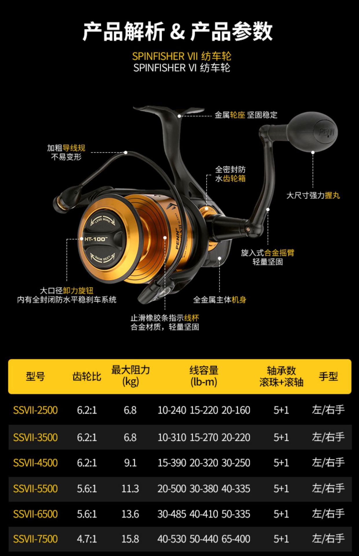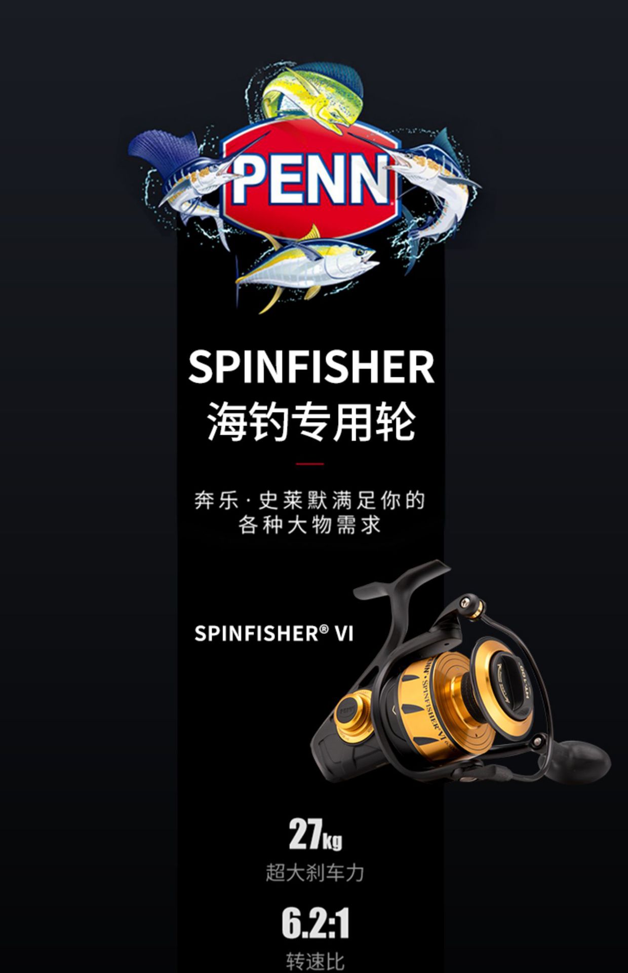 PENN奔乐SSVII10500金属海钓纺车轮海钓大物耐腐蚀船钓轮远投渔