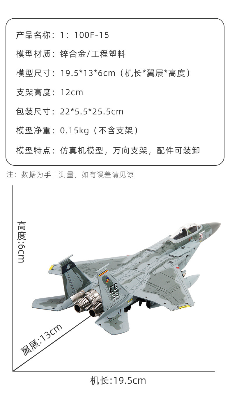 1:100美式F14 F15战斗机仿真合金飞机静态航空模型摆件收藏礼品