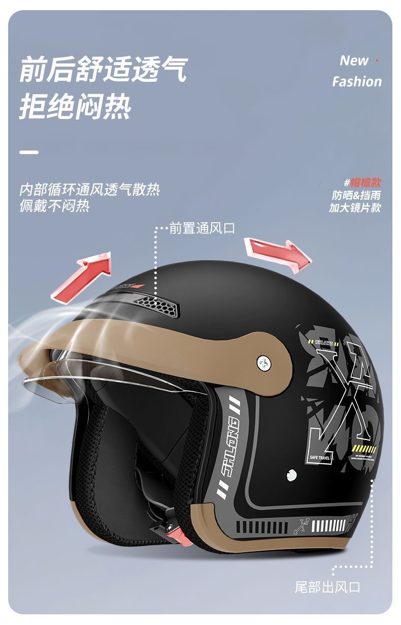 3C认证电动电瓶车头盔男女士夏季防晒透气安全帽骑行盔四季半盔
