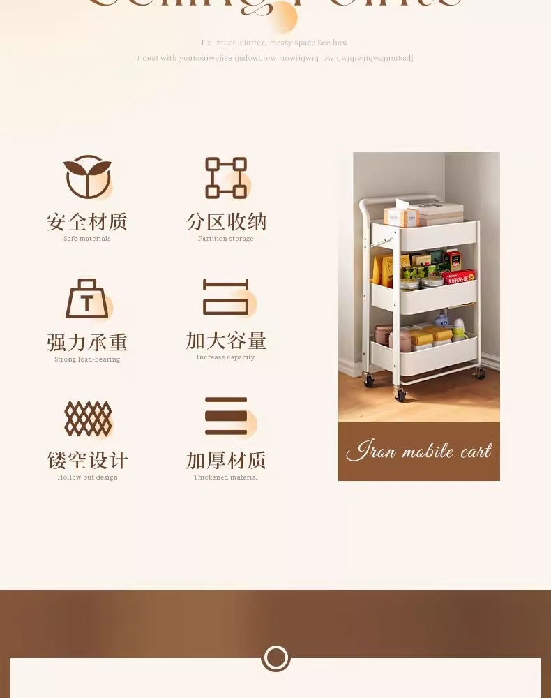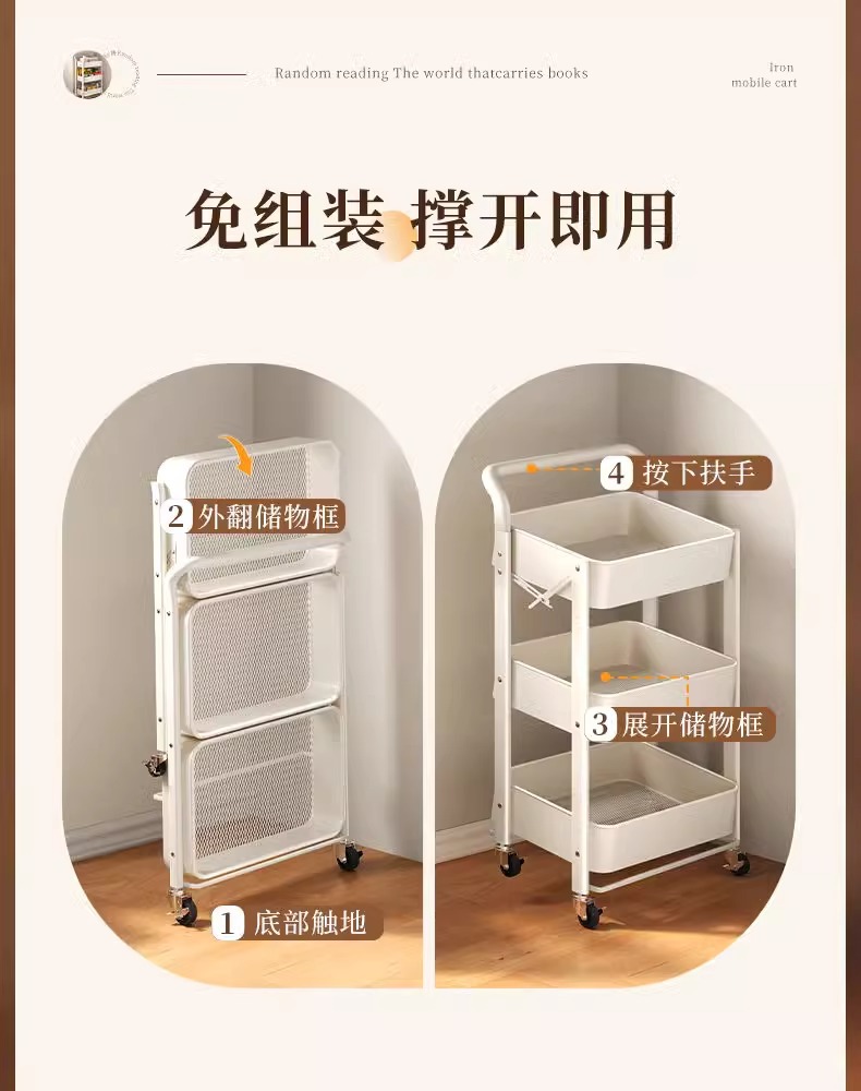 厨房浴室落地多层卧室书本移动婴儿玩具零食储收纳架小推车置物架