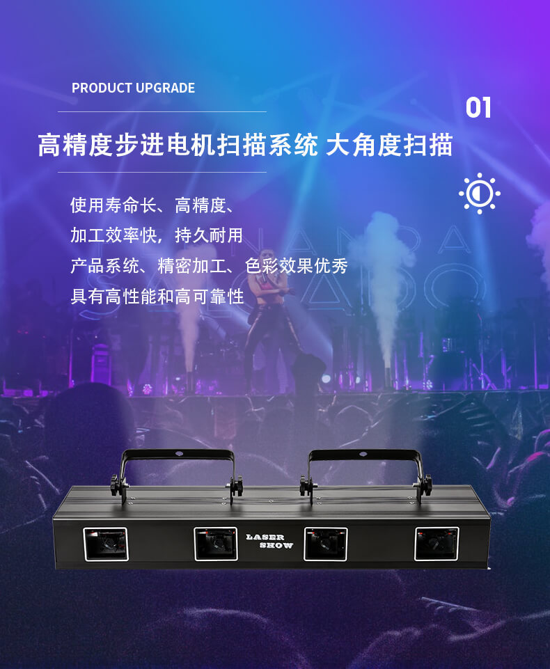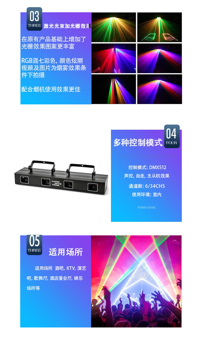 Lampu laser panggung empat mata empat warna grosir untuk KTV bar disko DJ, lampu kilat kontrol suara, lampu sorot LED warna-warni penuh