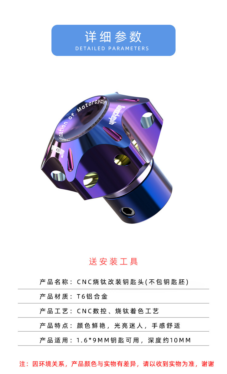 摩托车电动车改装配件彩钛钥匙头盖踏板车钥匙盖个性钥匙扣装饰