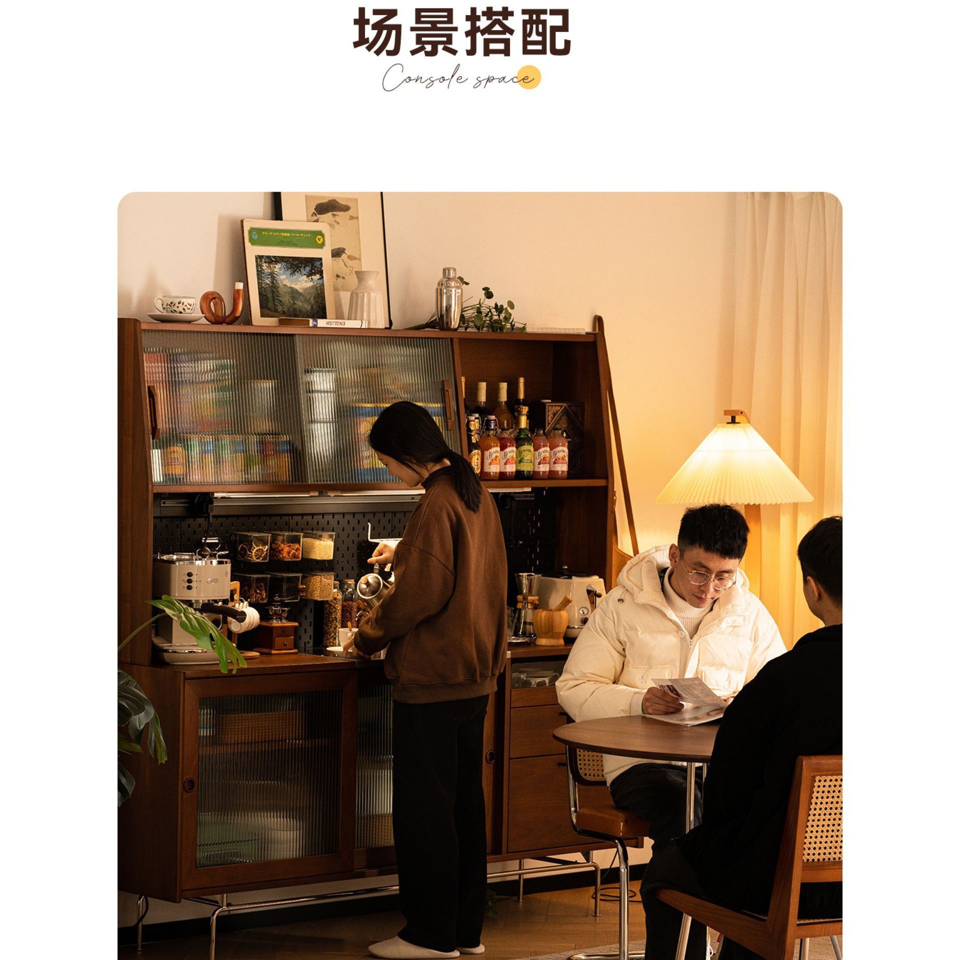 Lemari Teh Abad Pertengahan Lemari Tinggi Dinding Terintegrasi Lemari Dapur Bufet Retro Kayu Solid Lemari Anggur Rumah Skandinavia