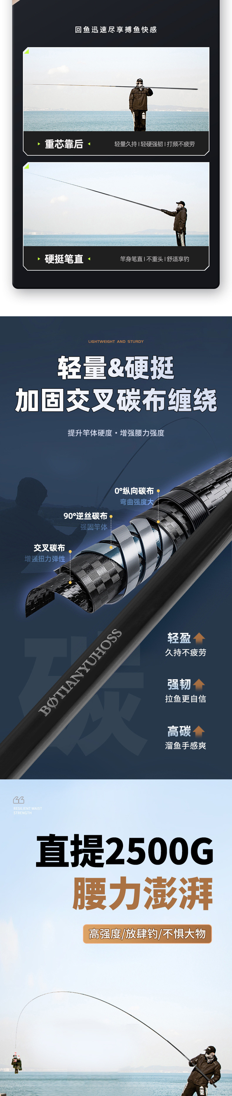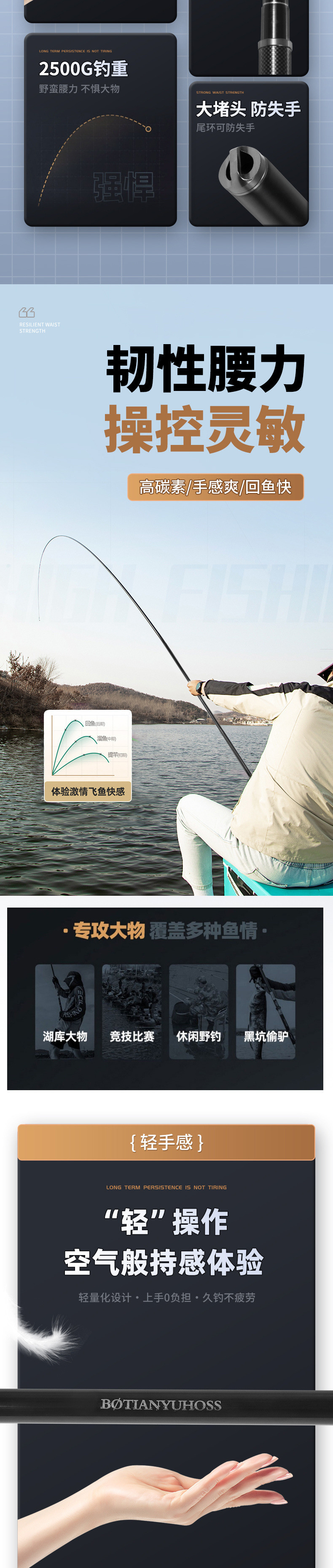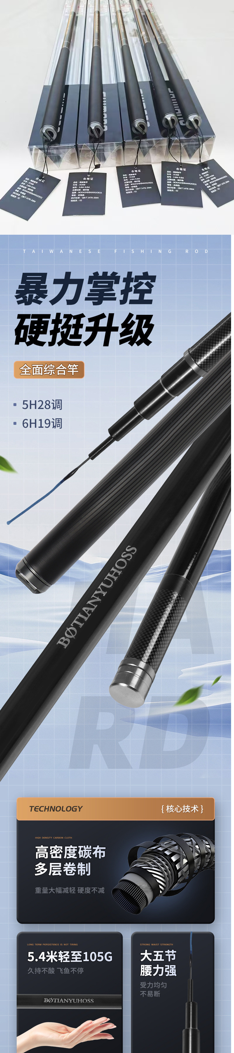 Joran pancing gaya Taiwan baru, ultra-ringan dan ultra-keras dengan 19 bagian, joran ikan besar, joran tempur, joran pancing profesional serbaguna untuk memancing di alam liar.