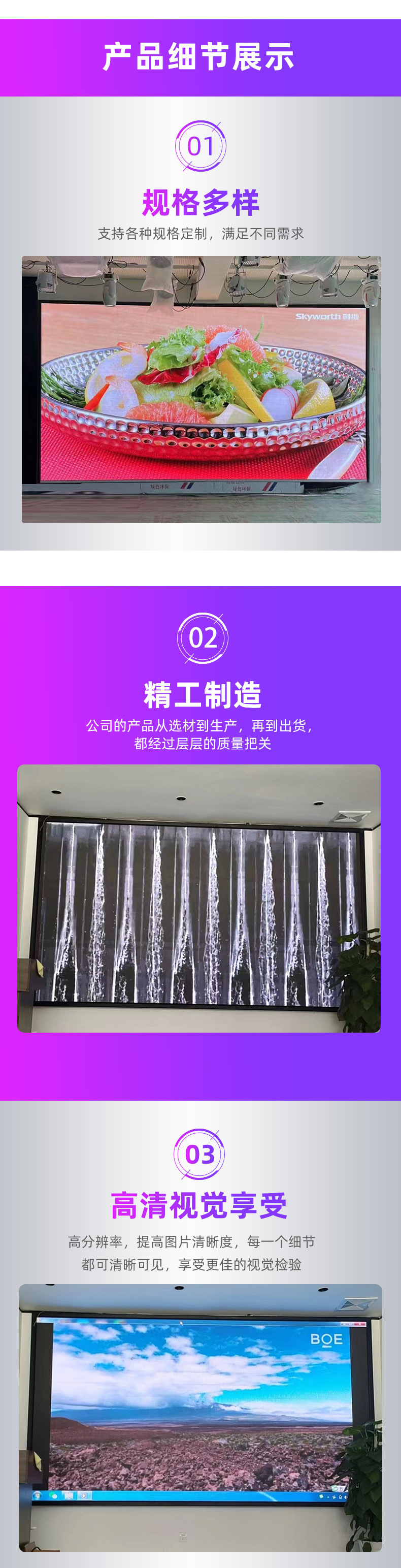 Layar tampilan LED dalam ruangan berwarna penuh untuk ruang konferensi, ruang siaran langsung, dan iklan, monitor layar besar P2.5, definisi tinggi.