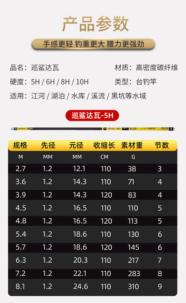 Produsen menjual patrol shark Dawa 5h joran pancing komprehensif yang dapat disesuaikan joran pancing ikan mas 3kg peralatan pancing karbon joran pancing