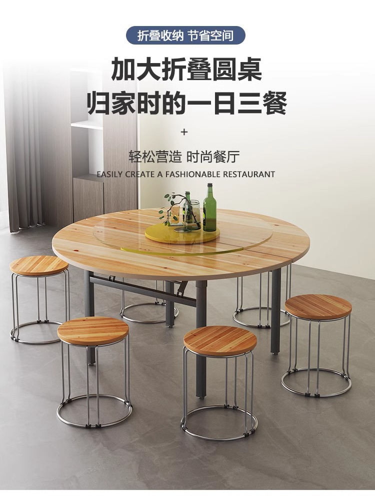Meja Bundar lipat kayu polos, rumah 10 orang, papan kayu bulat besar tunggal dengan meja putar 15 orang hotel desktop bulat
