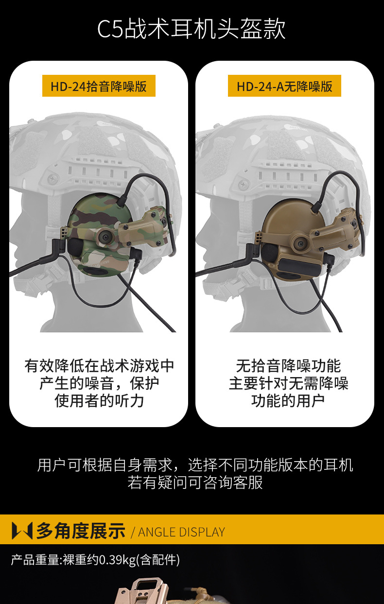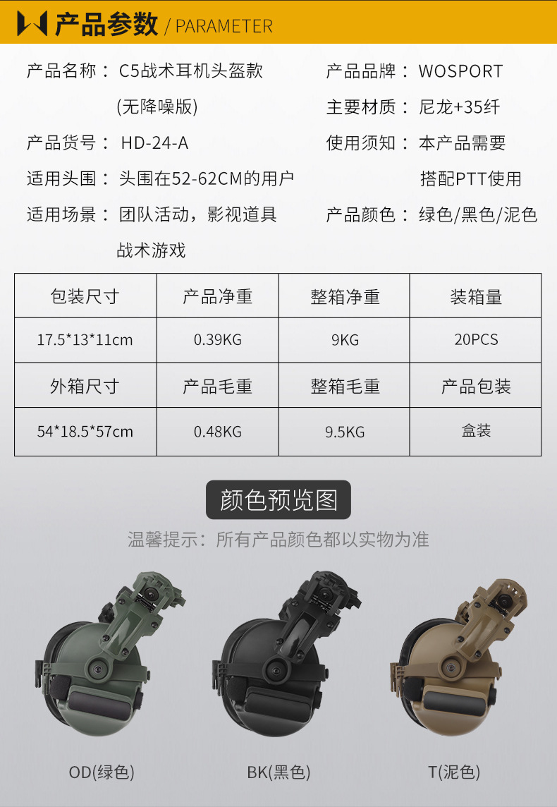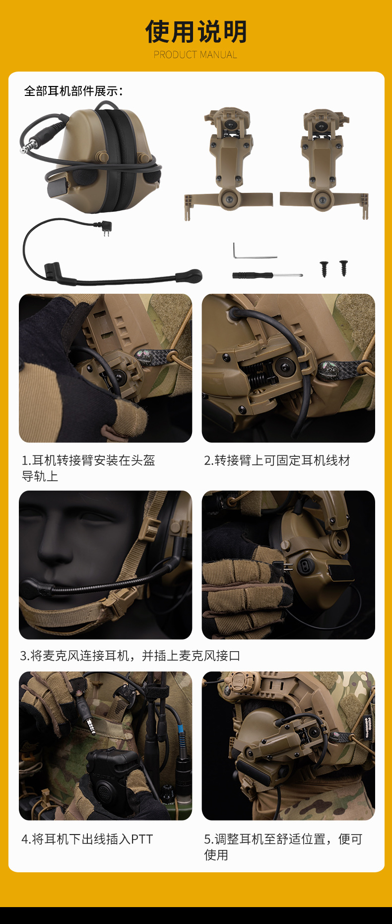 WOSPORT C5 Earphone Taktis Model Helm (Tanpa Noise Reduction) Perangkat Komunikasi Earphone Luar Ruangan Silikon Earphone