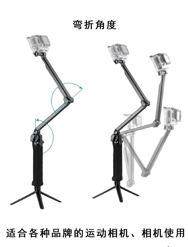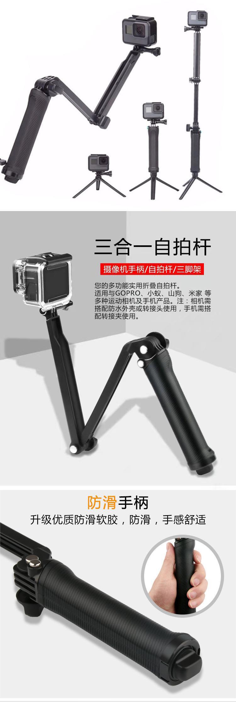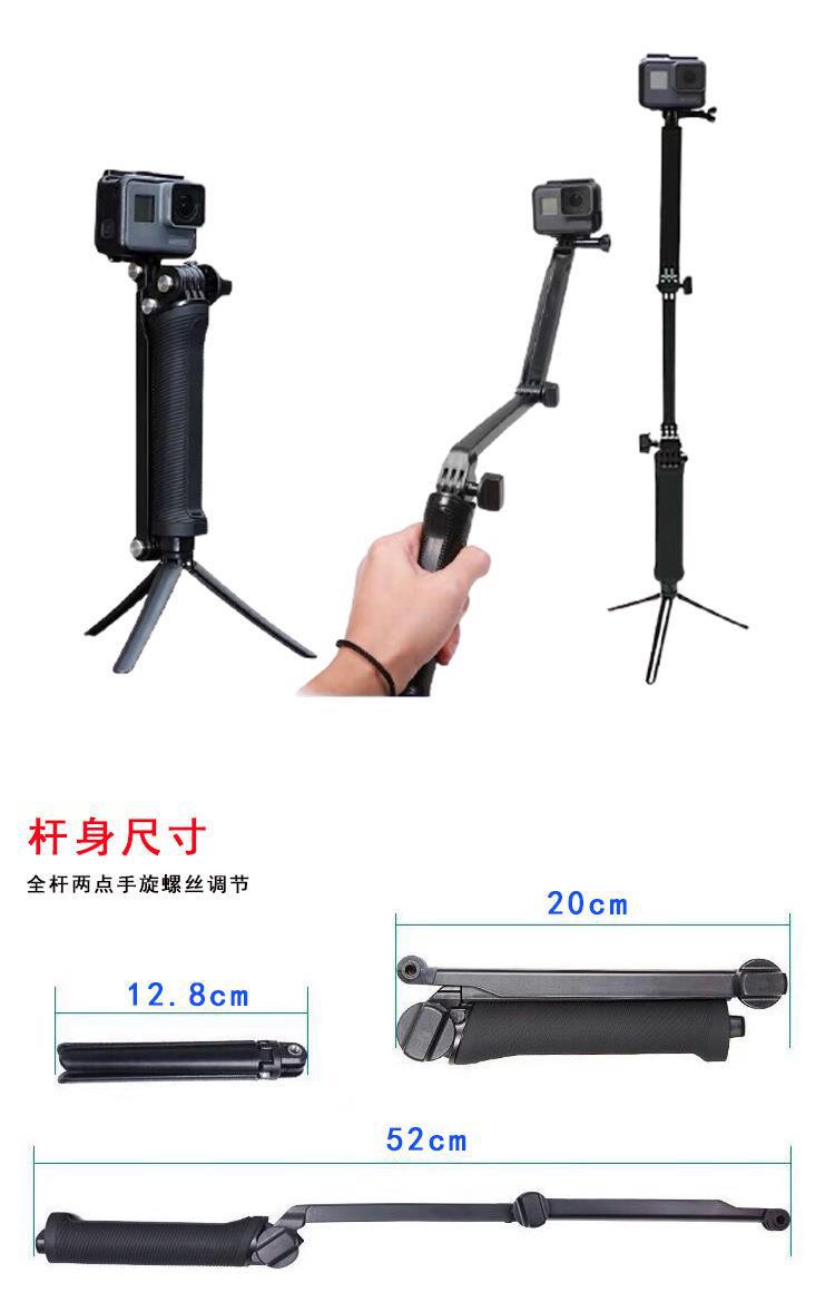 三折自拍杆 运动相机自拍神器 三节延伸杆配三脚架底座