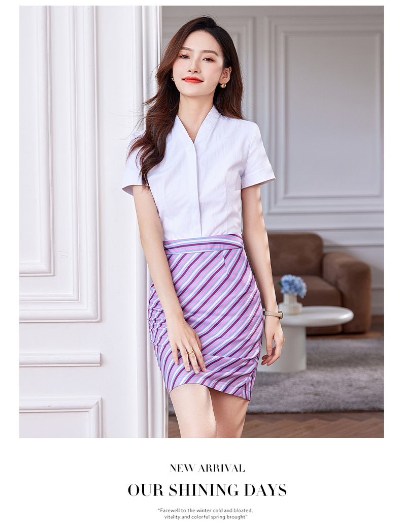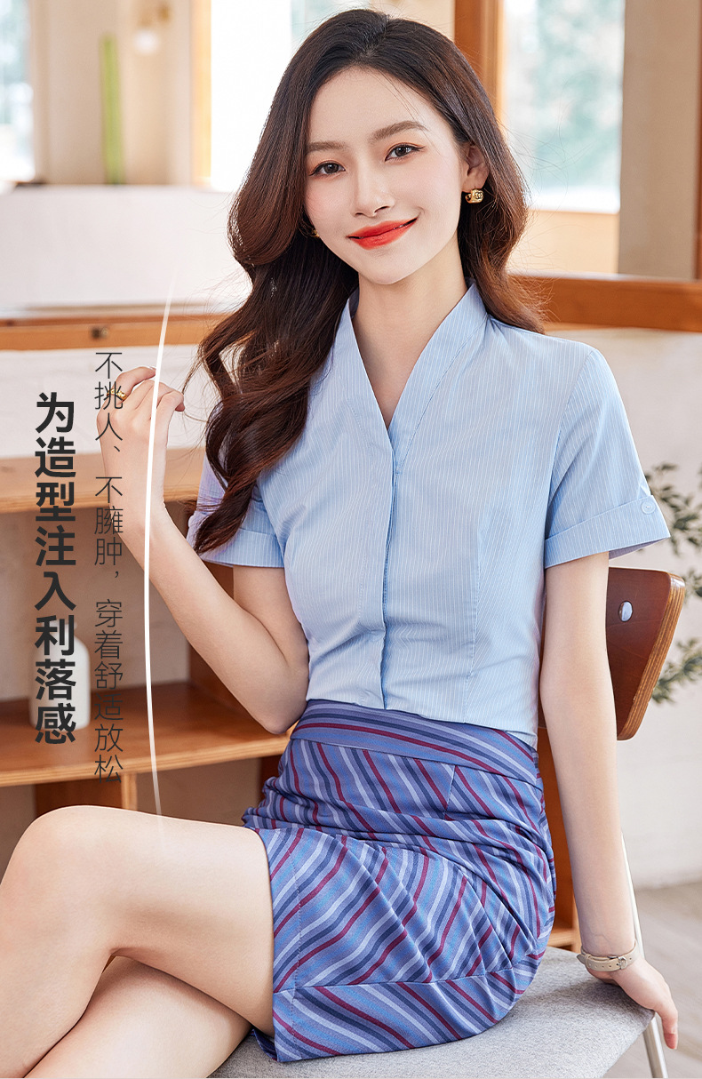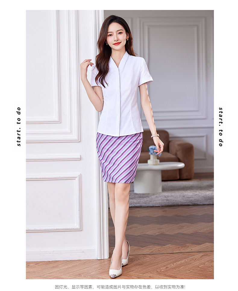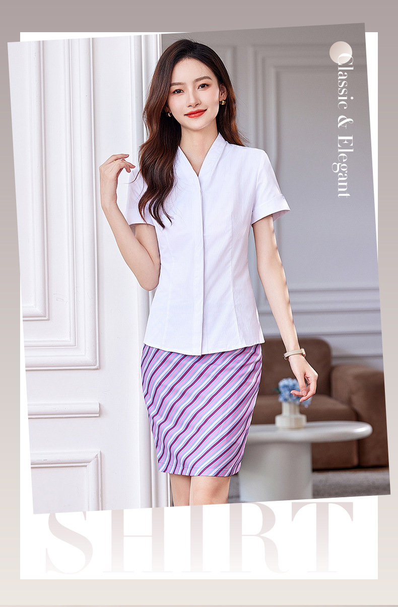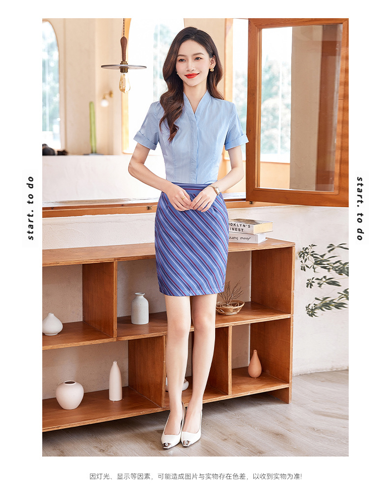 Setelan profesional kemeja bergaris putih kemeja lengan pendek musim panas wanita seragam pramugari salon kecantikan pakaian kerja meja depan inci pakaian