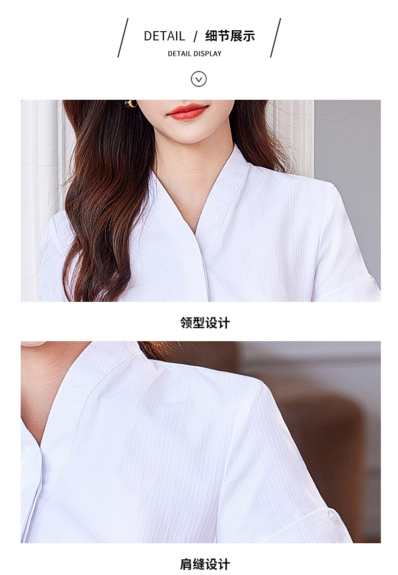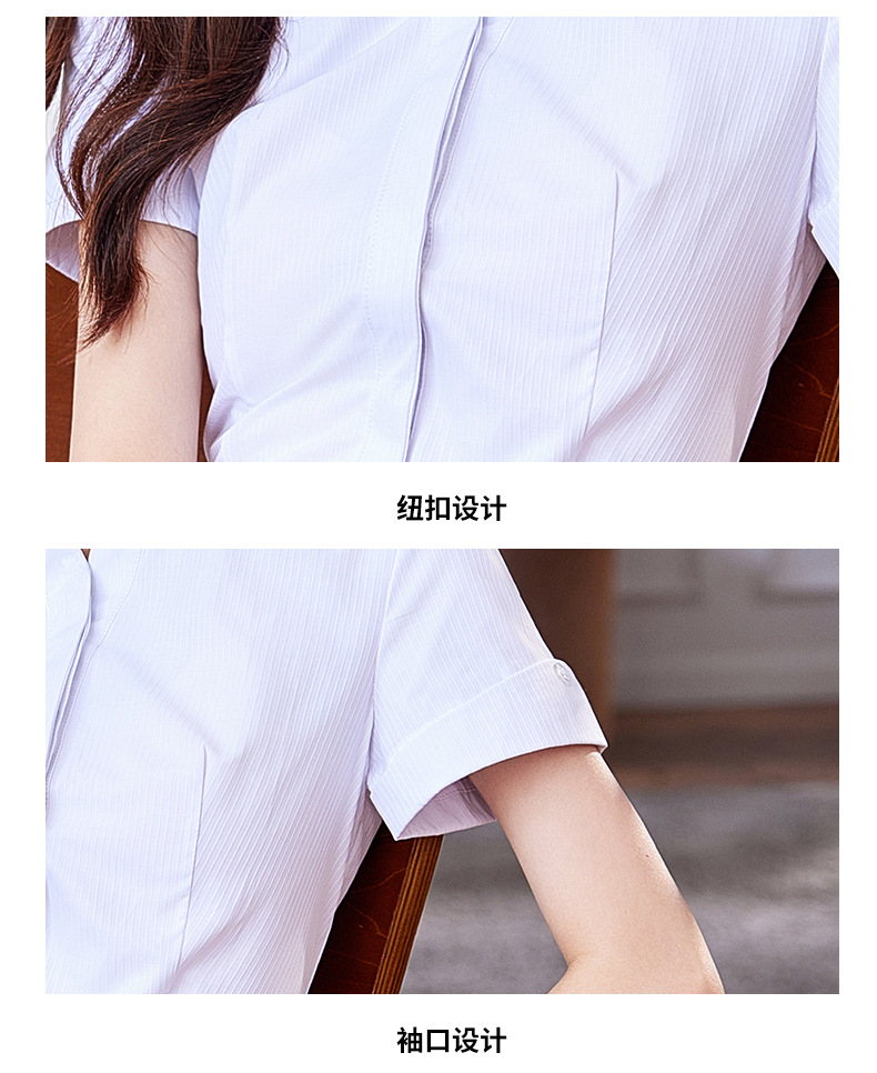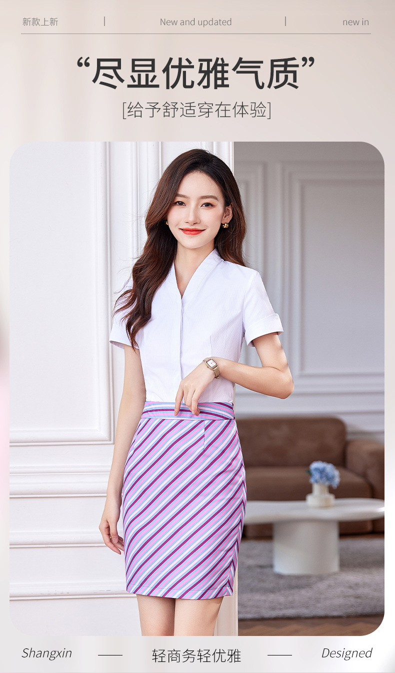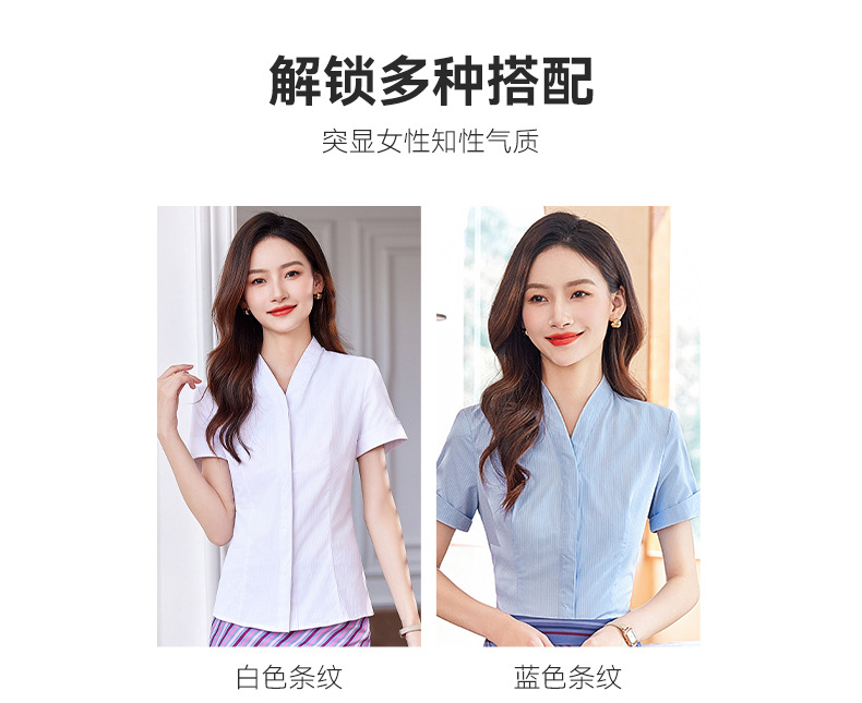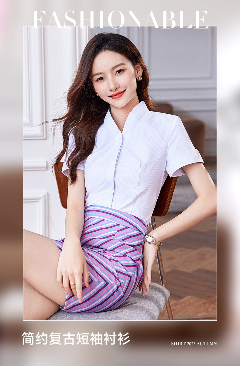 Setelan profesional kemeja bergaris putih kemeja lengan pendek musim panas wanita seragam pramugari salon kecantikan pakaian kerja meja depan inci pakaian