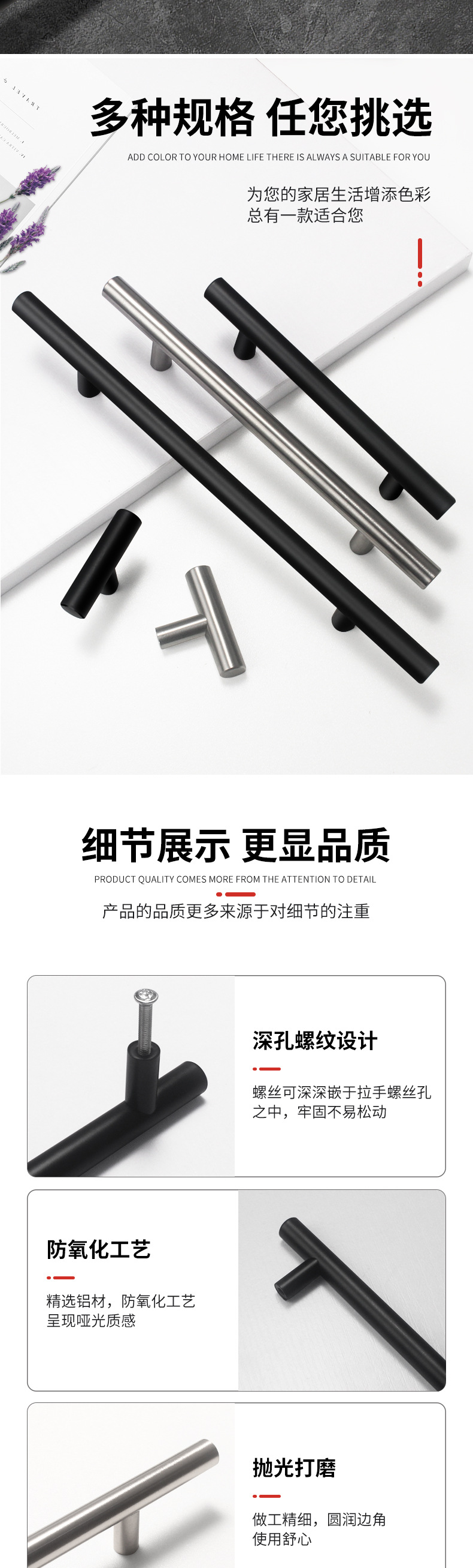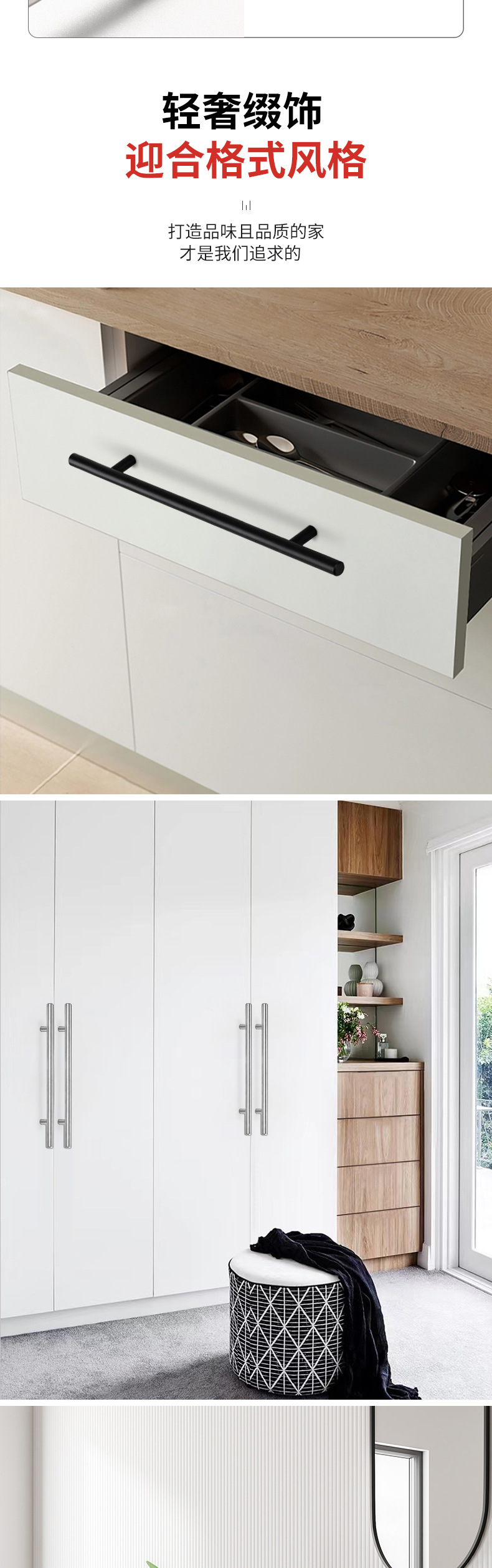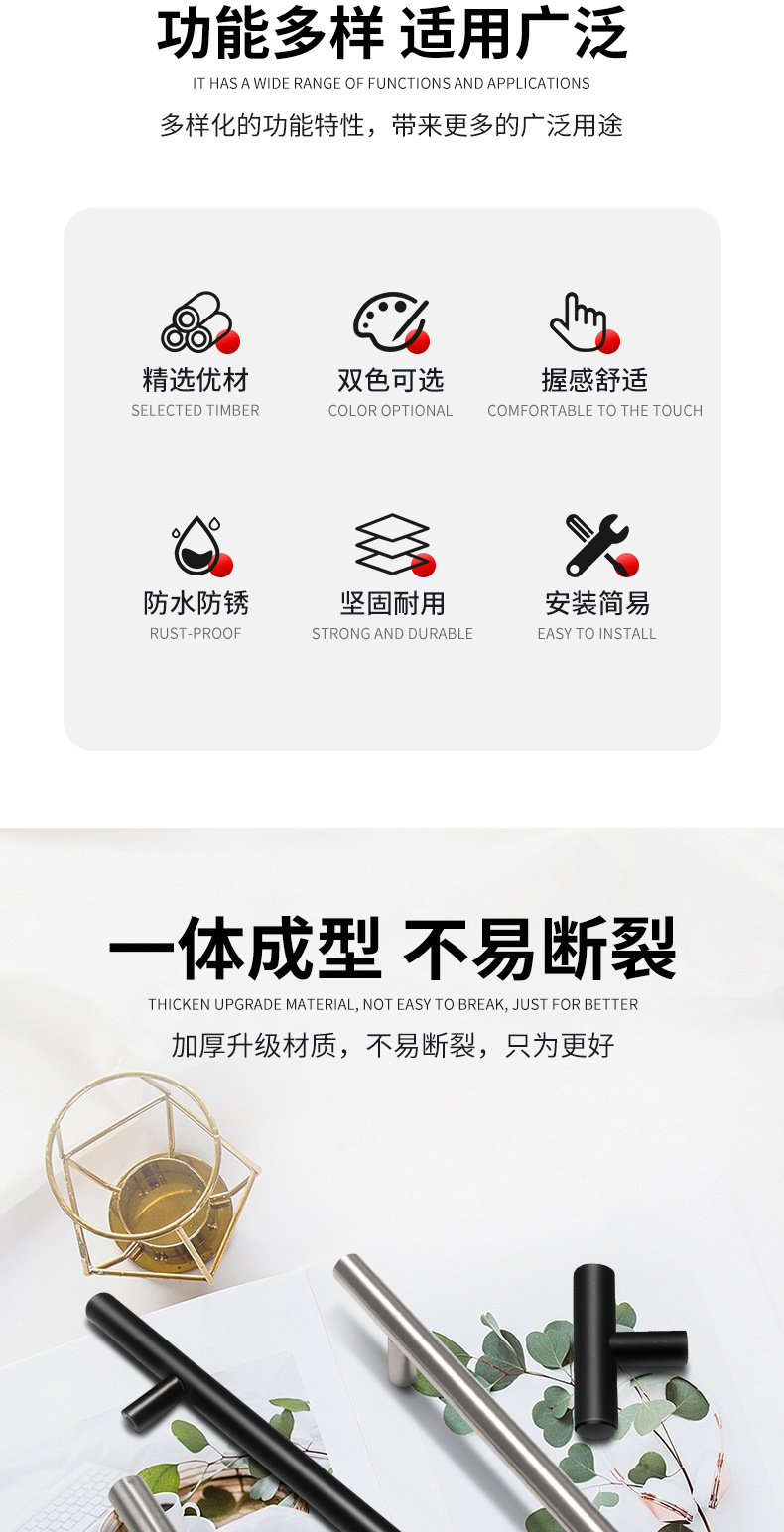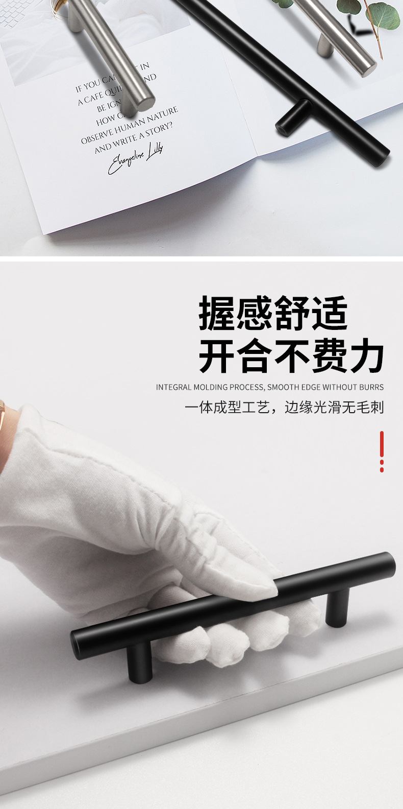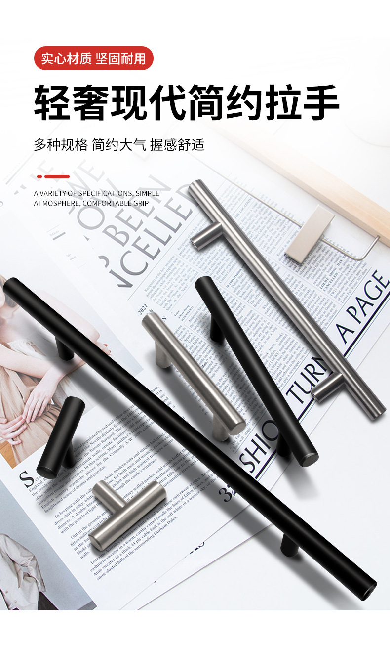Gagang pintu lemari Prancis mewah lintas batas, gagang mewah, gagang kecil baja tahan karat, gagang lemari pakaian, baja tahan karat berbentuk T.