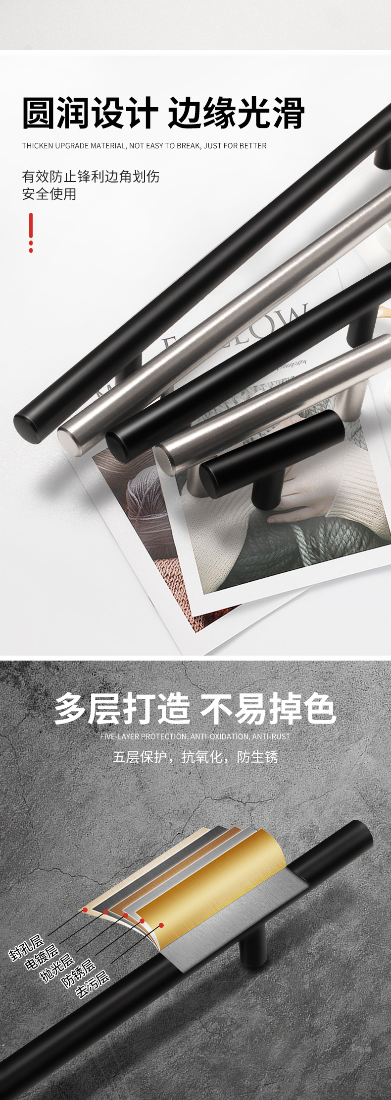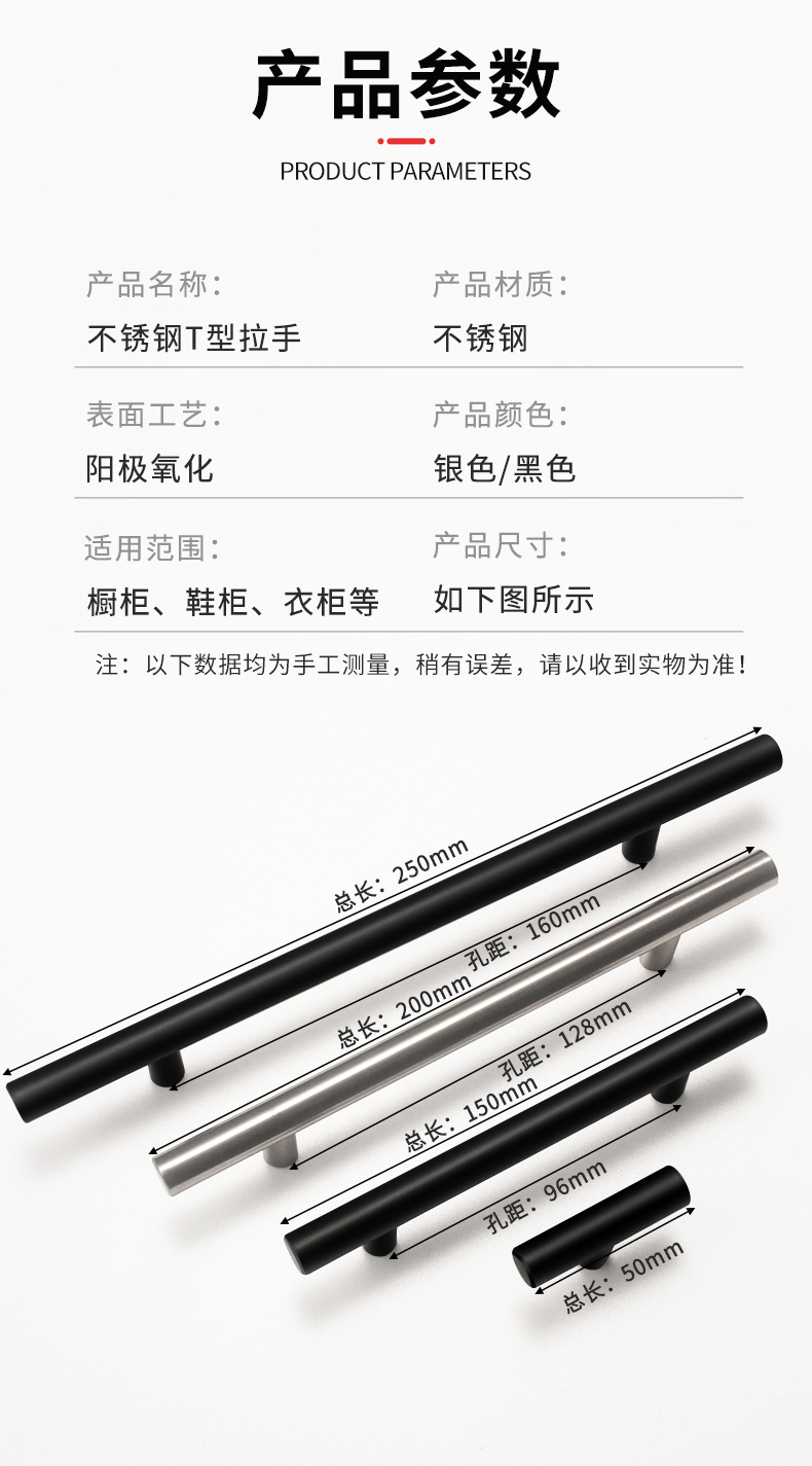 跨境北欧简约柜门门把手不锈钢小拉手橱柜衣柜把手抽屉不锈钢拉手