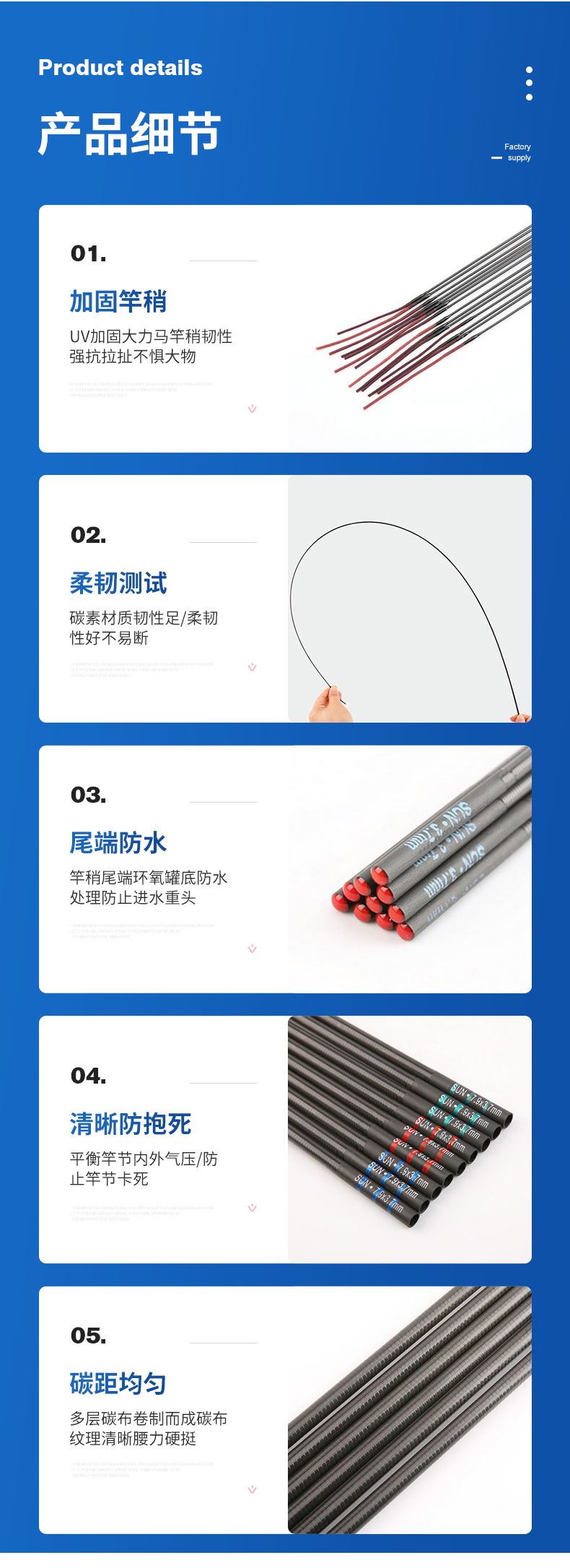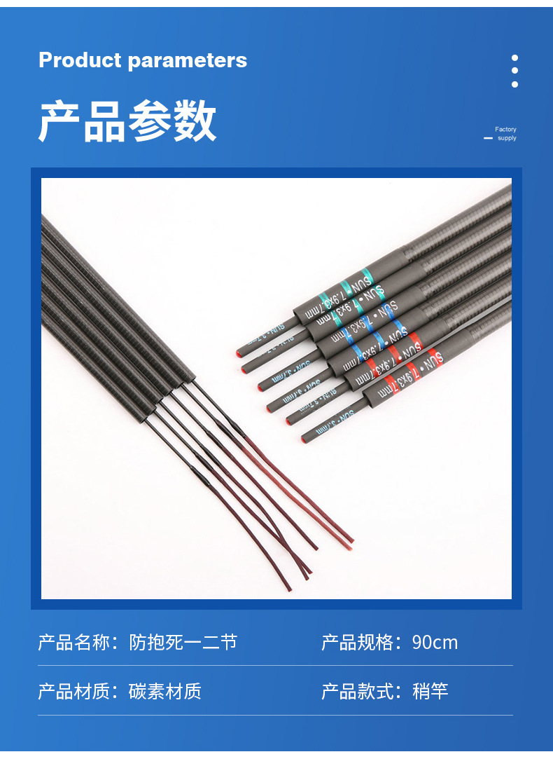 Joran pancing 90cm dengan dua bagian, dilapisi cat metalik tujuh warna anti-selip yang diperkuat.