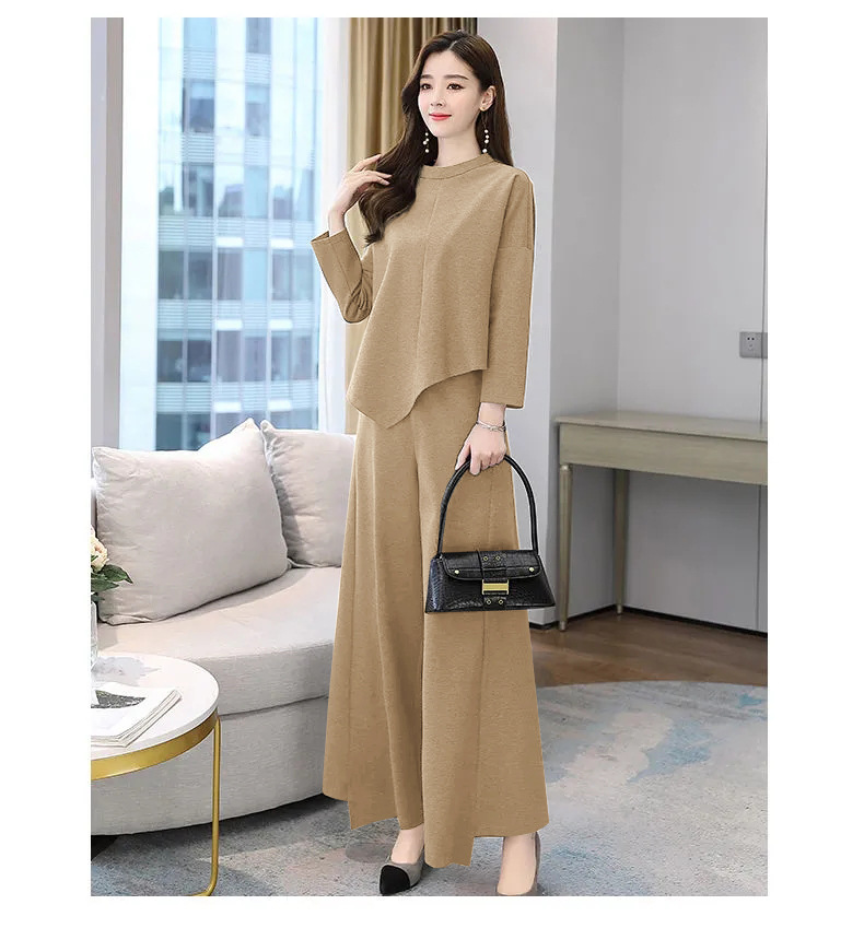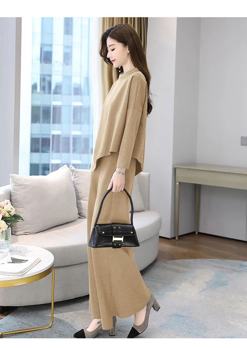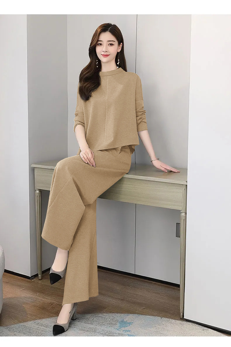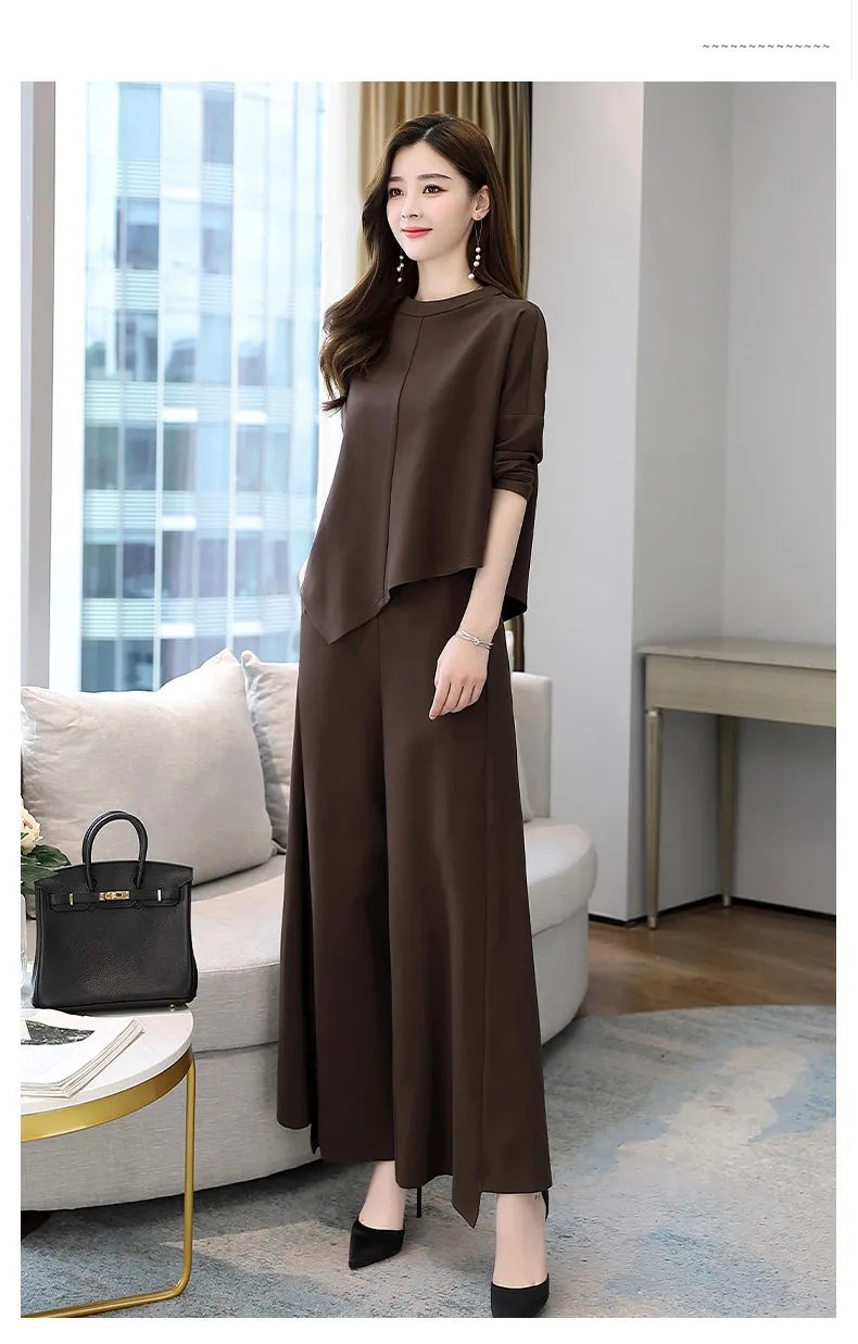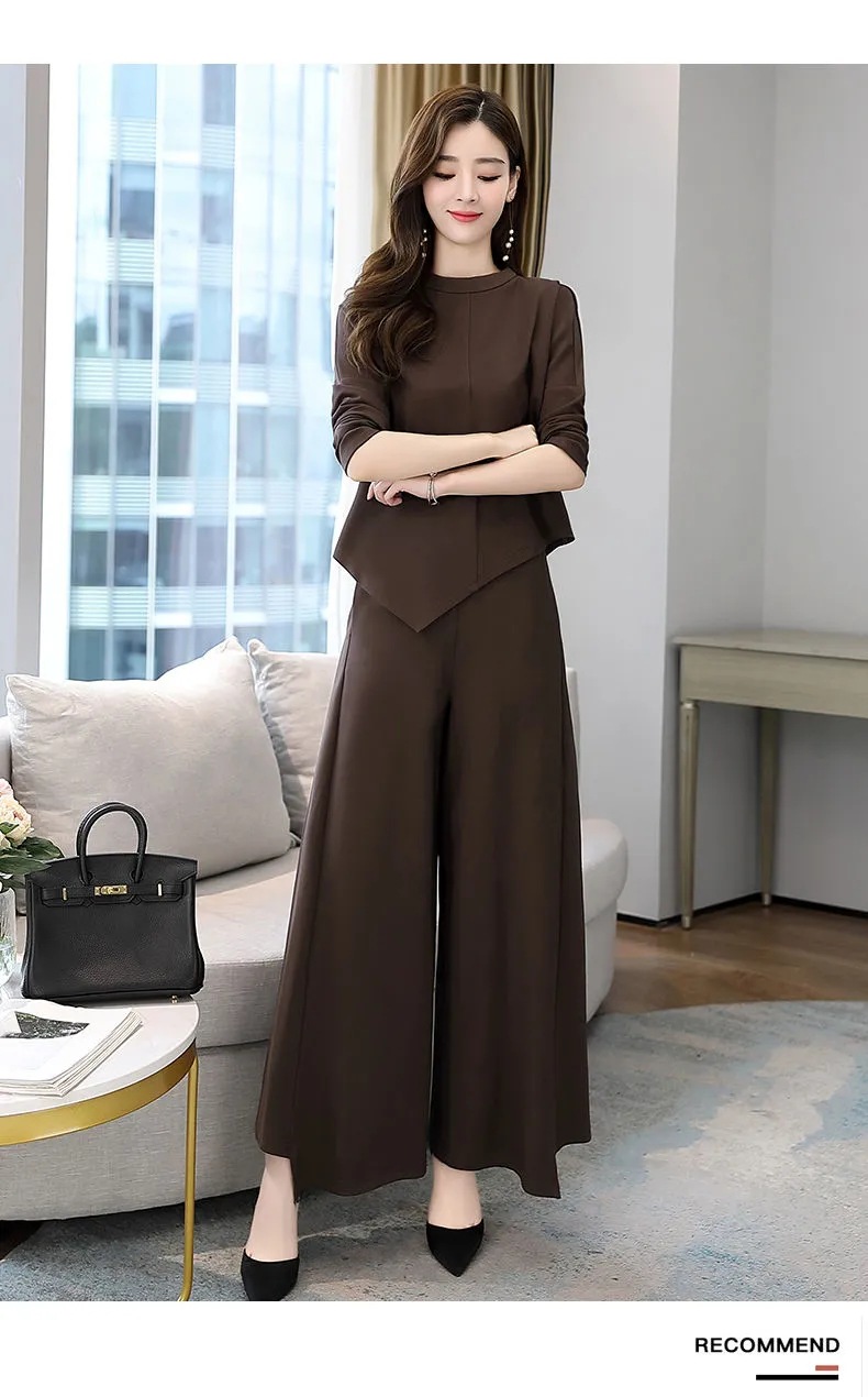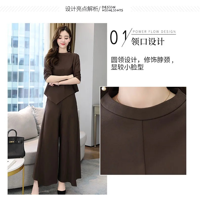 Setelan Celana Kulot Gaya Baru Musim Semi dan Gugur 2025 untuk Wanita, Menutupi Perut, Meniruskan, Modis, Kasual, Elegan, Setelan Dua Potong Rok-Celana