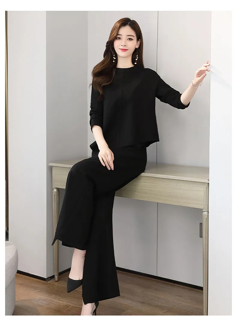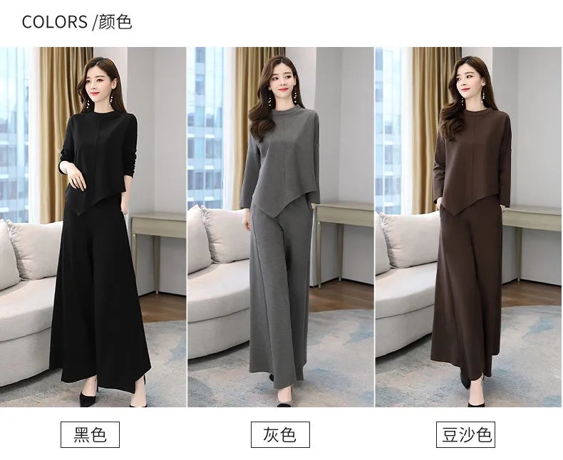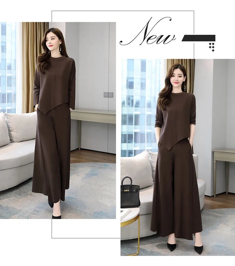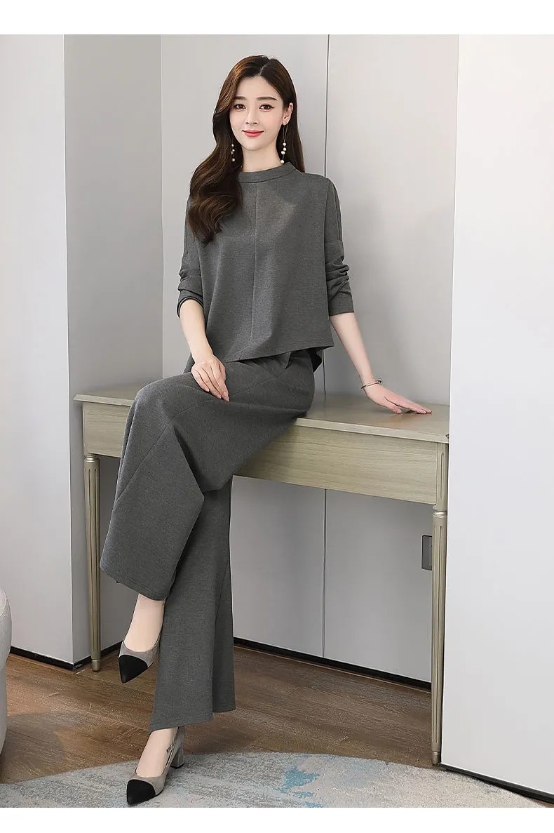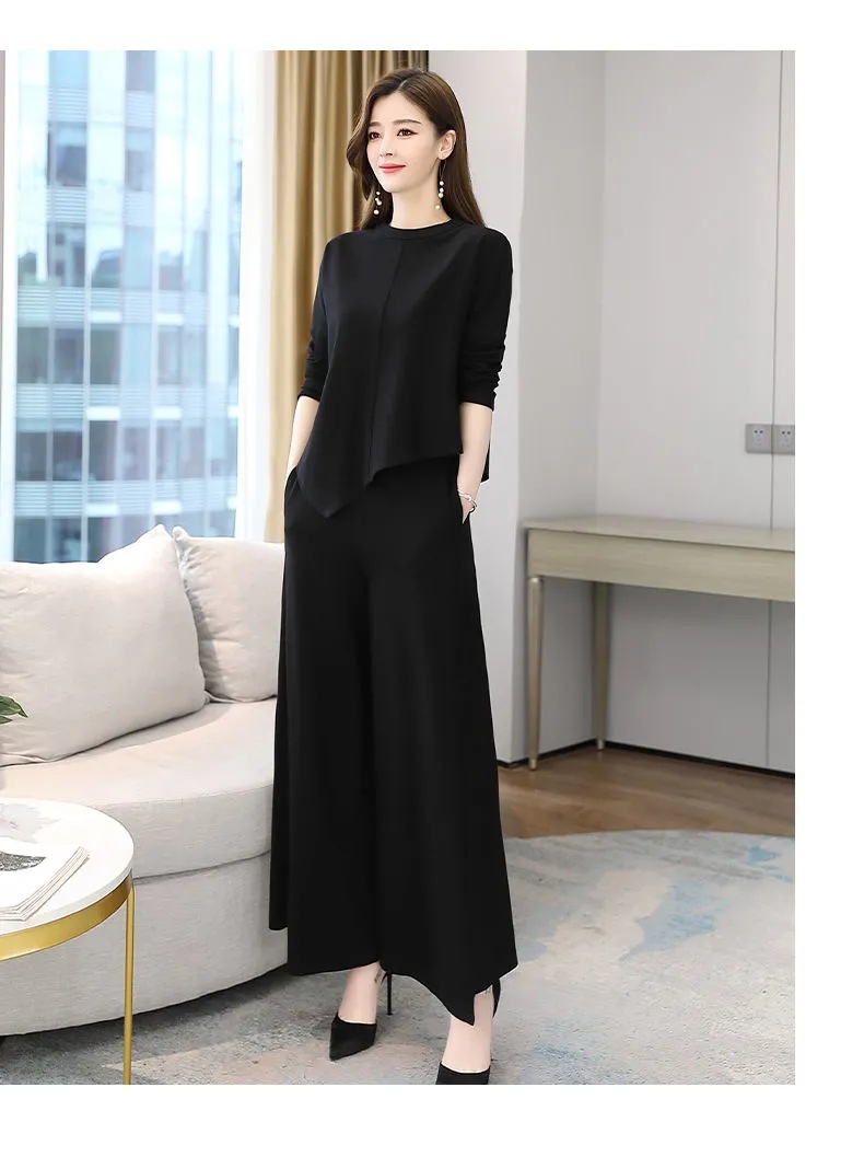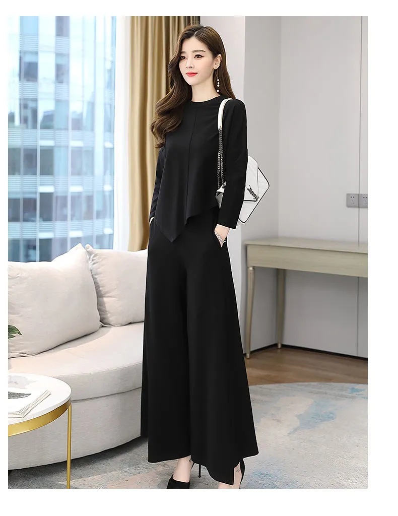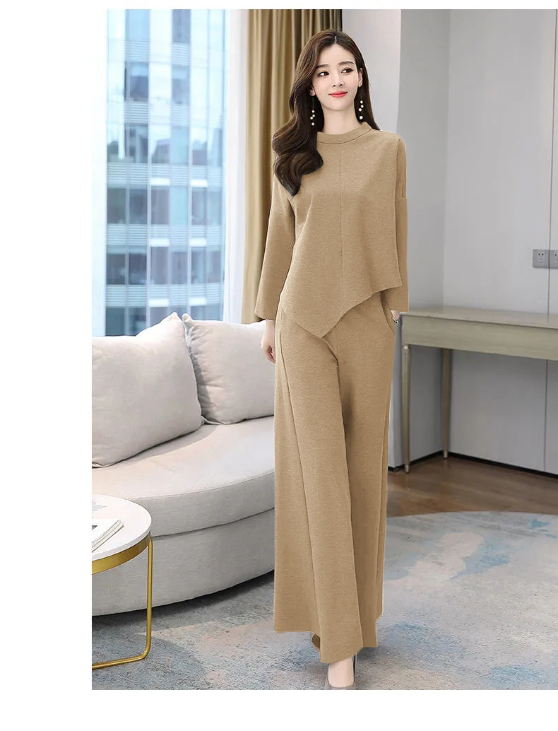 Setelan Celana Kulot Gaya Baru Musim Semi dan Gugur 2025 untuk Wanita, Menutupi Perut, Meniruskan, Modis, Kasual, Elegan, Setelan Dua Potong Rok-Celana