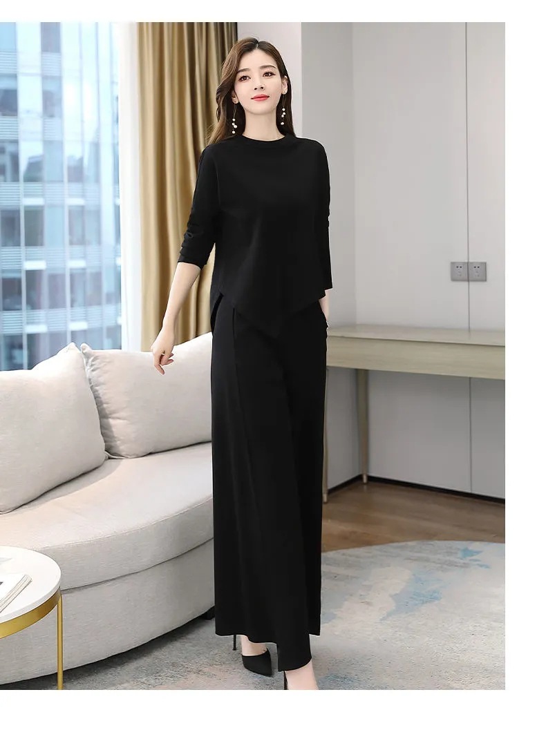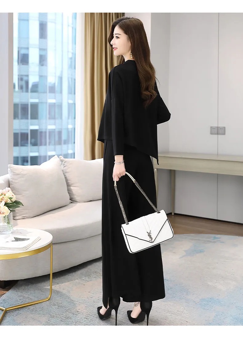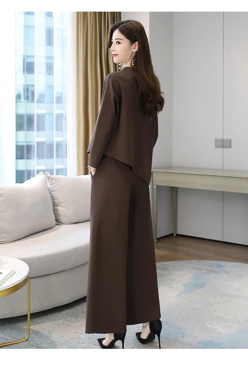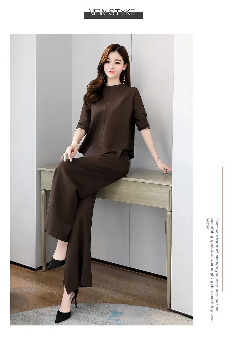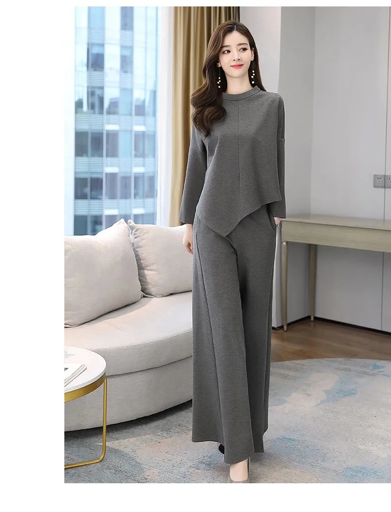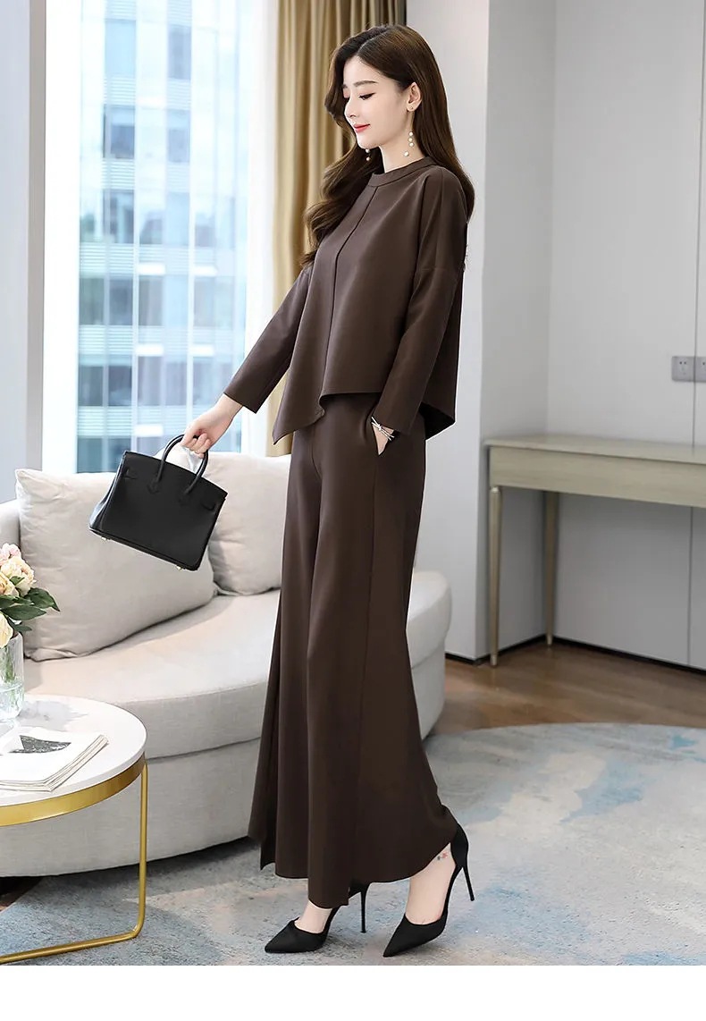 Setelan Celana Kulot Gaya Baru Musim Semi dan Gugur 2025 untuk Wanita, Menutupi Perut, Meniruskan, Modis, Kasual, Elegan, Setelan Dua Potong Rok-Celana