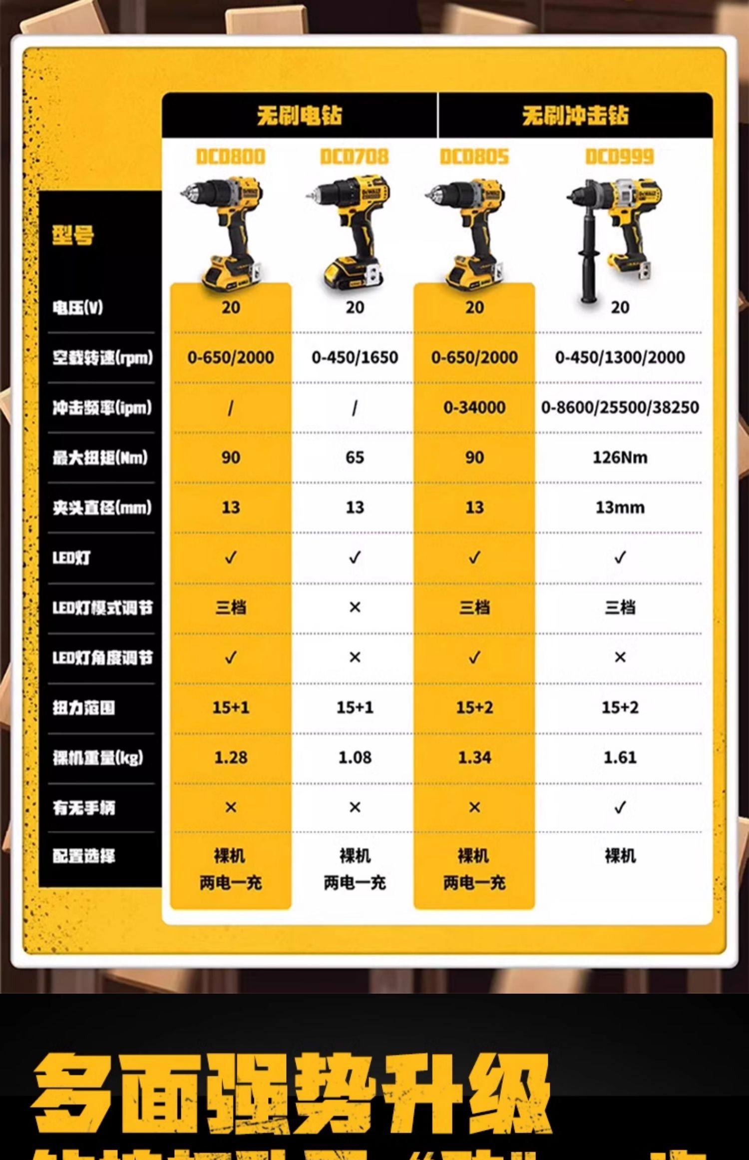 Dewei Bor Listrik Kelas Industri Brushless Bor Listrik Lithium Bor Impact Bor Listrik Multifungsi Bor Pengisian Bor Listrik Tangan DCD800/805