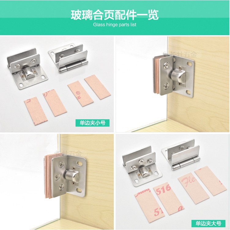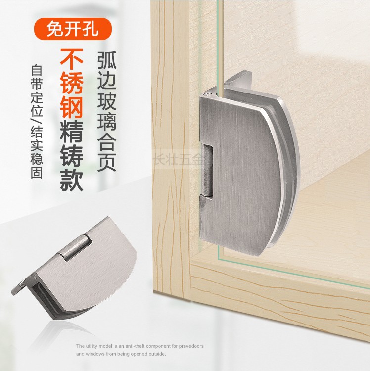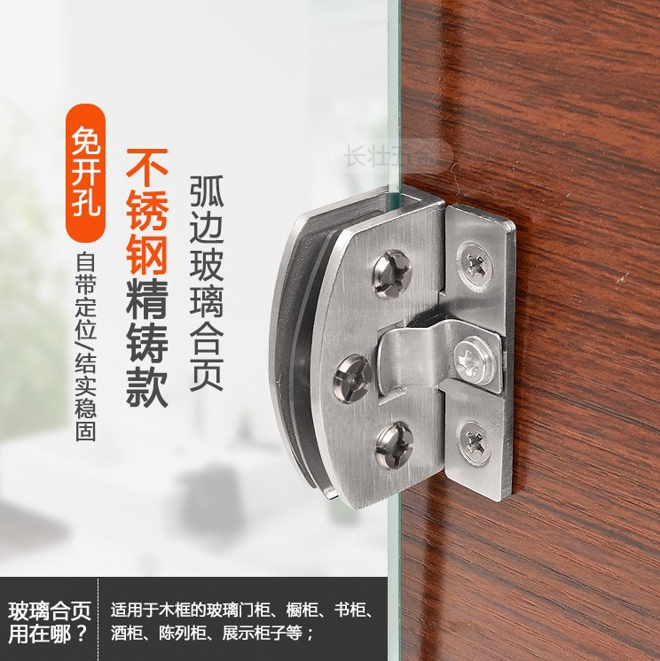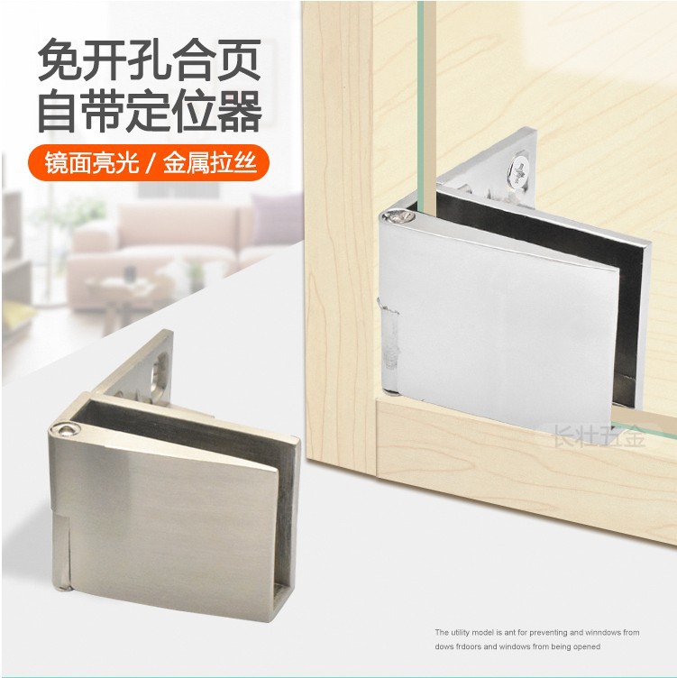 Engsel kabinet kaca, engsel kabinet anggur kaca tanpa bingkai bebas lubang, klip pintu kabinet pajangan, pintu kaca lipat tetap grosir