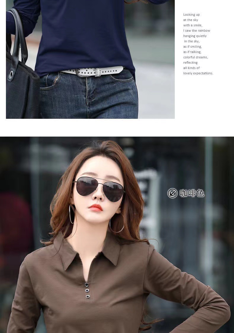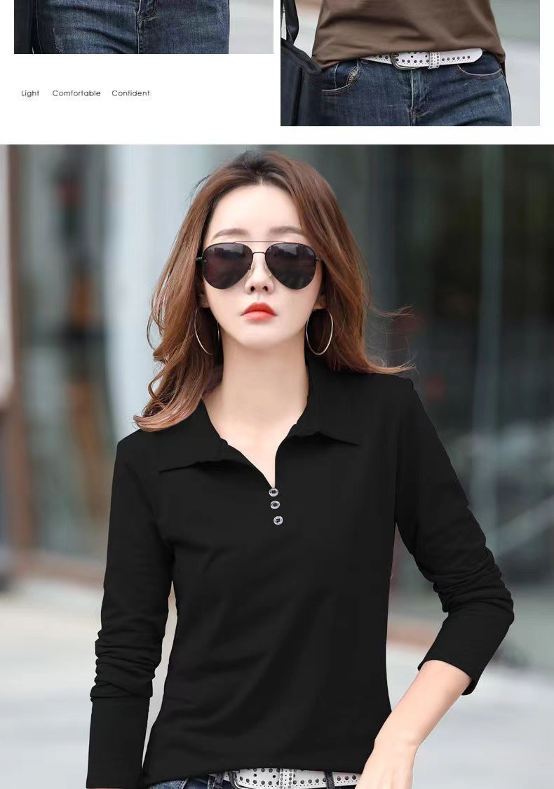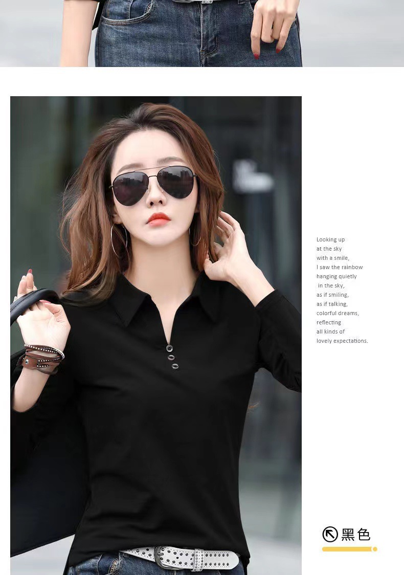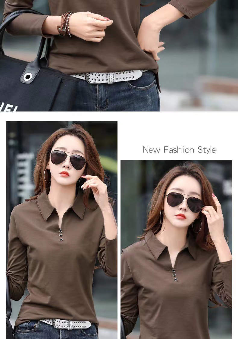 Kaus POLO wanita lengan panjang, baju kerah POLO warna polos ukuran besar, pakaian luar sederhana dan ramping, kemeja bottoming wanita musim semi dan musim panas baru
