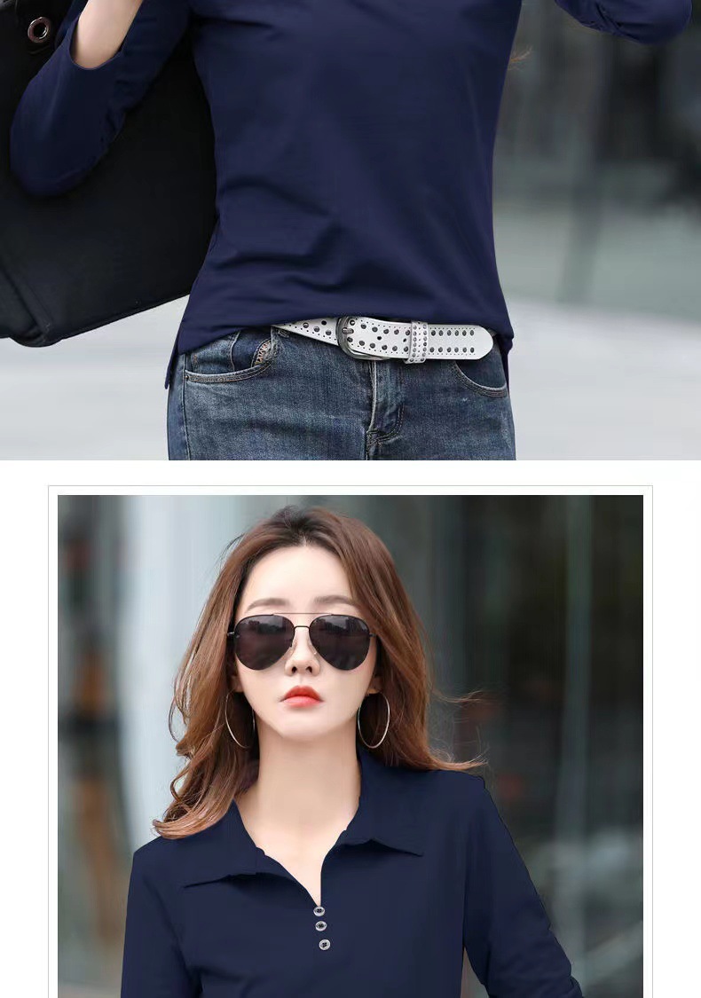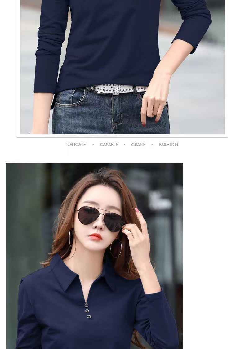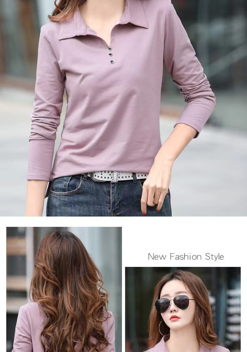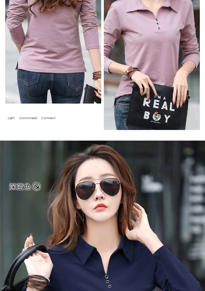 Kaus POLO wanita lengan panjang, baju kerah POLO warna polos ukuran besar, pakaian luar sederhana dan ramping, kemeja bottoming wanita musim semi dan musim panas baru