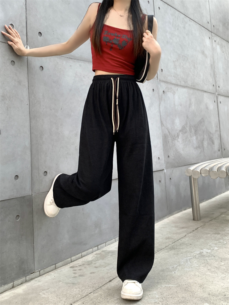 灯芯绒超细条绒阔腿裤女秋季新款双抽绳笑脸腰带休闲裤高腰直筒裤