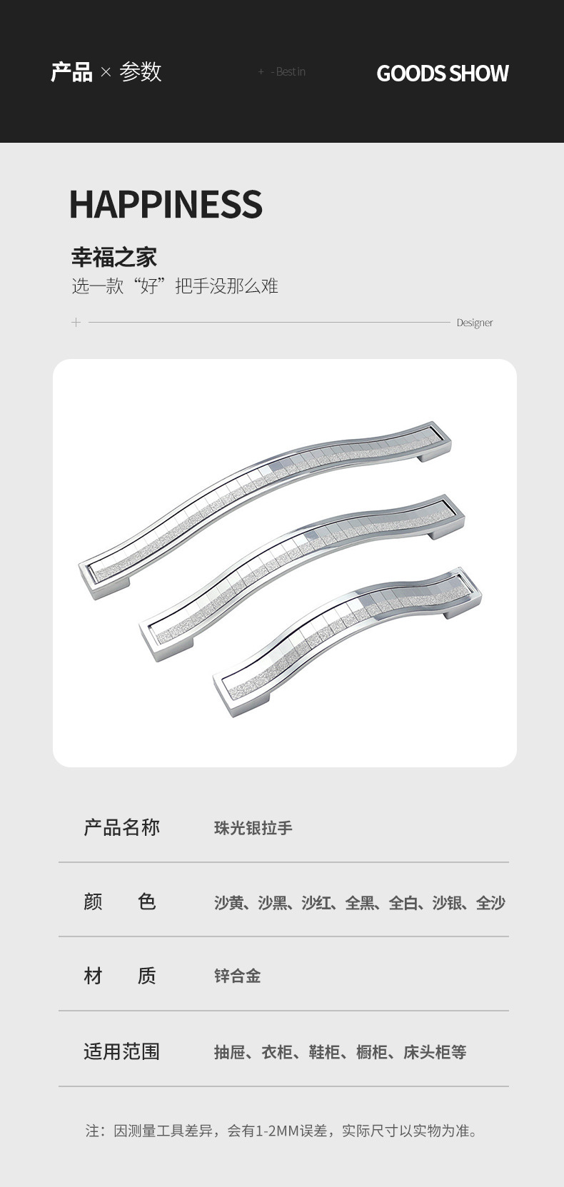 Pasokan langsung pabrik pegangan perak mutiara berlian halus modern sederhana beku perak berkilau kristal gaya Eropa pakaian pegangan pintu kabinet
