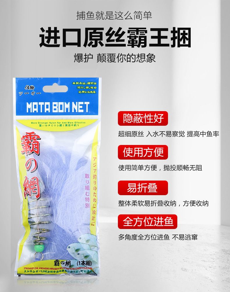 Overlord Bundel Jaring Pancing Meledak Tanpa Kait Putih Strip Putih Tiga Lapisan Jaring Filamen Jaring Ikan Set Penangkapan Ikan Grosir