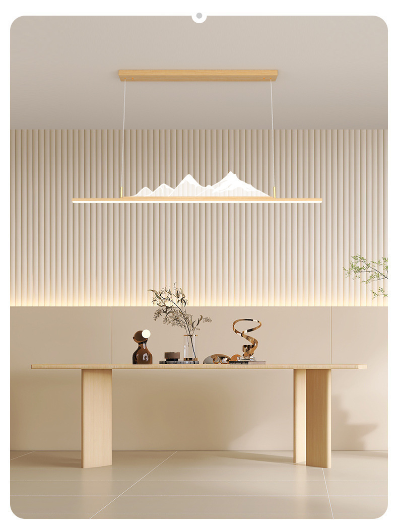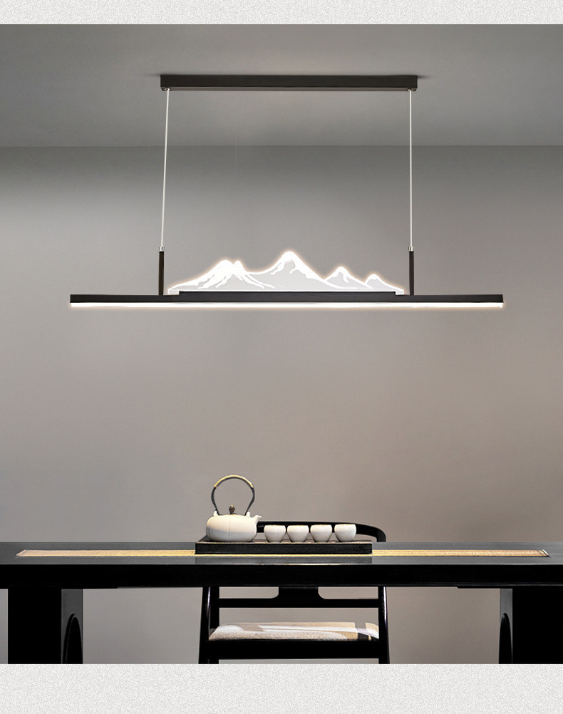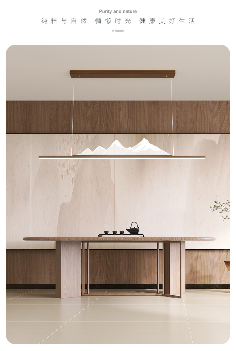 Lampu Gantung Restoran Gaya Tiongkok Baru Satu Garis Panjang Pola Kayu Walnut Lampu Ruang Belajar Bar Gaya Cina Zen Lampu Meja Teh Kamar Teh