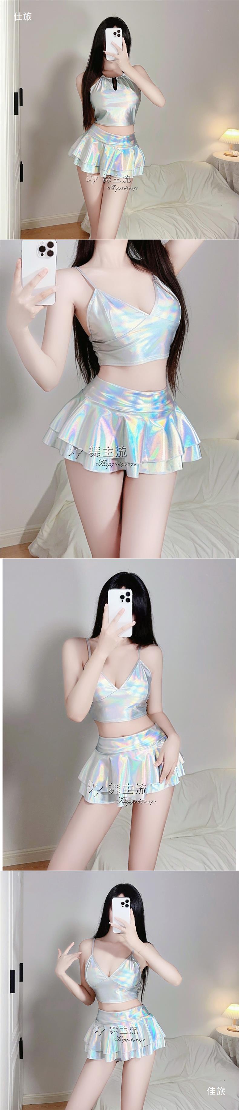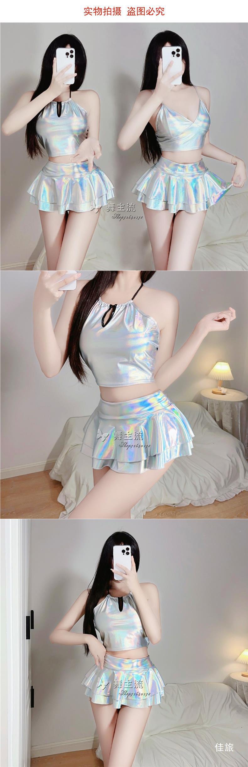 Pakaian Panggung Kerah Gogo Kelompok Wanita Bar DJ Model Baru Pakaian Pertunjukan Rompi Laser Seksi Rok Pendek Set Tari Jazz
