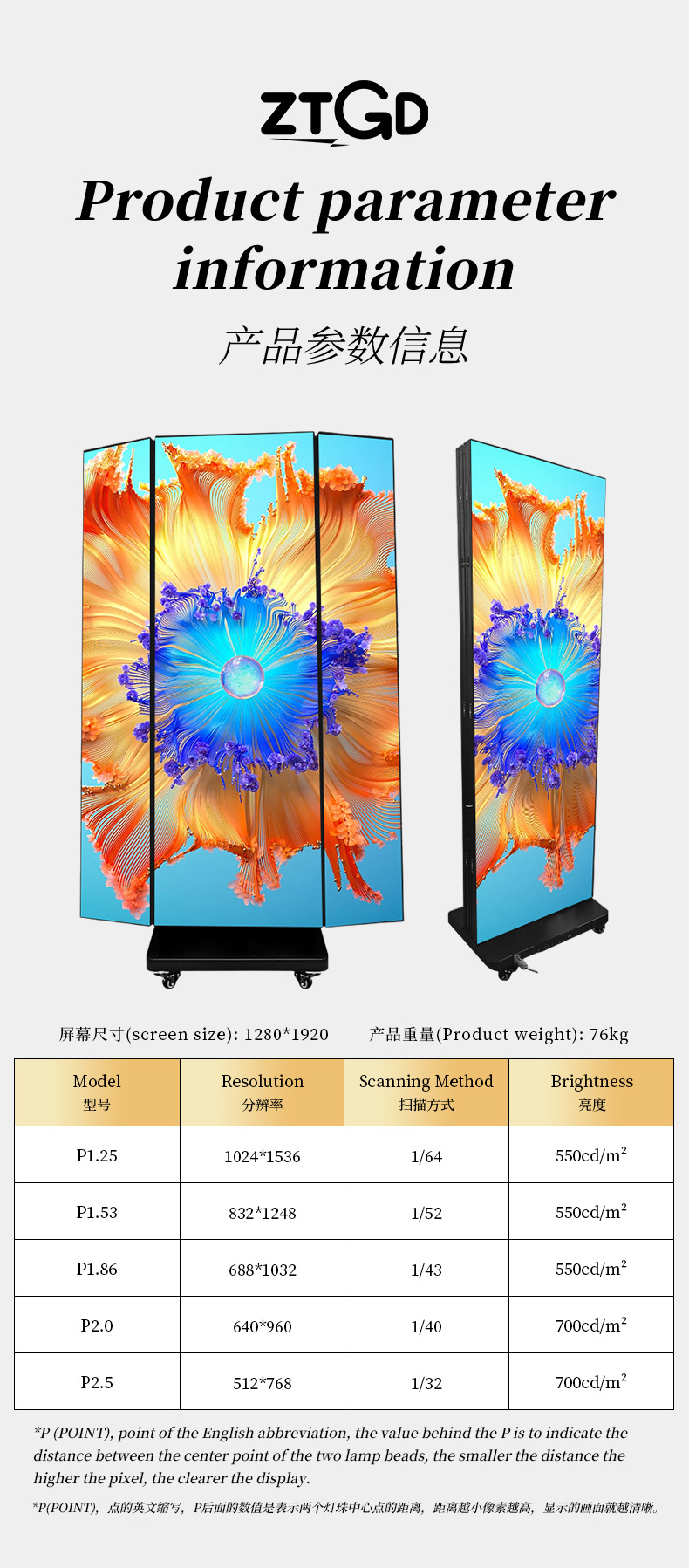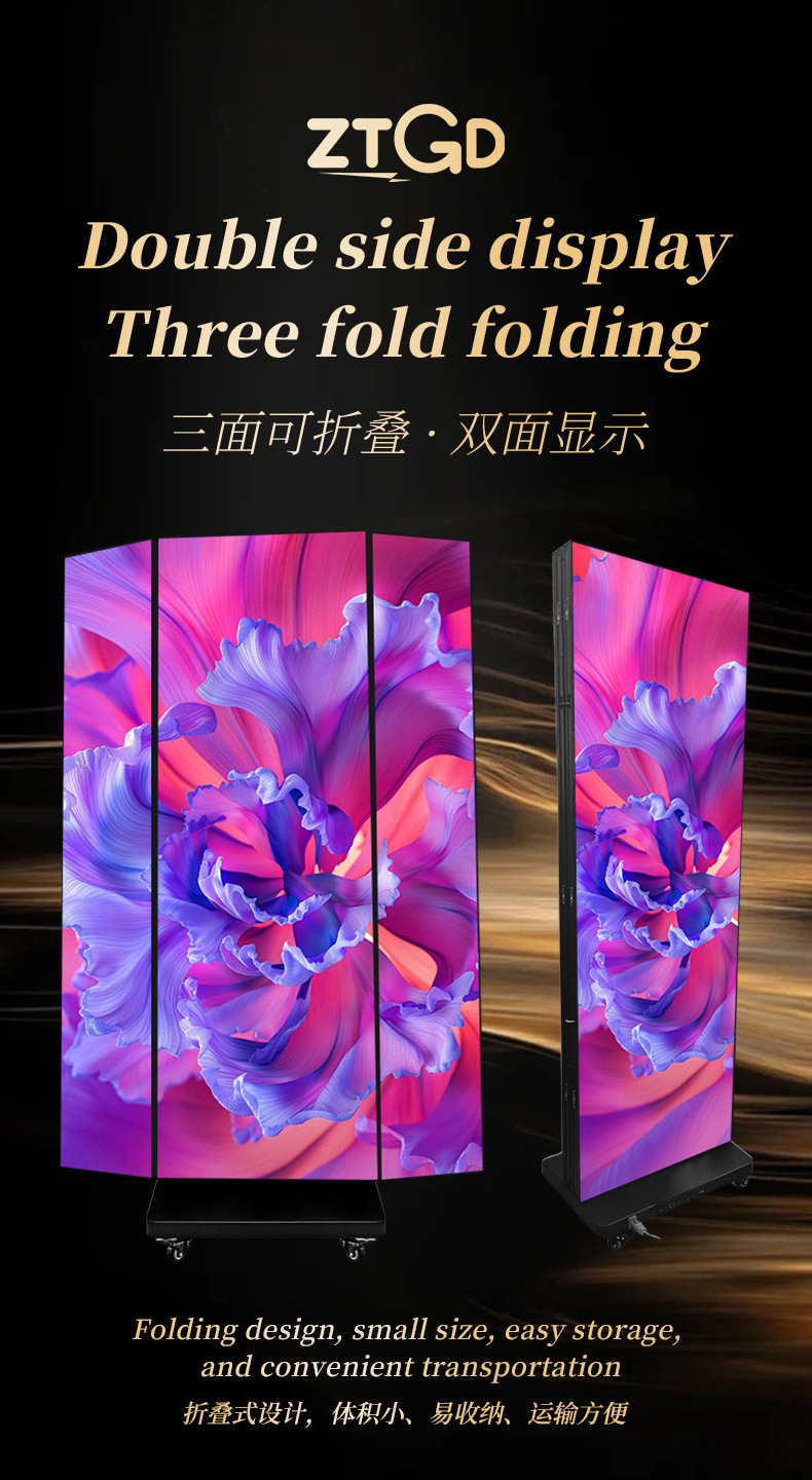 LED lantai dua sisi iklan layar display mesin iklan luar ruangan tiga lipat p2 layar poster p2.5 tampilan elektronik