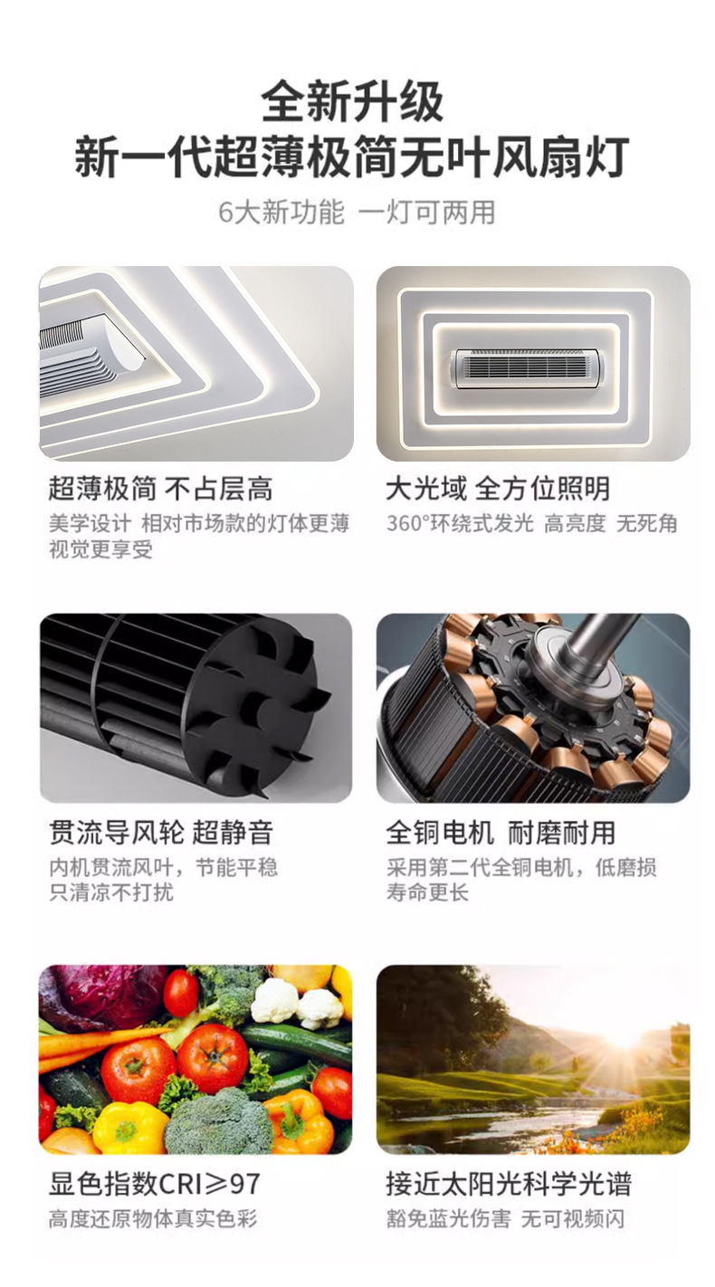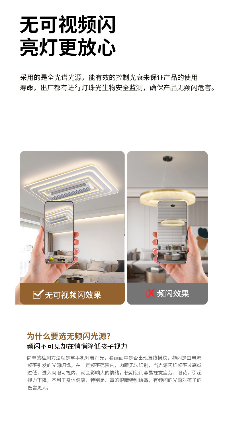 Lampu langit-langit kipas angin tanpa daun Lampu kipas angin langit-langit spektrum penuh pelindung mata Zhongshan Lampu ruang tamu kamar tidur angin besar