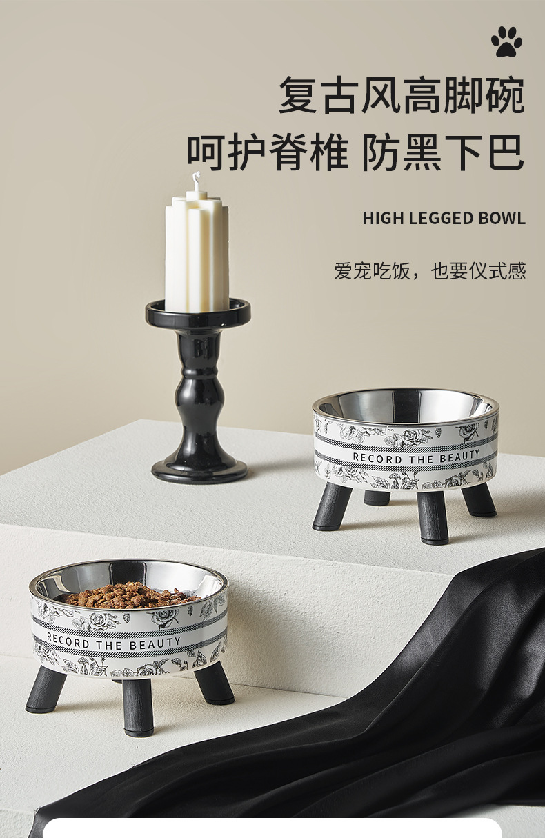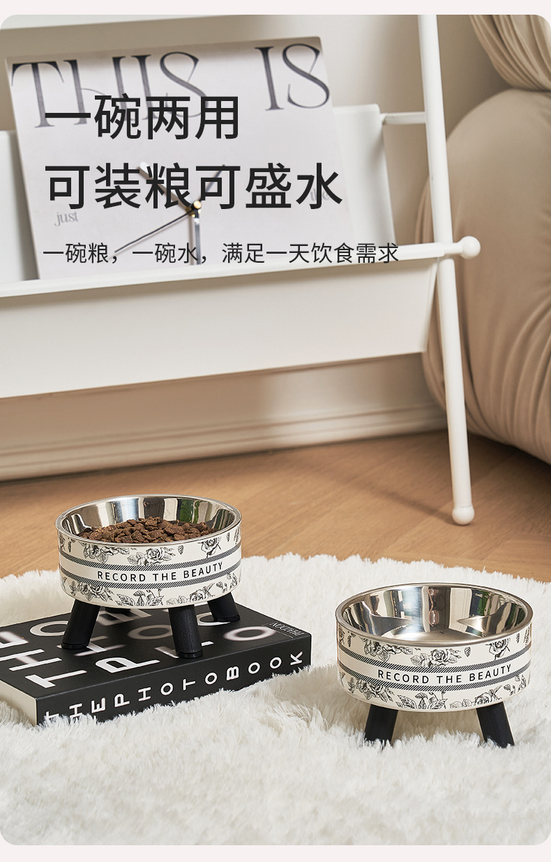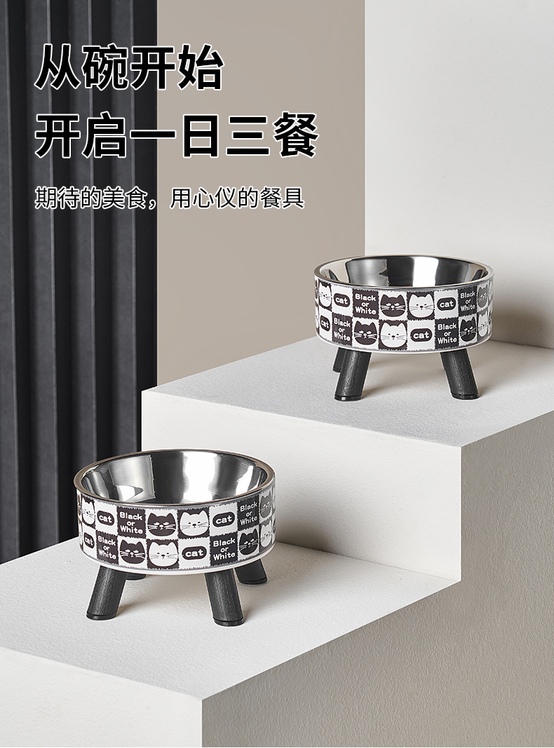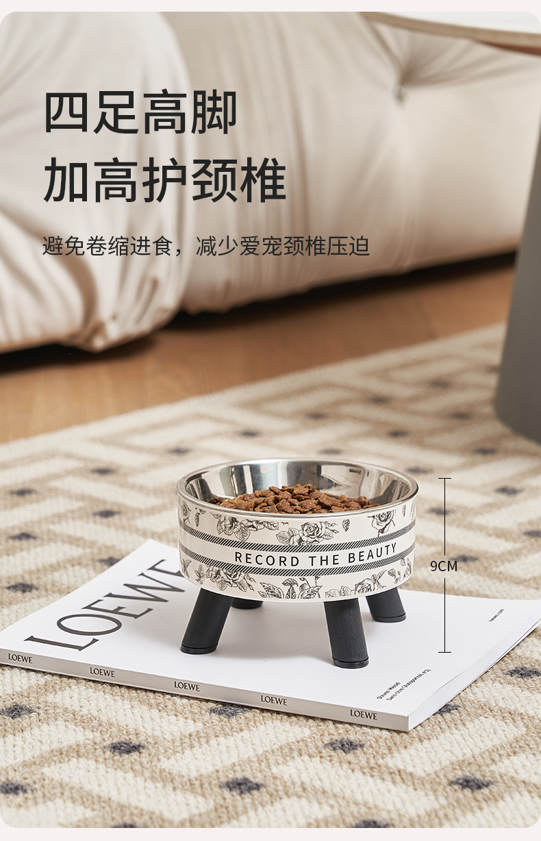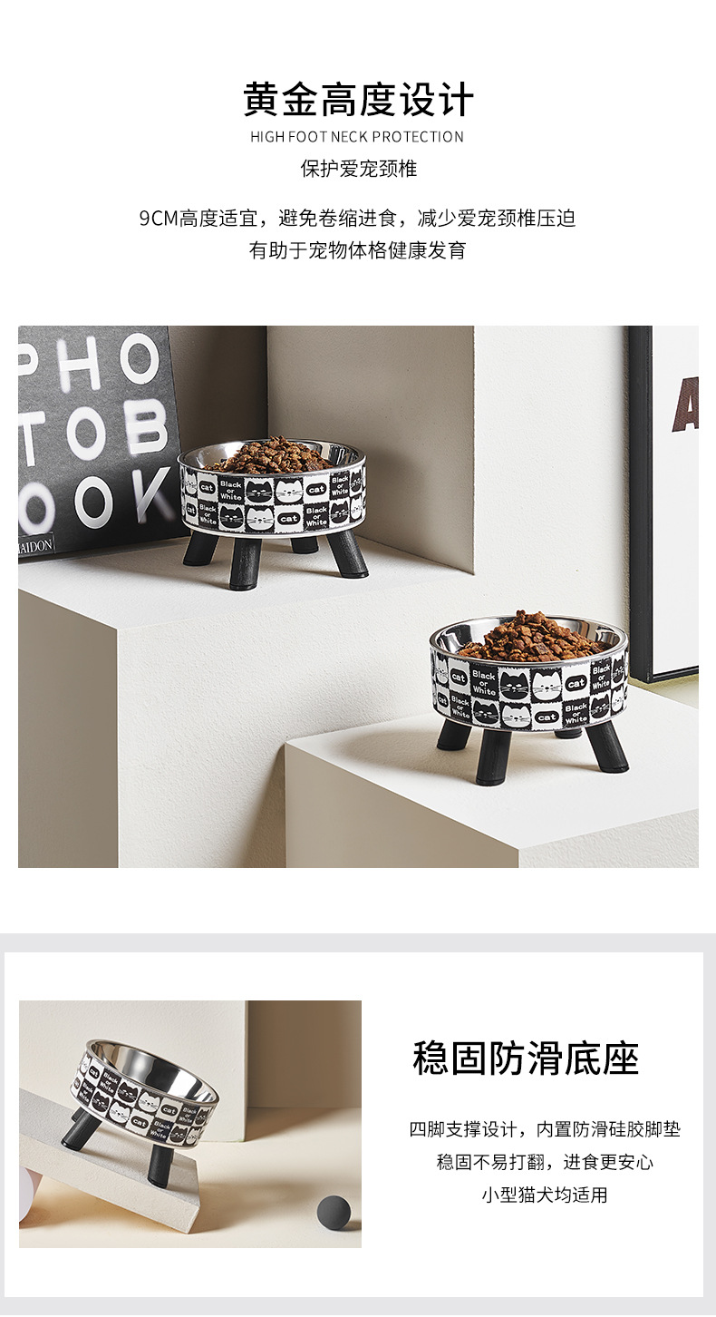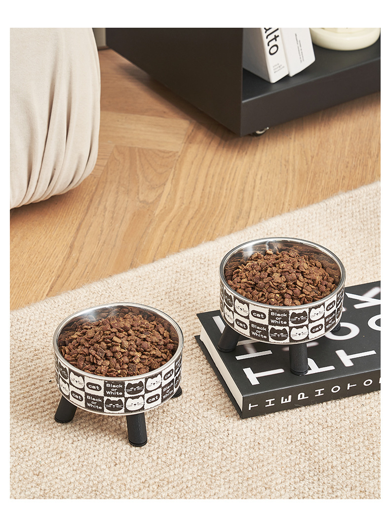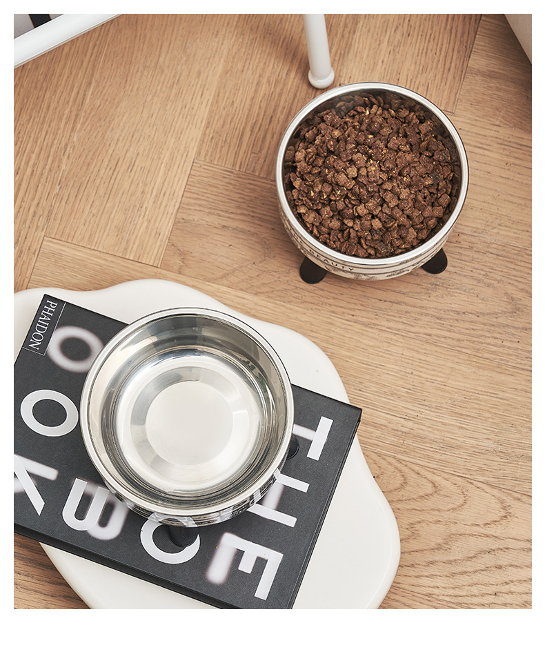 Mangkuk hewan peliharaan, Piala kucing anjing mangkuk stainless steel kapasitas besar mangkuk anjing pelindung leher mangkuk kucing non-slip anti-knock mangkuk hewan peliharaan