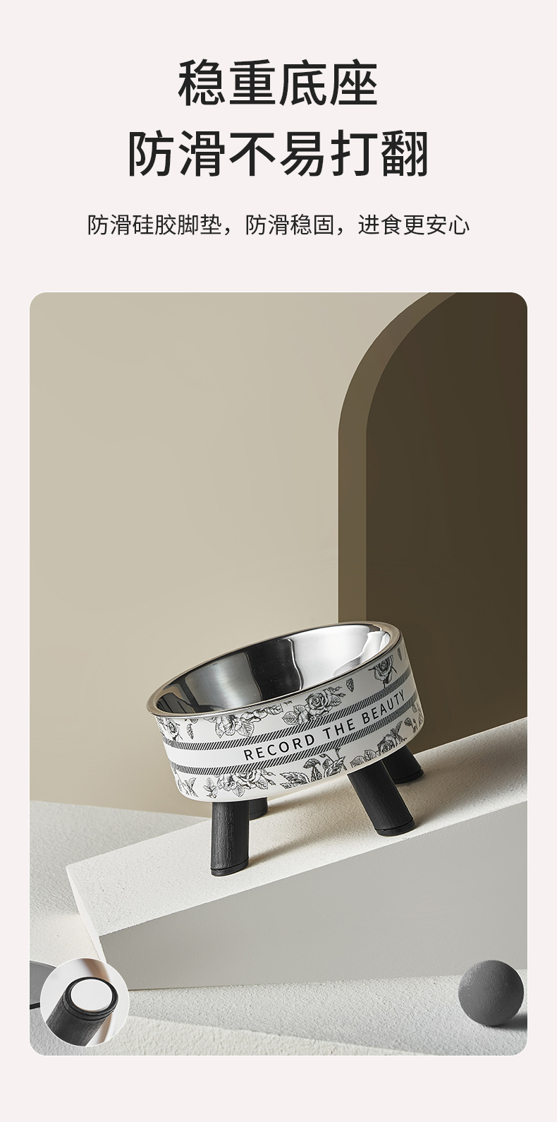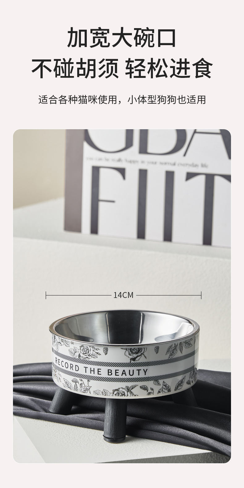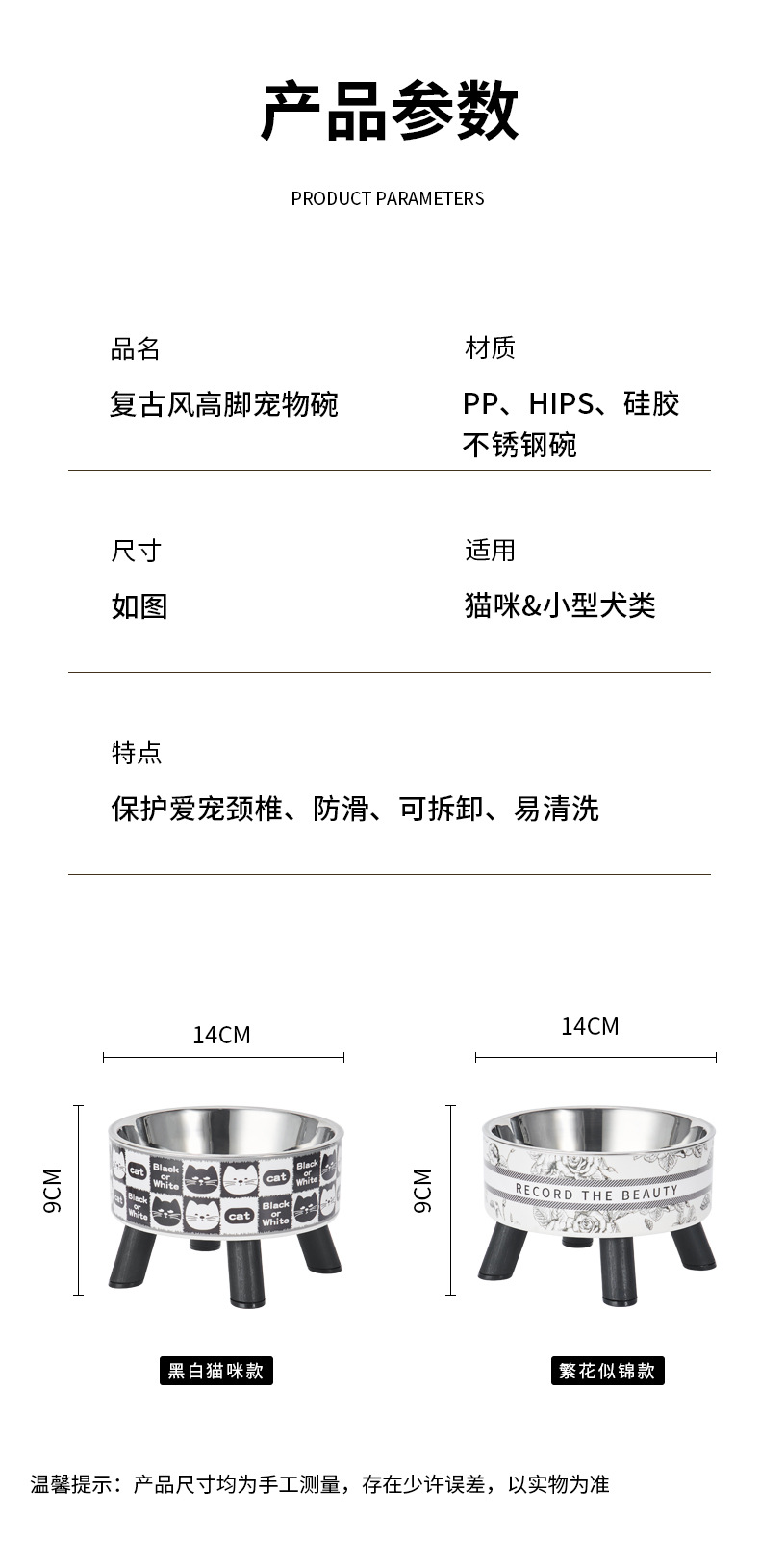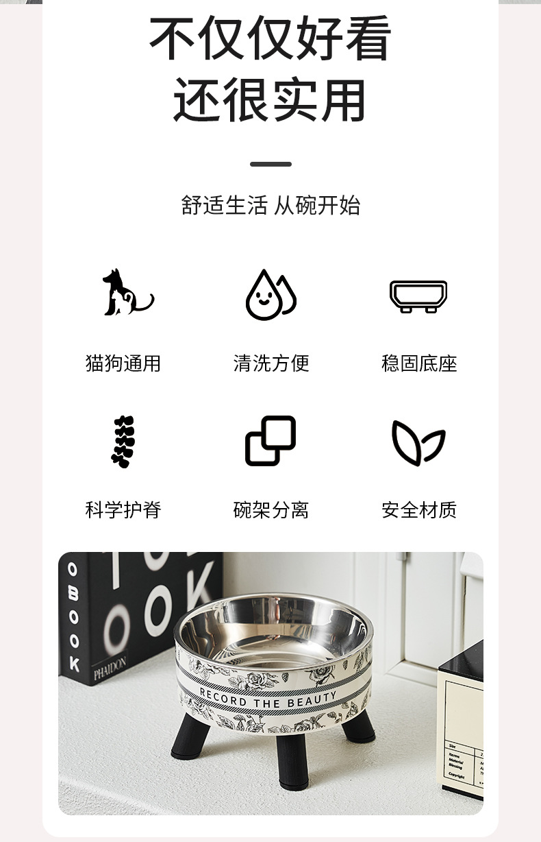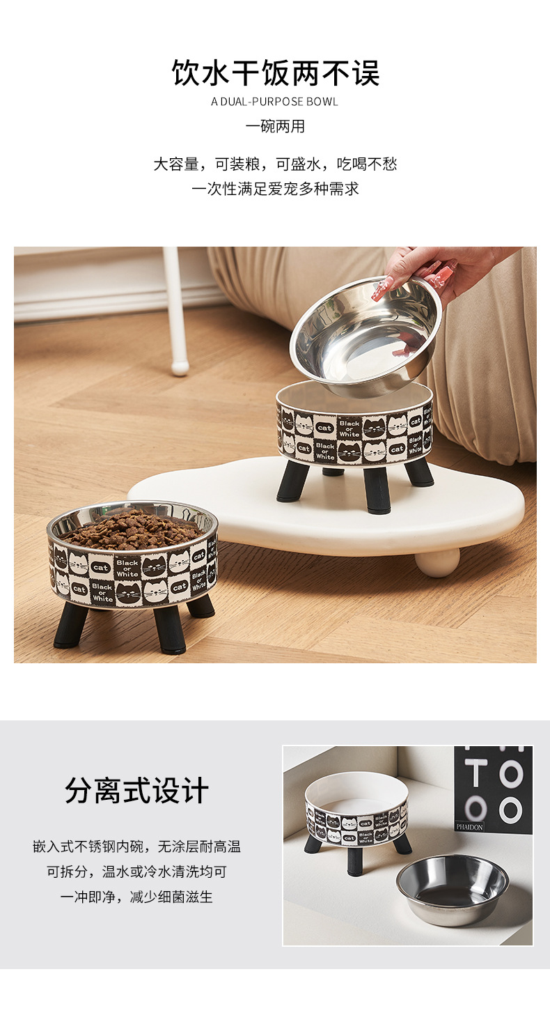 Mangkuk hewan peliharaan, Piala kucing anjing mangkuk stainless steel kapasitas besar mangkuk anjing pelindung leher mangkuk kucing non-slip anti-knock mangkuk hewan peliharaan