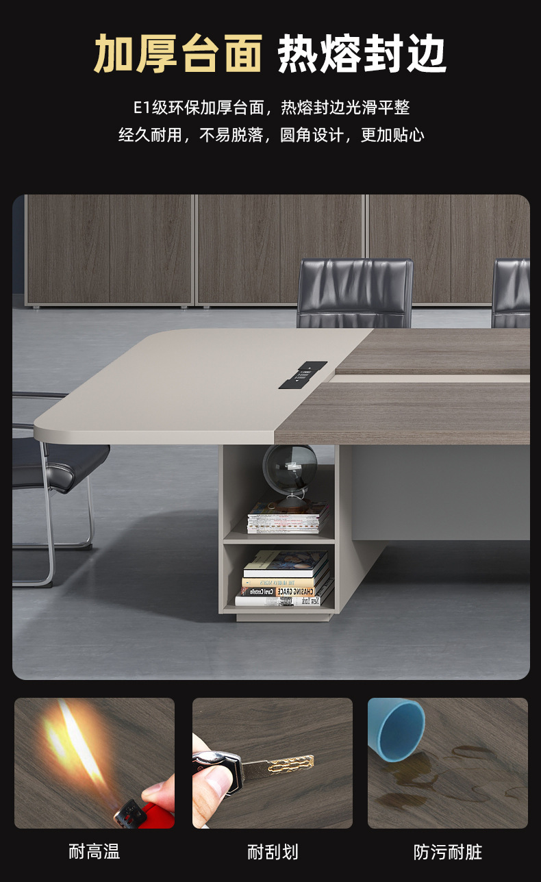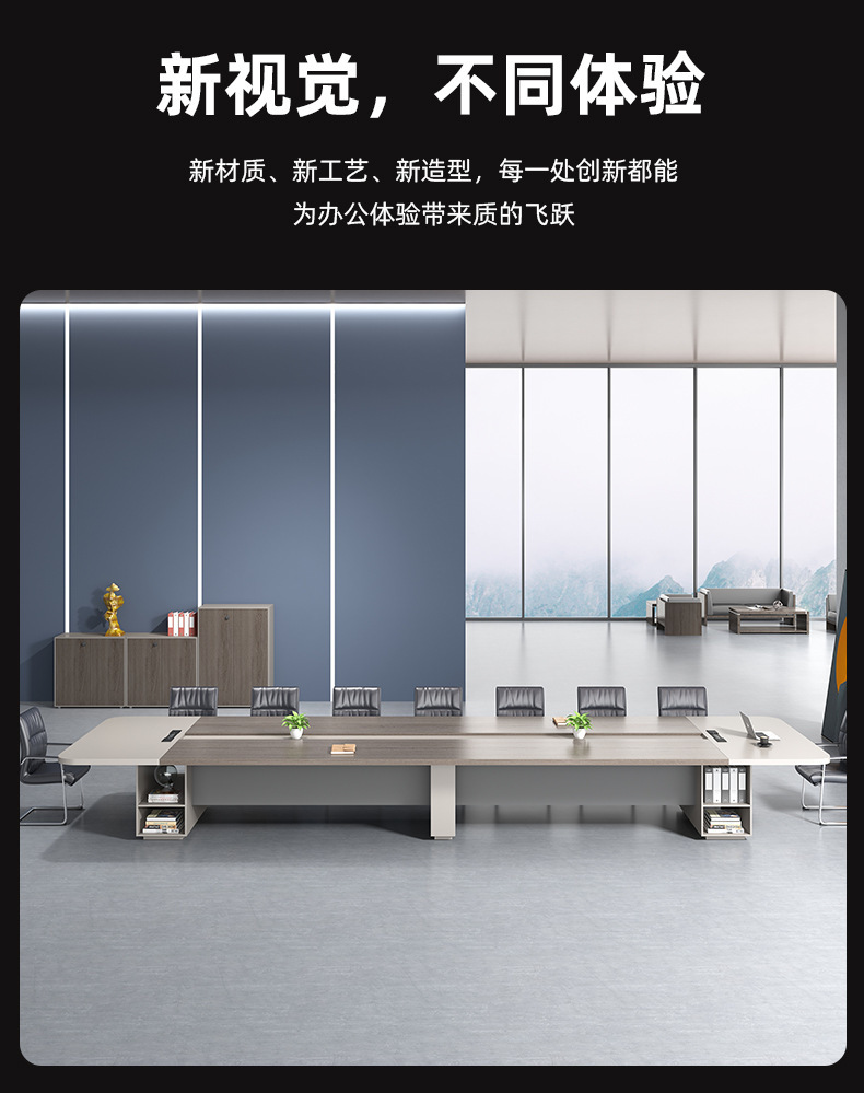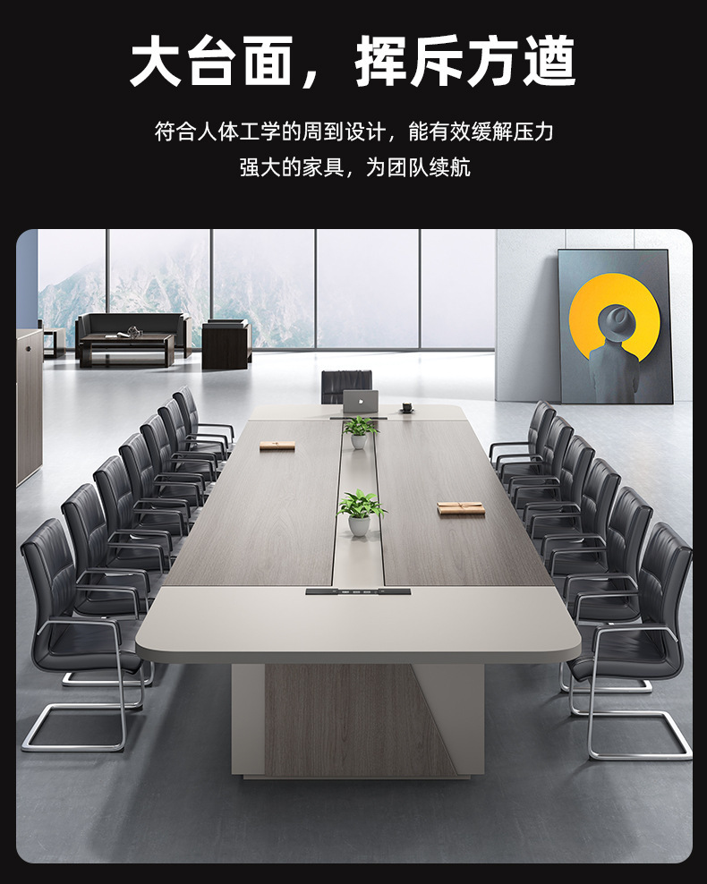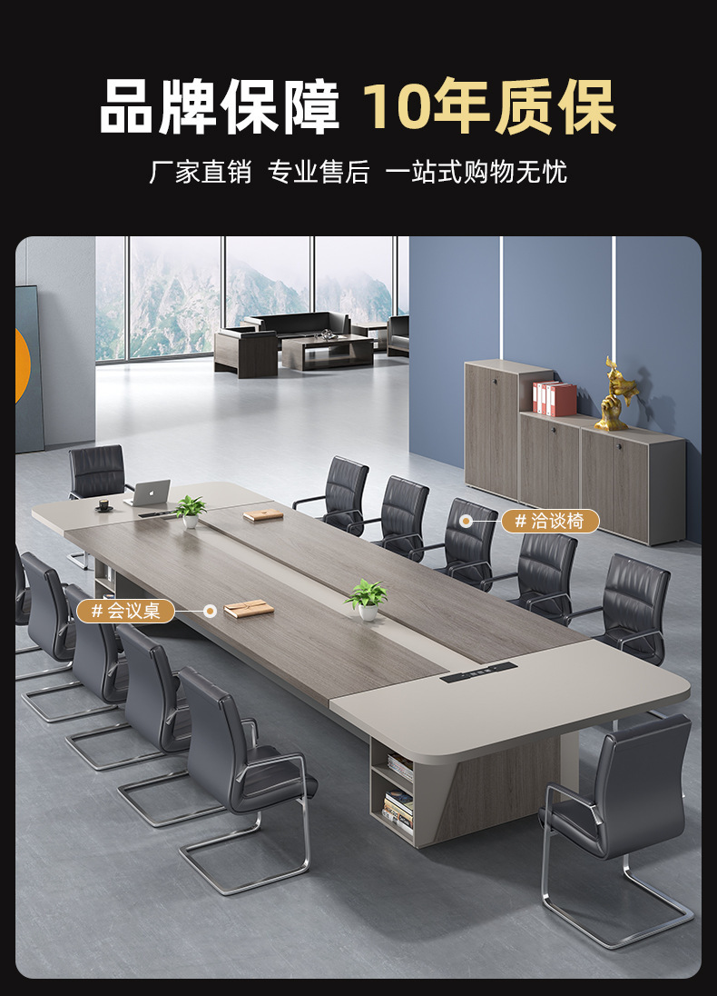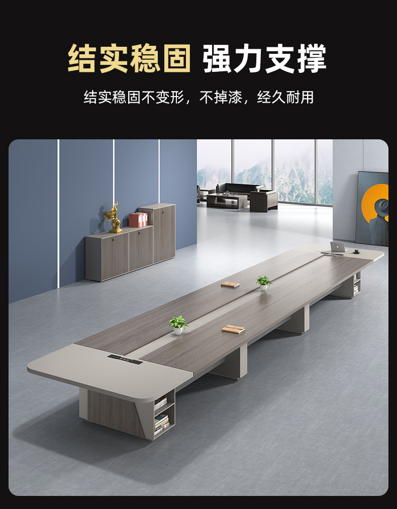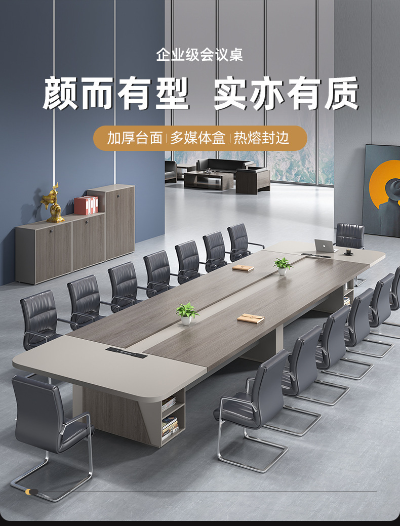 Meja konferensi besar modern sederhana, Meja panjang bulat kreatif kombinasi meja latihan dan kursi persegi panjang ruang konferensi
