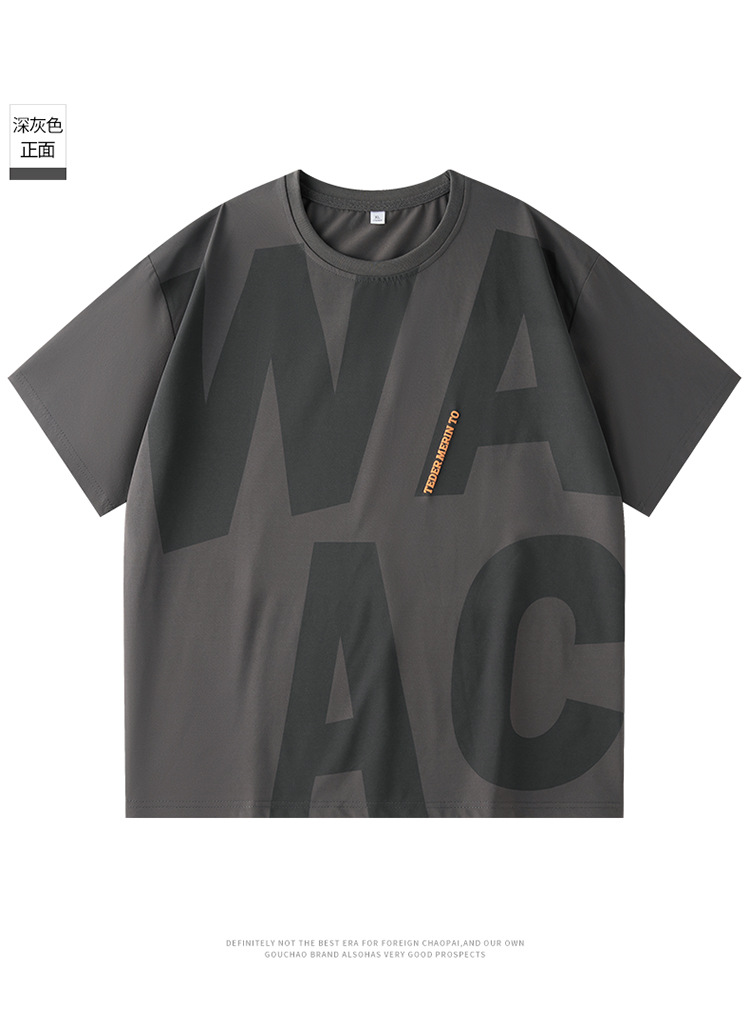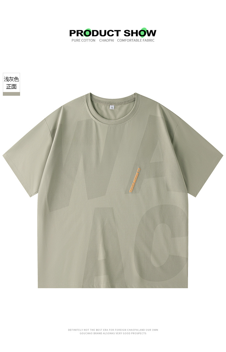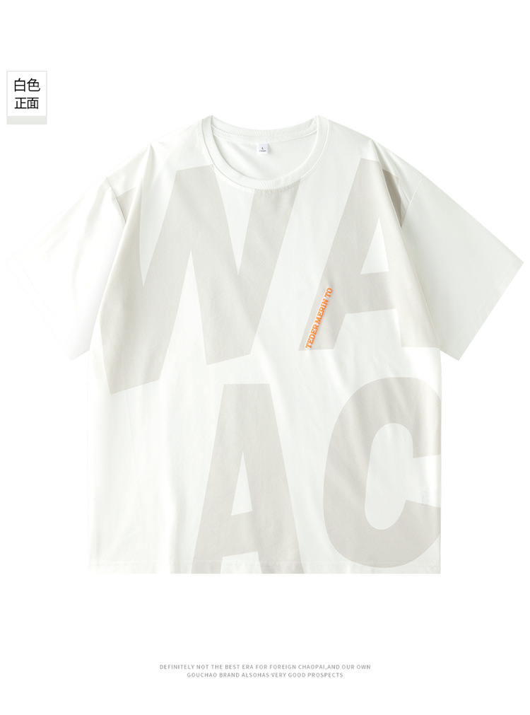 24 baru musim panas kaos lengan pendek pria ukuran besar tipis longgar mode merek trendi setengah lengan T-shirt bergambar merek fashion
