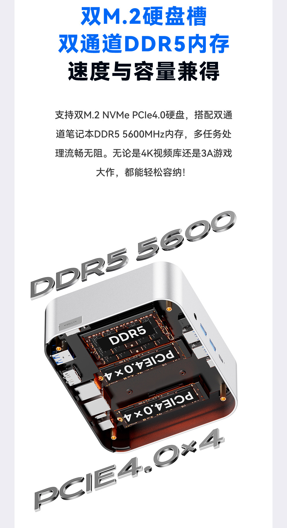 Produk Baru GT37 Ruilong AI9 HX370 Mini Komputer Kinerja Tinggi Komputasi Tinggi AI E-sports Office Minipc