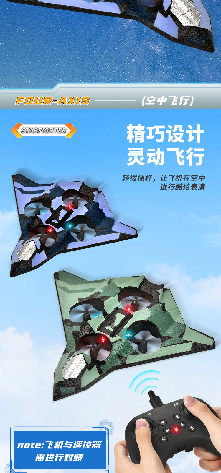 Drone tempur anak-anak yang dikendalikan dari jarak jauh, model pesawat busa yang dapat diisi ulang dan tahan jatuh, glider empat sumbu, mainan anak laki-laki