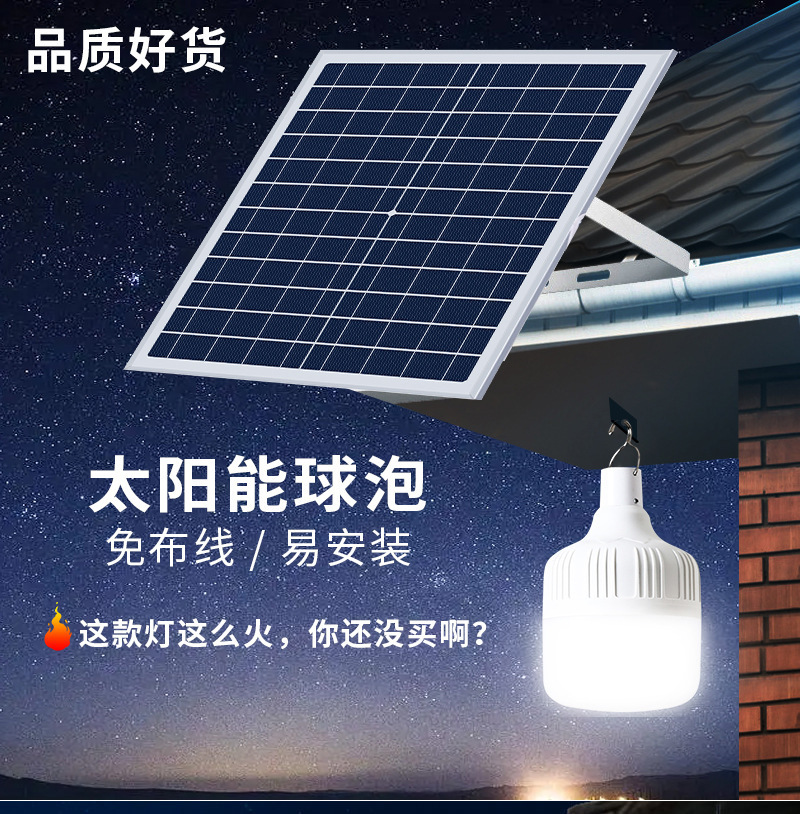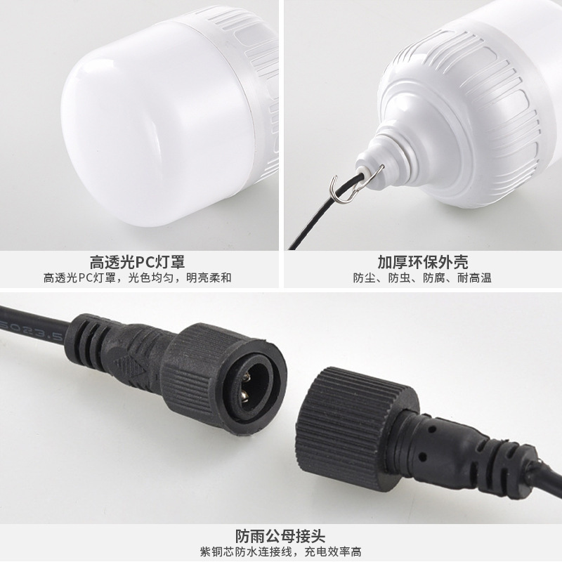 Lampu surya luar ruangan lampu jalan luar ruangan bohlam LED halaman yang dapat diisi ulang bohlam kios gaya berkemah peredupan tiga warna