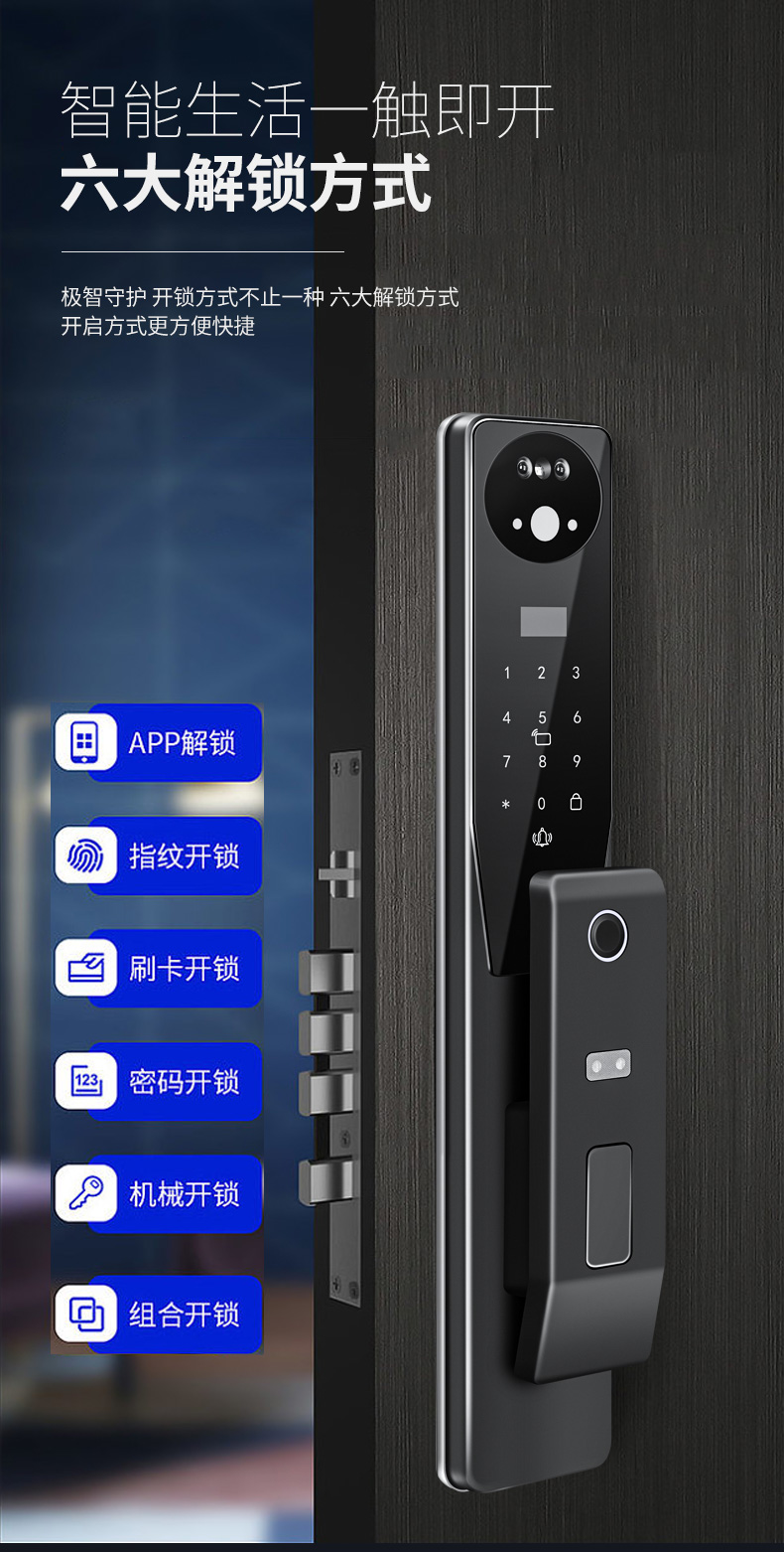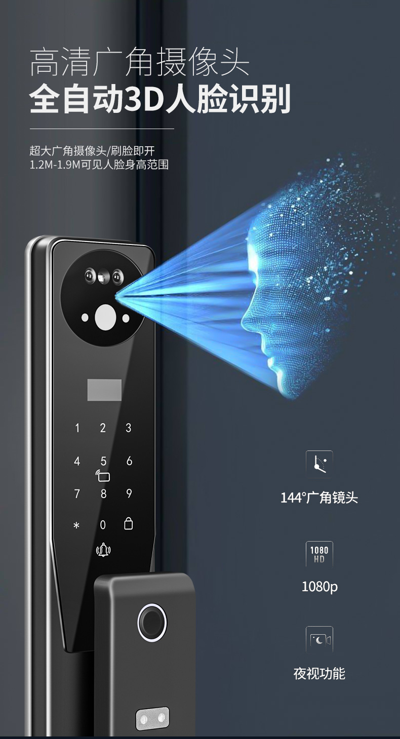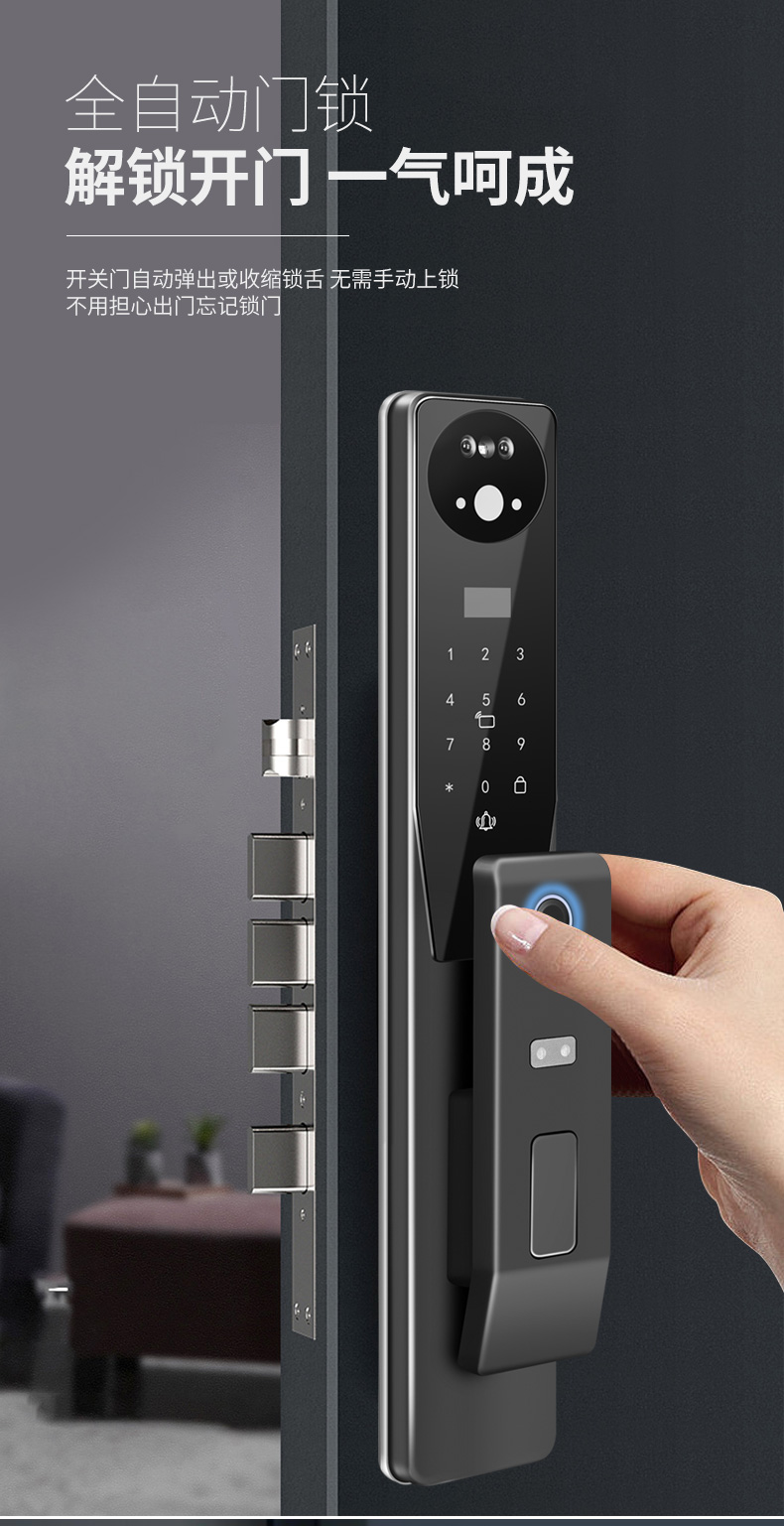 Pengenalan wajah kunci sidik jari otomatis penuh kunci keamanan rumah kunci pintu lubang intip visual kunci kata sandi kunci pintar pembuka kunci sidik jari