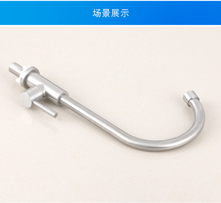 Keran wastafel dapur rumah tangga, keran dingin tunggal stainless steel 304, keran dapur rumah tangga terbuka, keran berputar vertikal