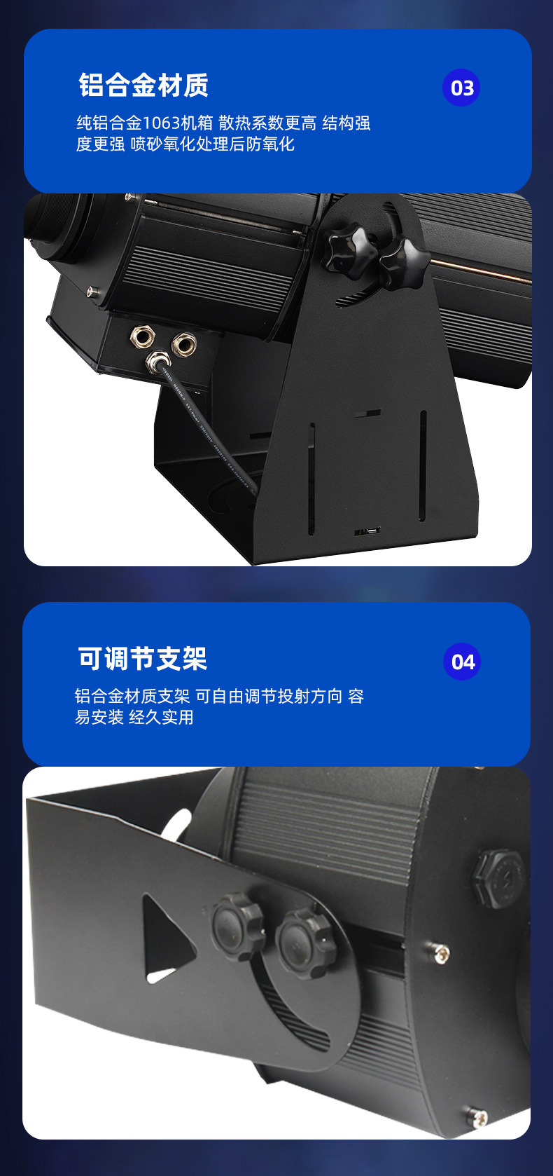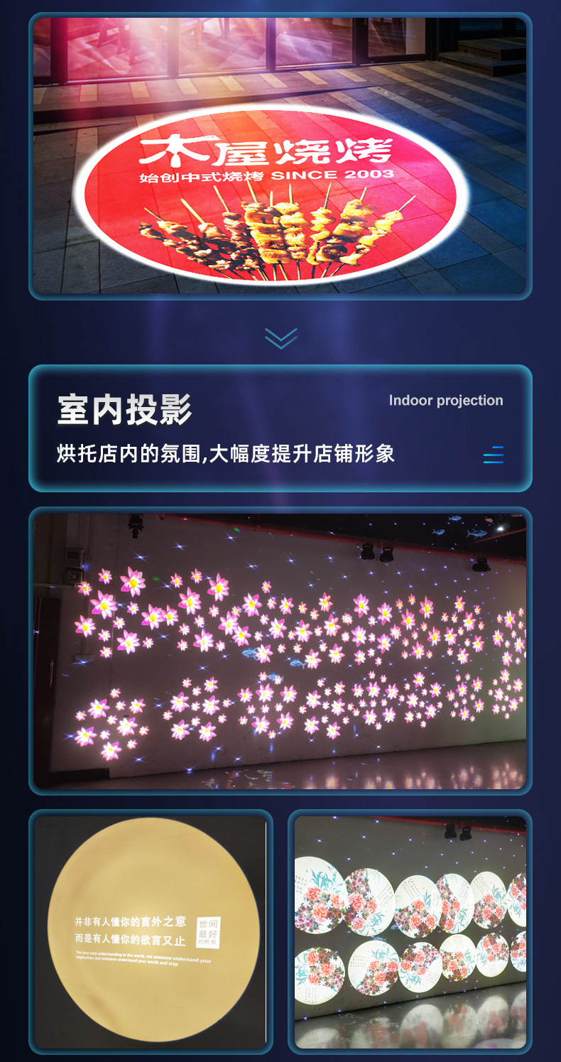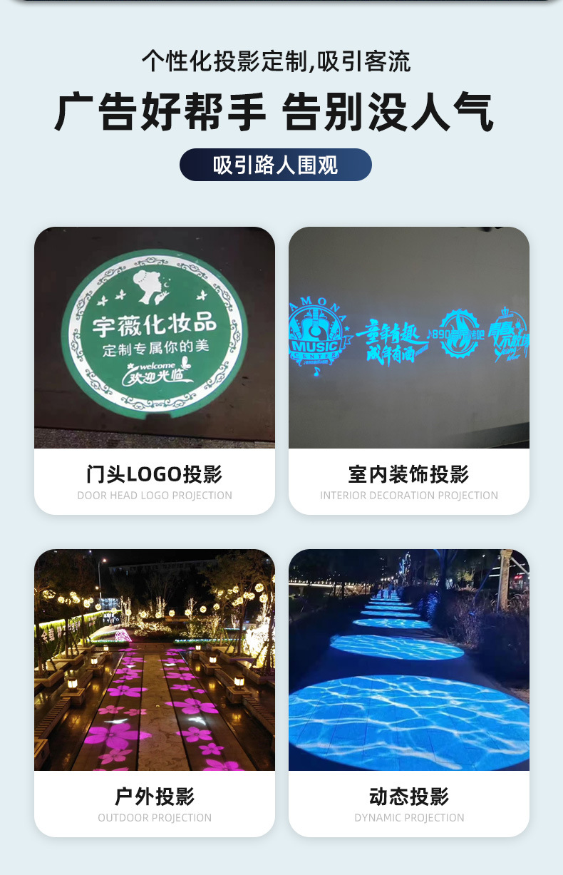 Lampu multi-proyeksi luar ruangan 4 lampu panggung sakelar rotasi dinamis lampu panggung pola logo iklan lampu sorot pintu