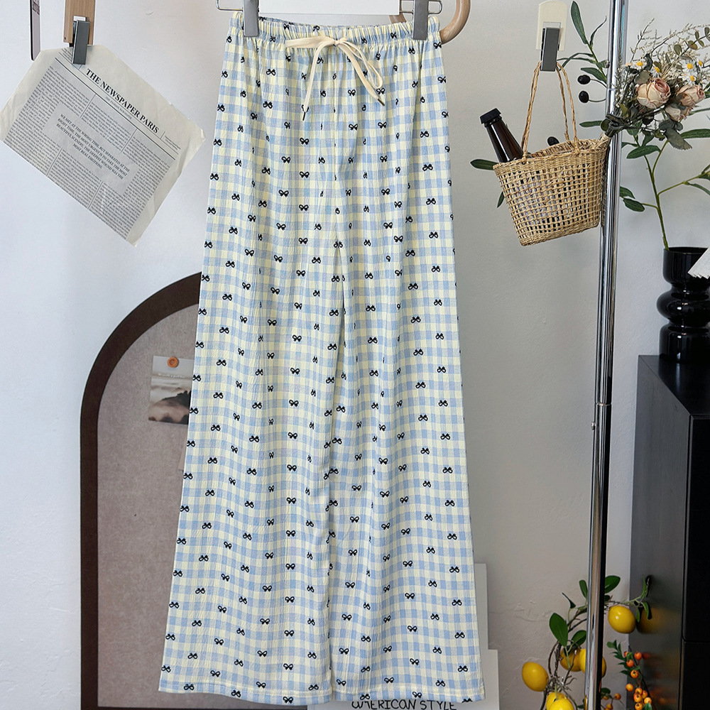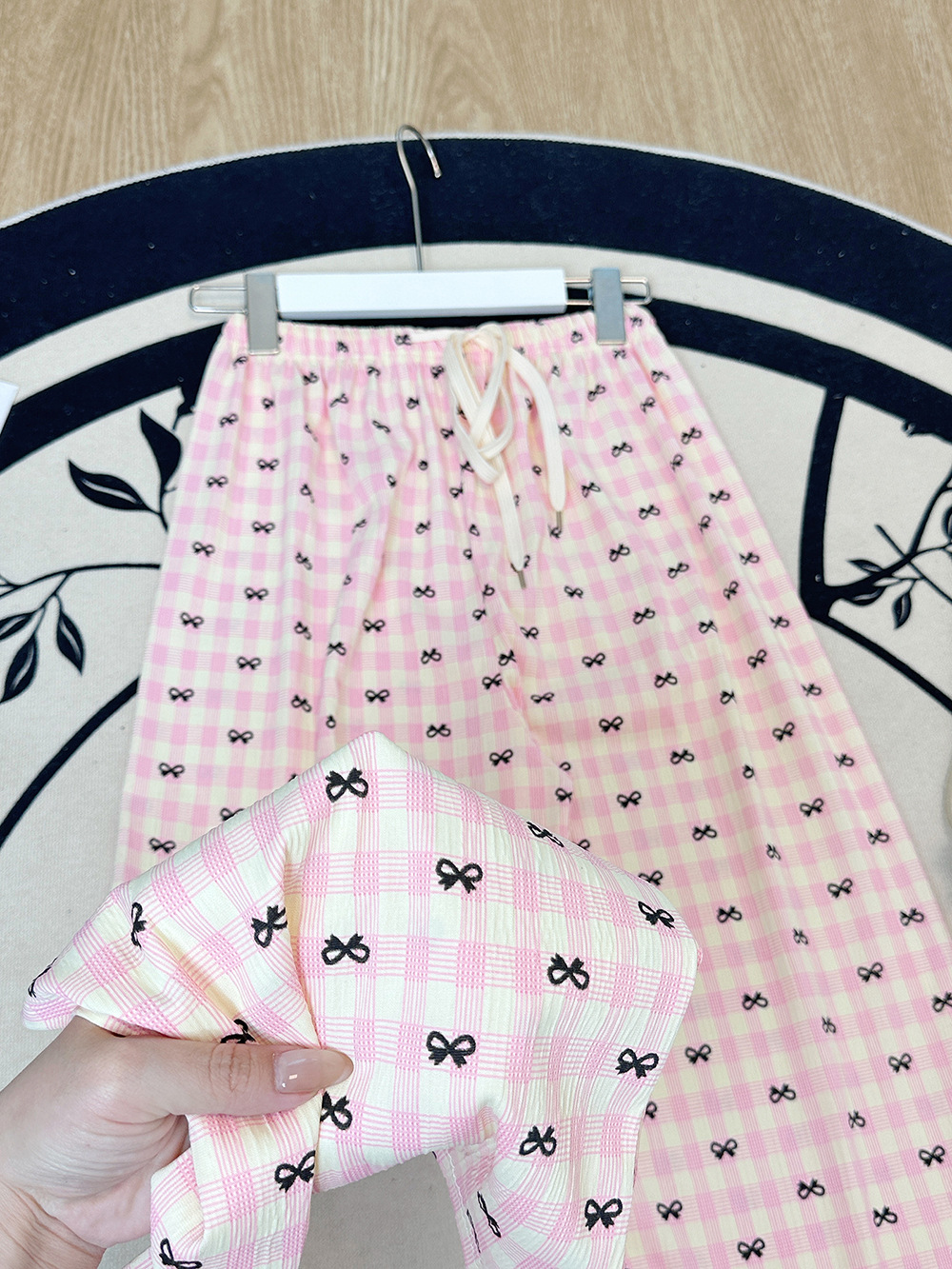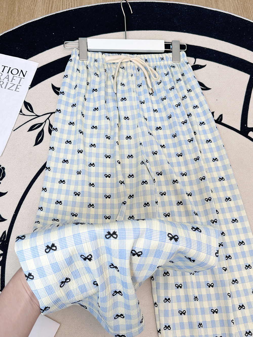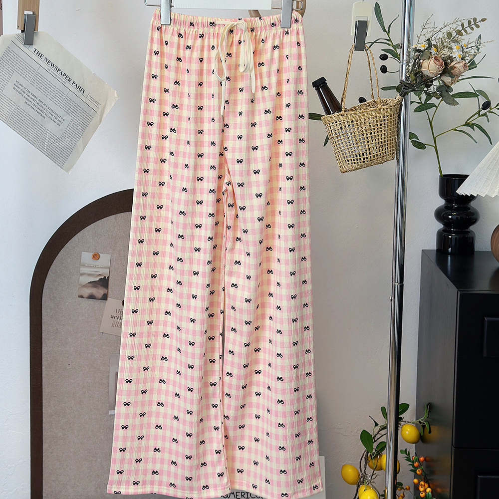 Celana kaki lebar kotak-kotak merah muda wanita kasual ukuran besar musim panas 2024 pinggang tinggi tipis menggantung cinta celana jalan lurus