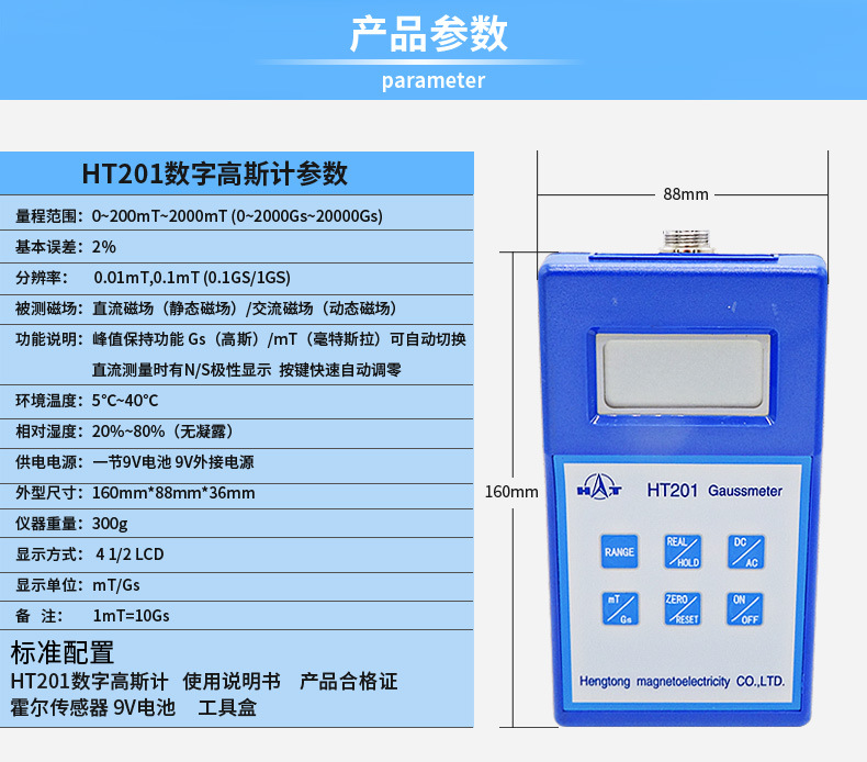 Retail Shanghai Prosperity HT-201 Gaussmeter meteran Tesla genggam