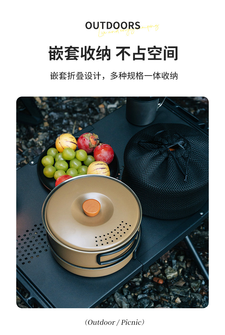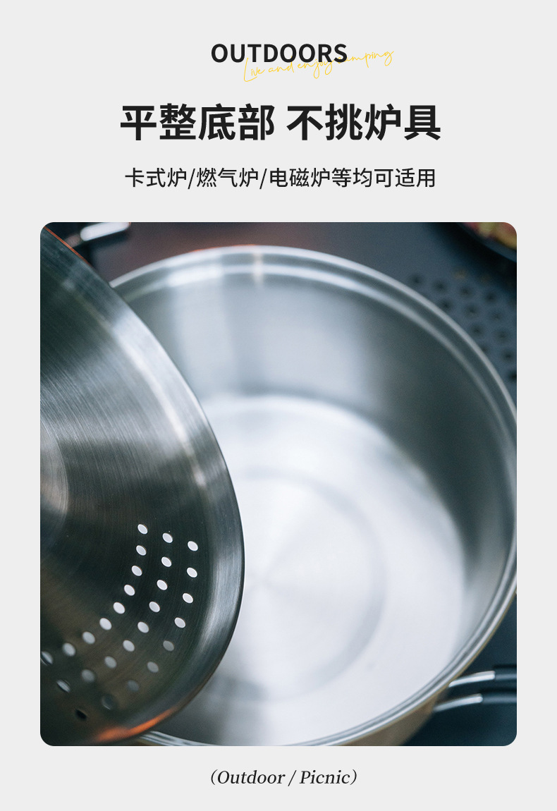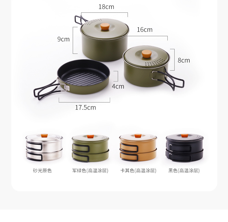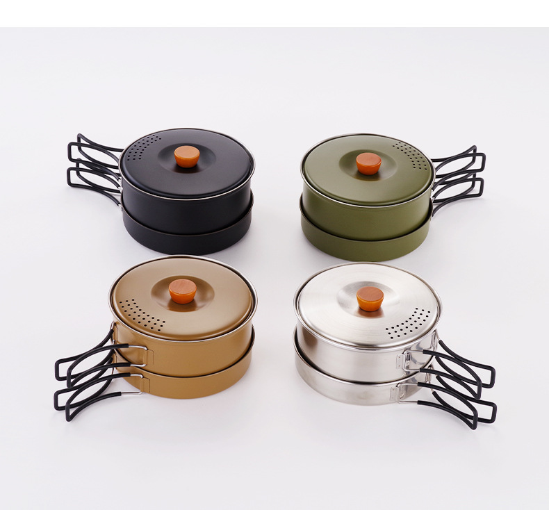 Panci kemah luar ruangan 304, peralatan masak kemah stainless steel 2-3 orang tahan suhu tinggi lipat
