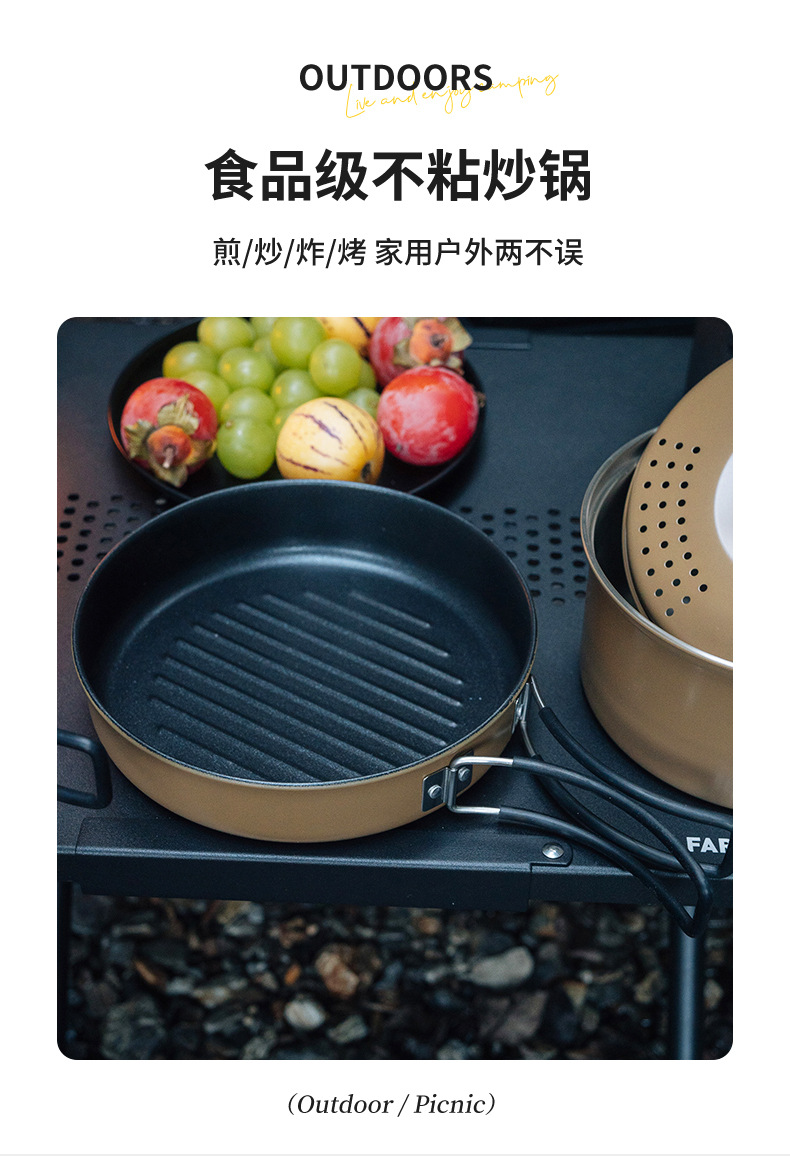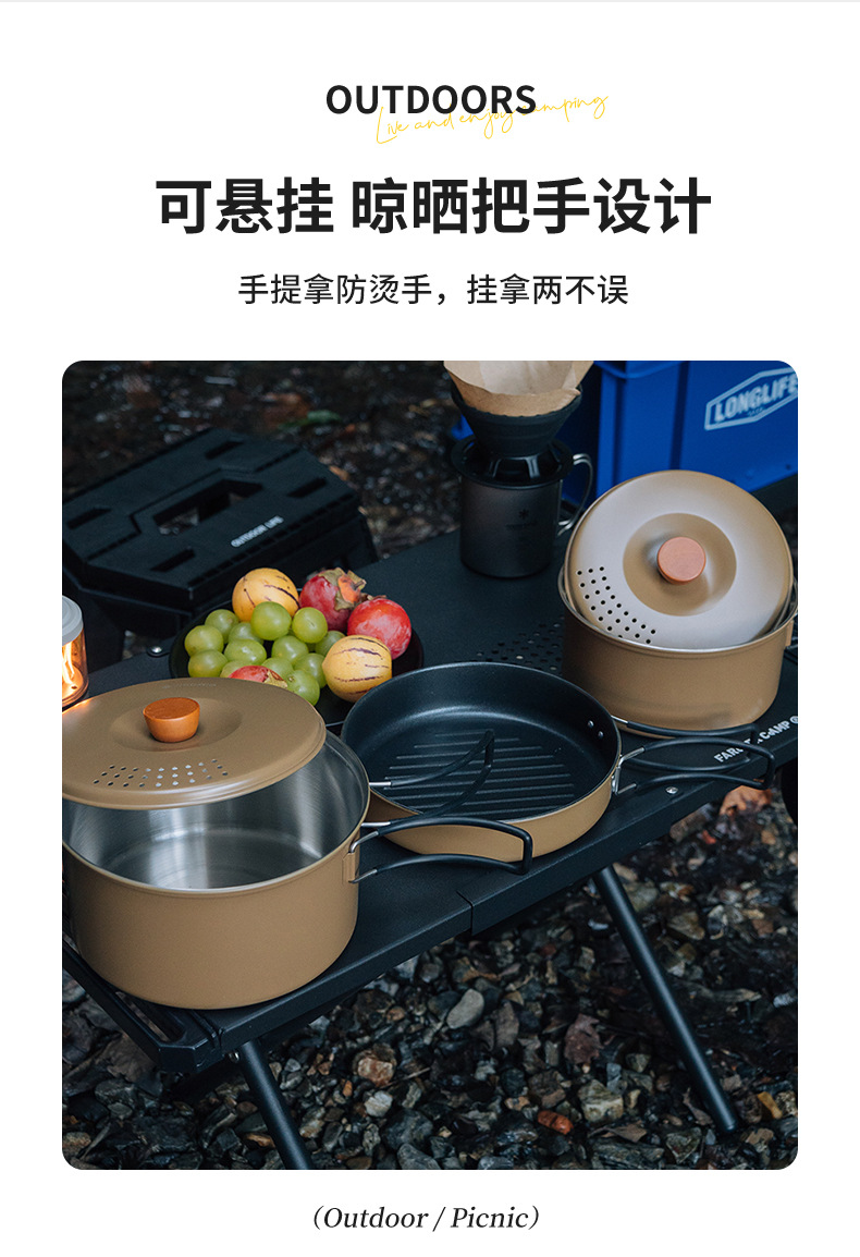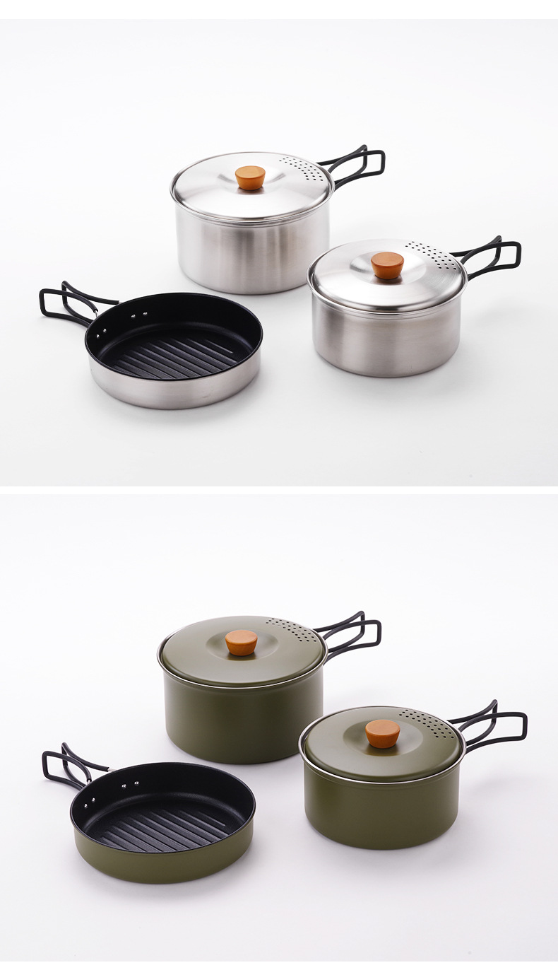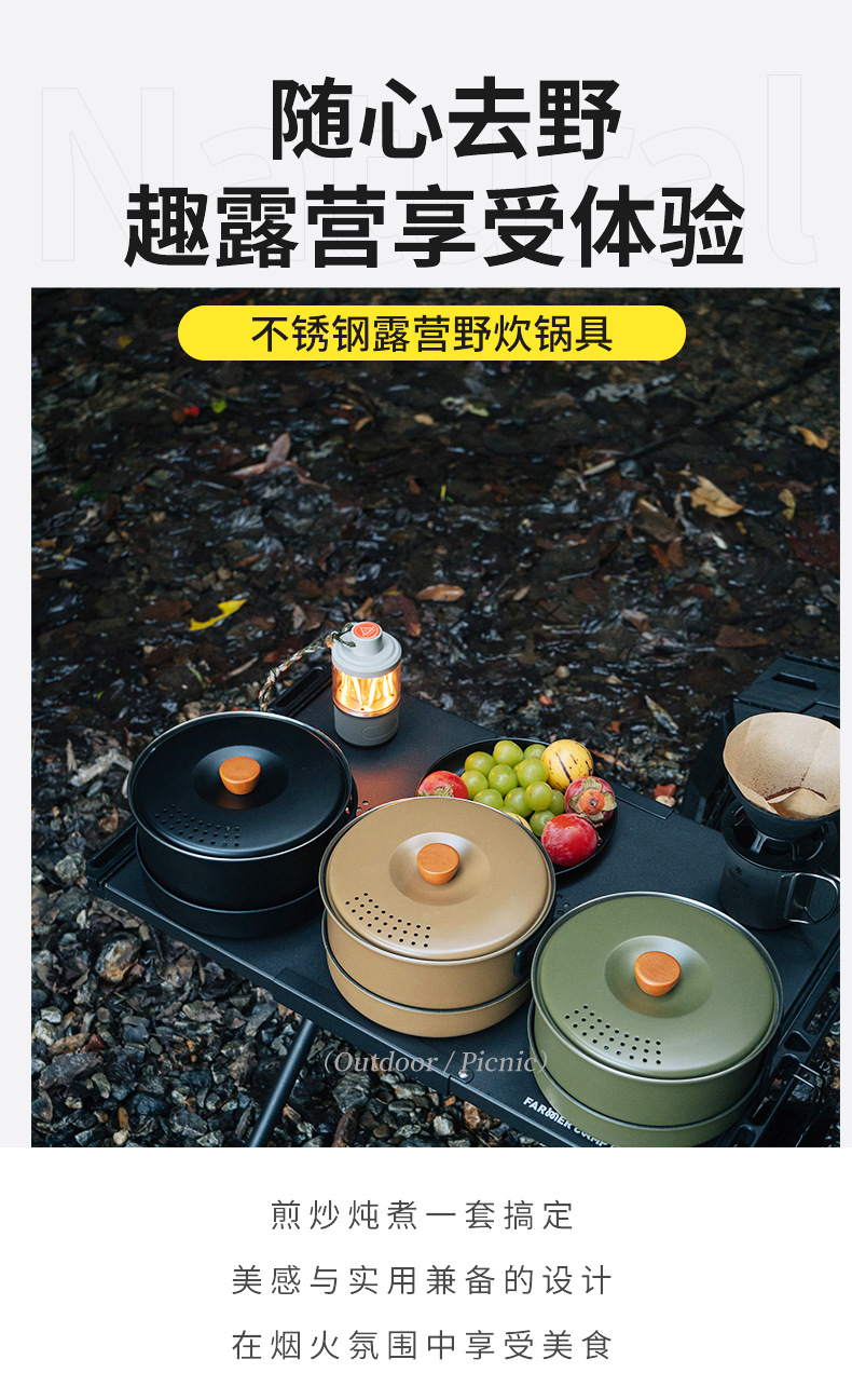 Panci kemah luar ruangan 304, peralatan masak kemah stainless steel 2-3 orang tahan suhu tinggi lipat