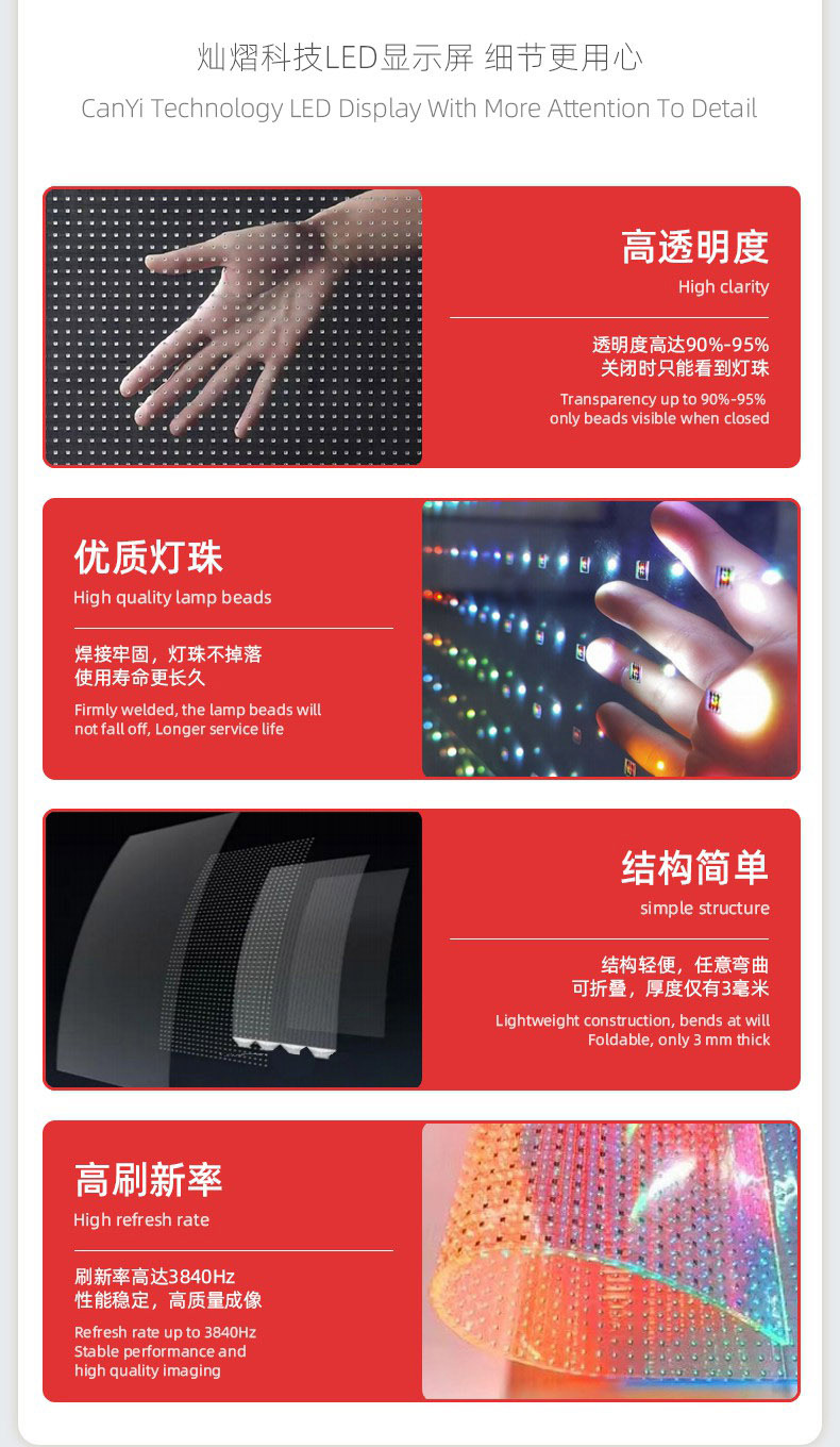 LED Transparan Layar Fleksibel LED Kristal Layar Tampilan Iklan LED Ruang Showroom Penuh Warna Kaca Outdoor Layar Grille